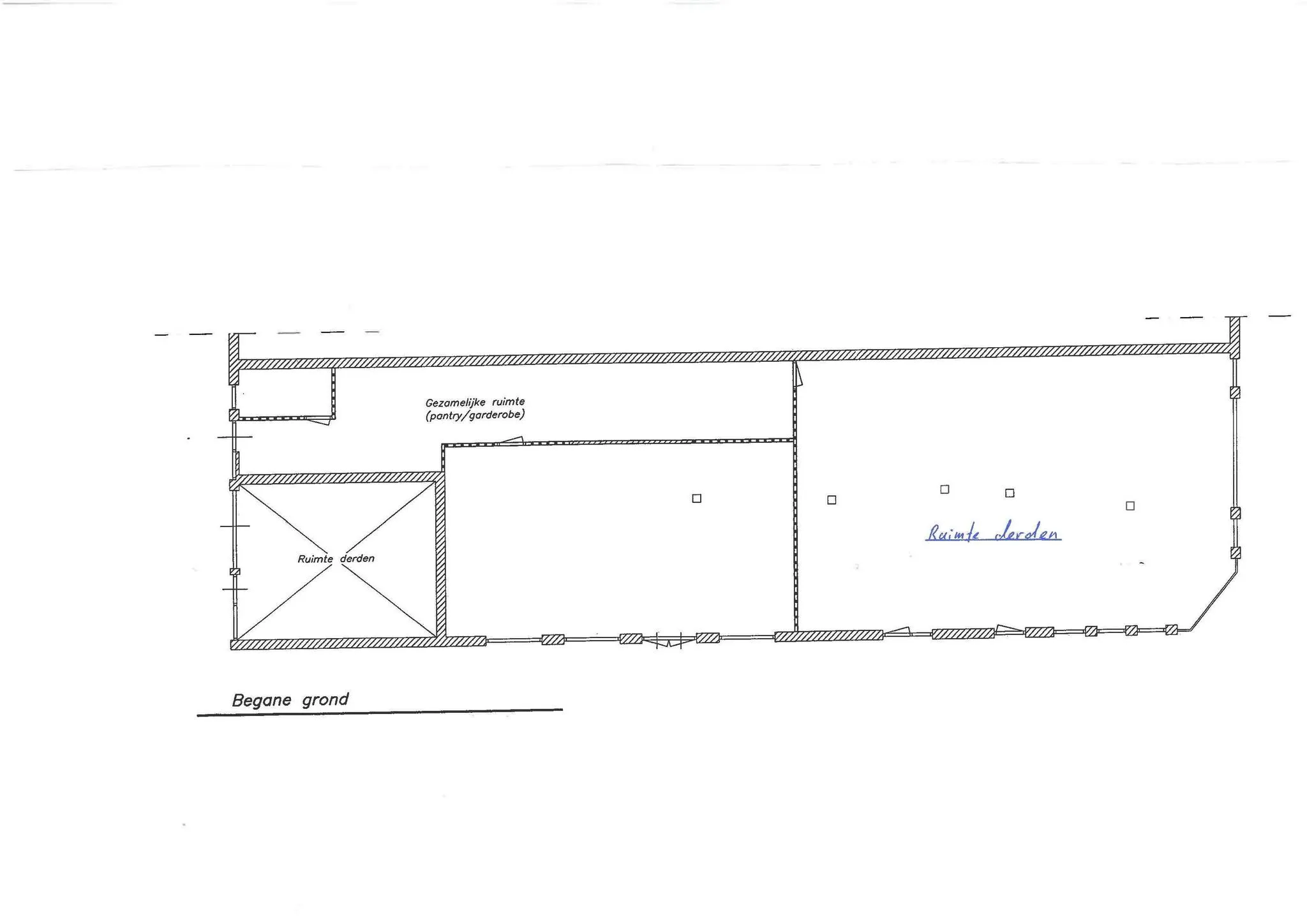 Begane grond: Entree, hal, trapopgang, slaapkamer (1), woonkamer, open woonkeuken voorzien van vaatwasser, combi-oven, inductie-kooktoestel, koelkast en afzuigkap. Vanuit de woonkeuken is de provisiekelder toegankelijk. Achteringang, meterkast, hal met vaste kastruimte en afsluitbare tussendeur/doorloop naar achterhuis, royale bijkeuken met keukenblok, witgoedaansluitingen en een separaat toilet.