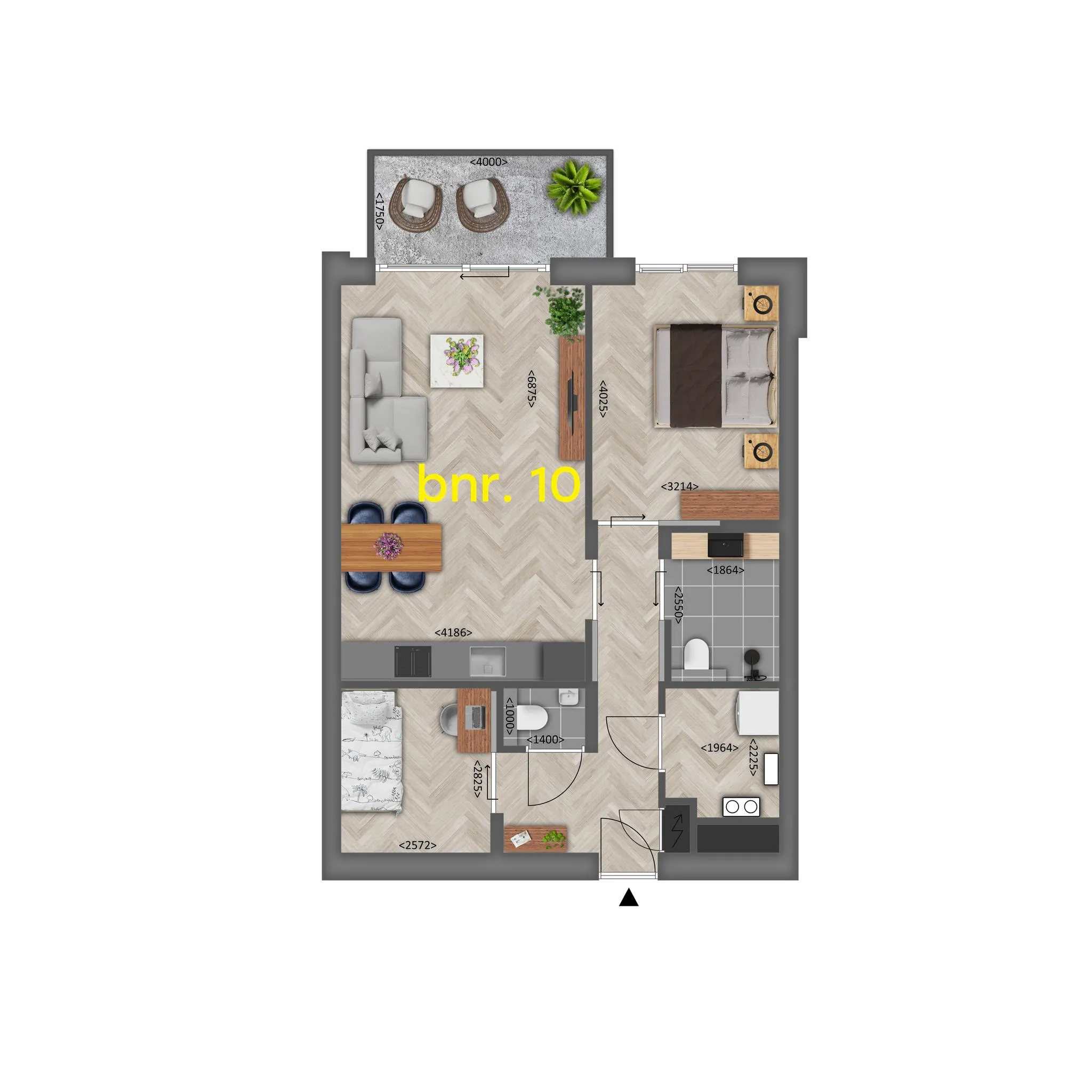 - Aantal kamers 3 kamers (2 slaapkamers)