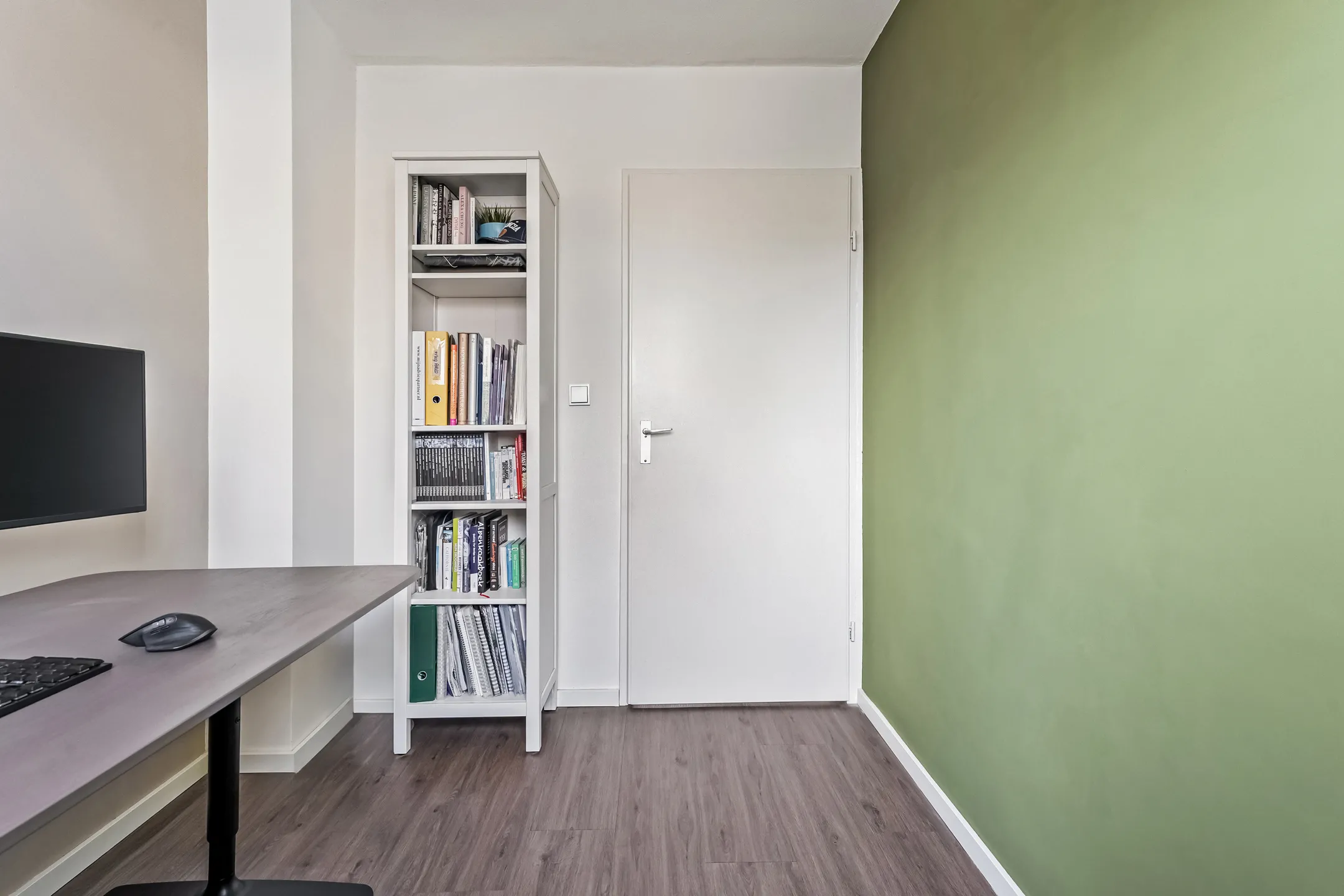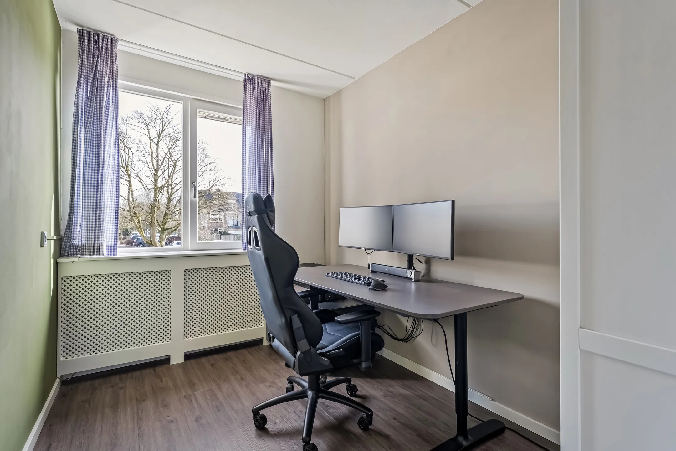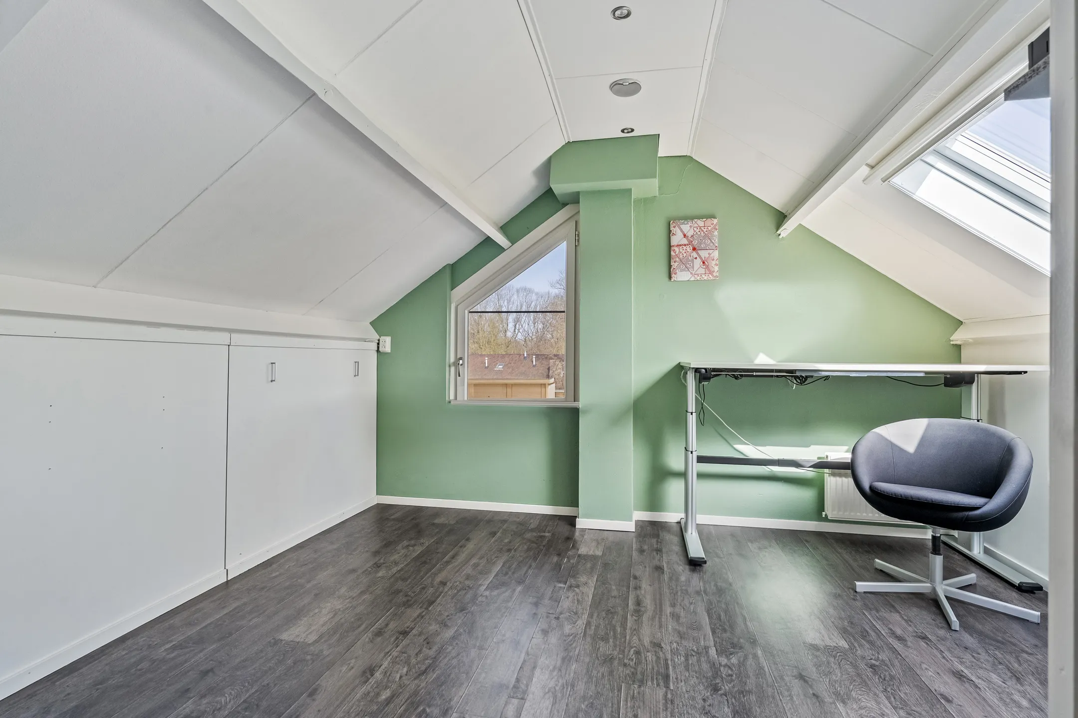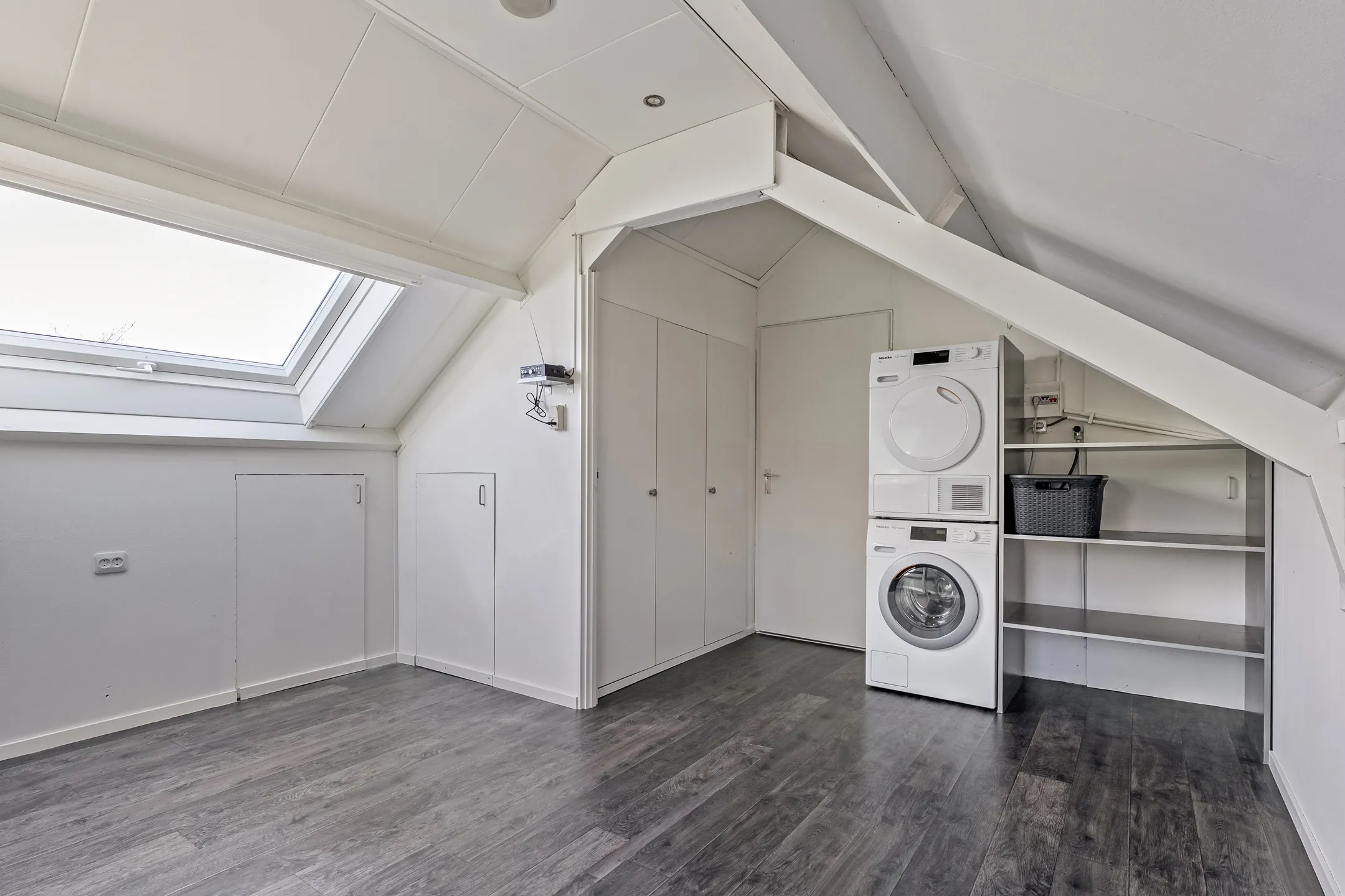 2e verdieping: Overloop, berging/C.V.-ruimte, multifunctionele (slaap)kamer met volop daglicht v.v. knieschotten, tuimelvenster, gevelraam, vaste kastenwand en witgoedaansluitingen.