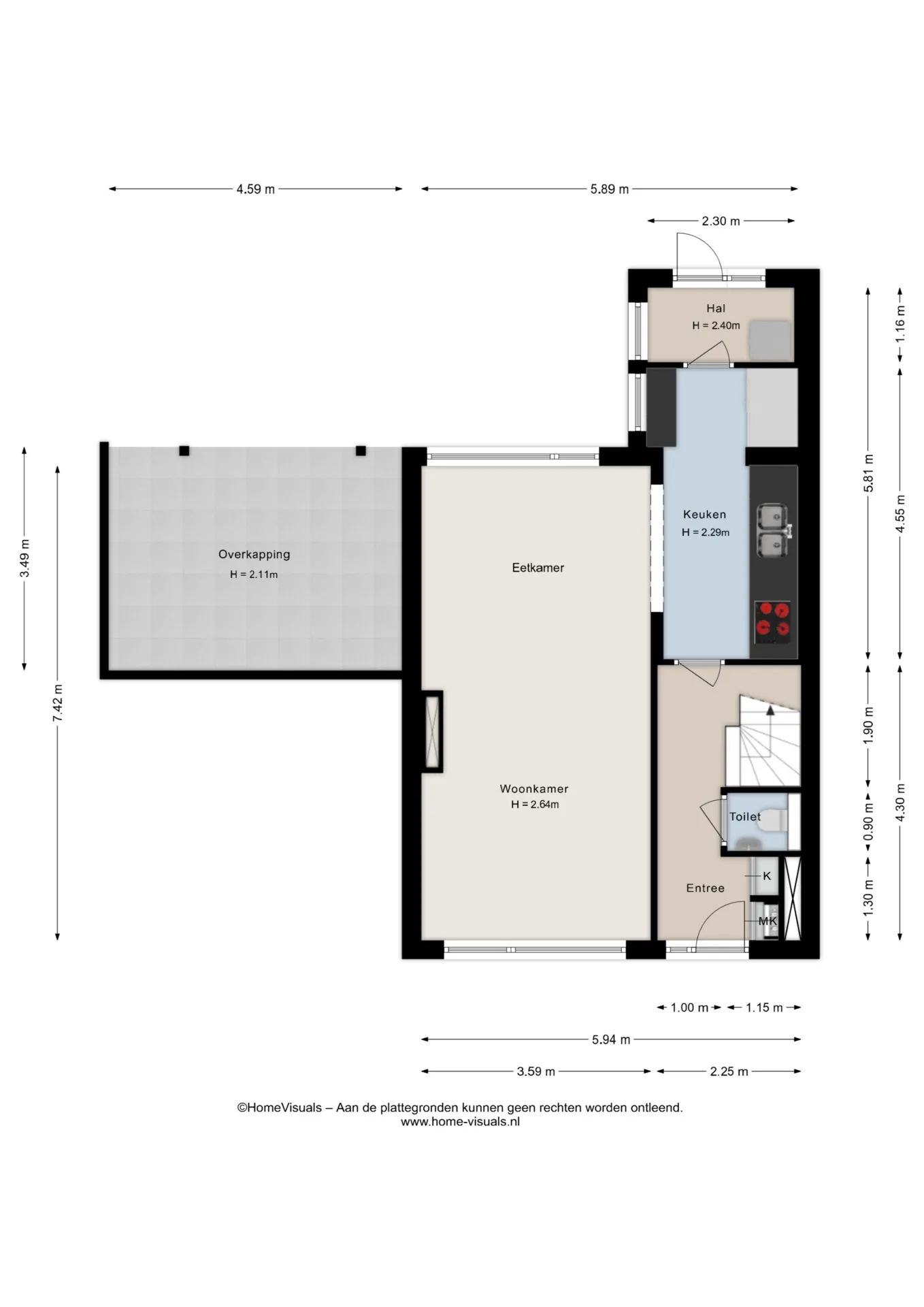 – Strook gemeentegrond in bruikleen aan voorzijde.