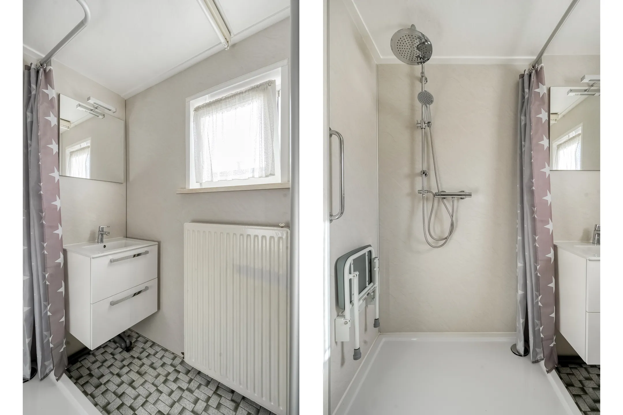 - Badkamervoorzieningen Toilet, douche, wastafel, douche, wastafel