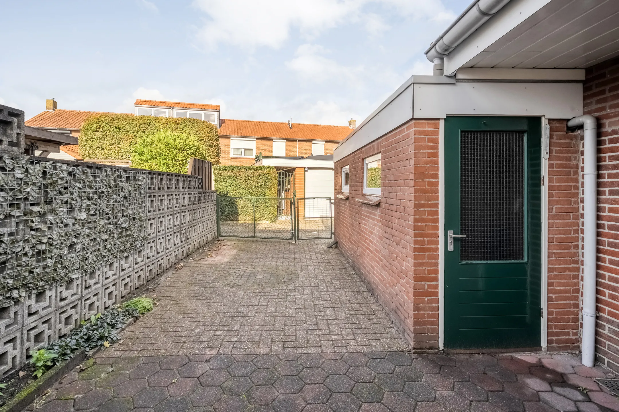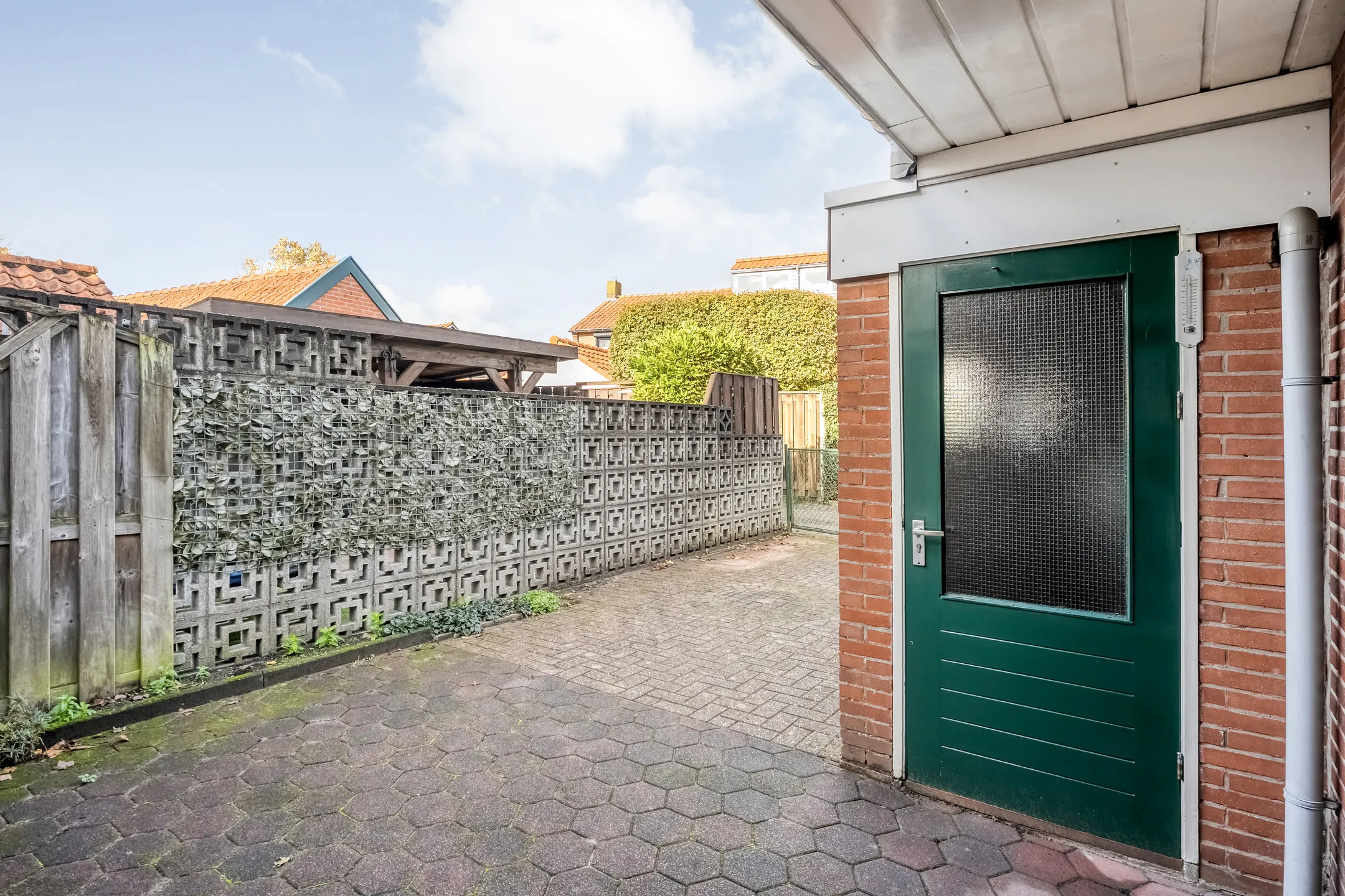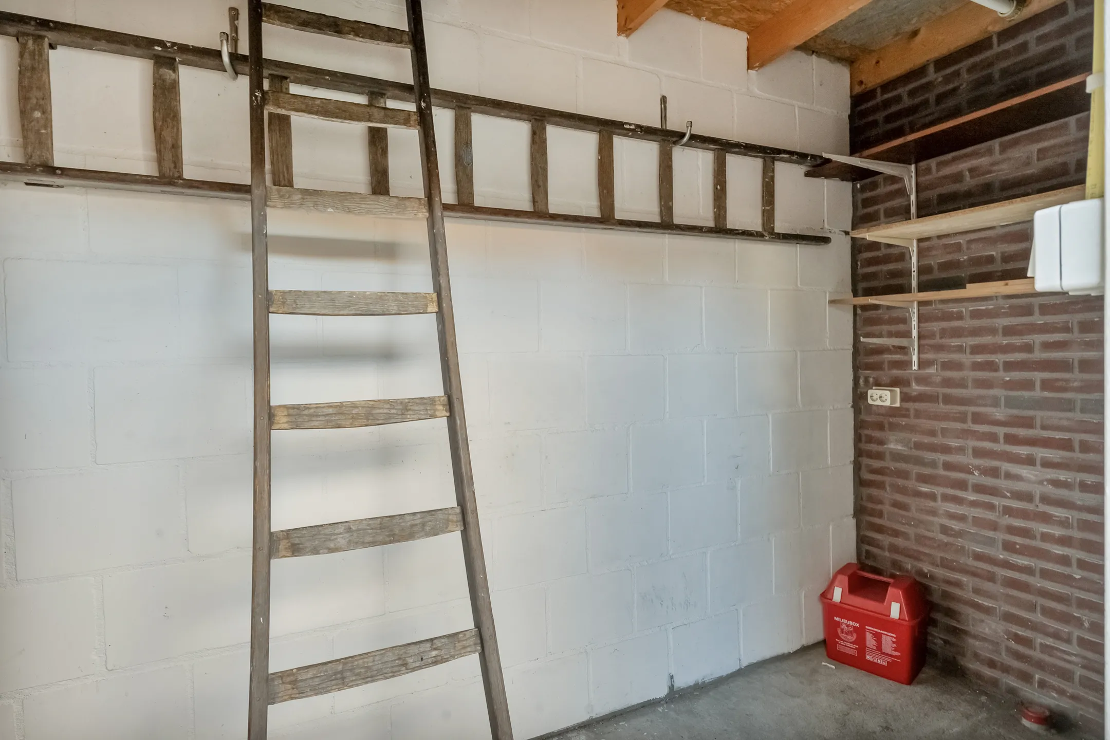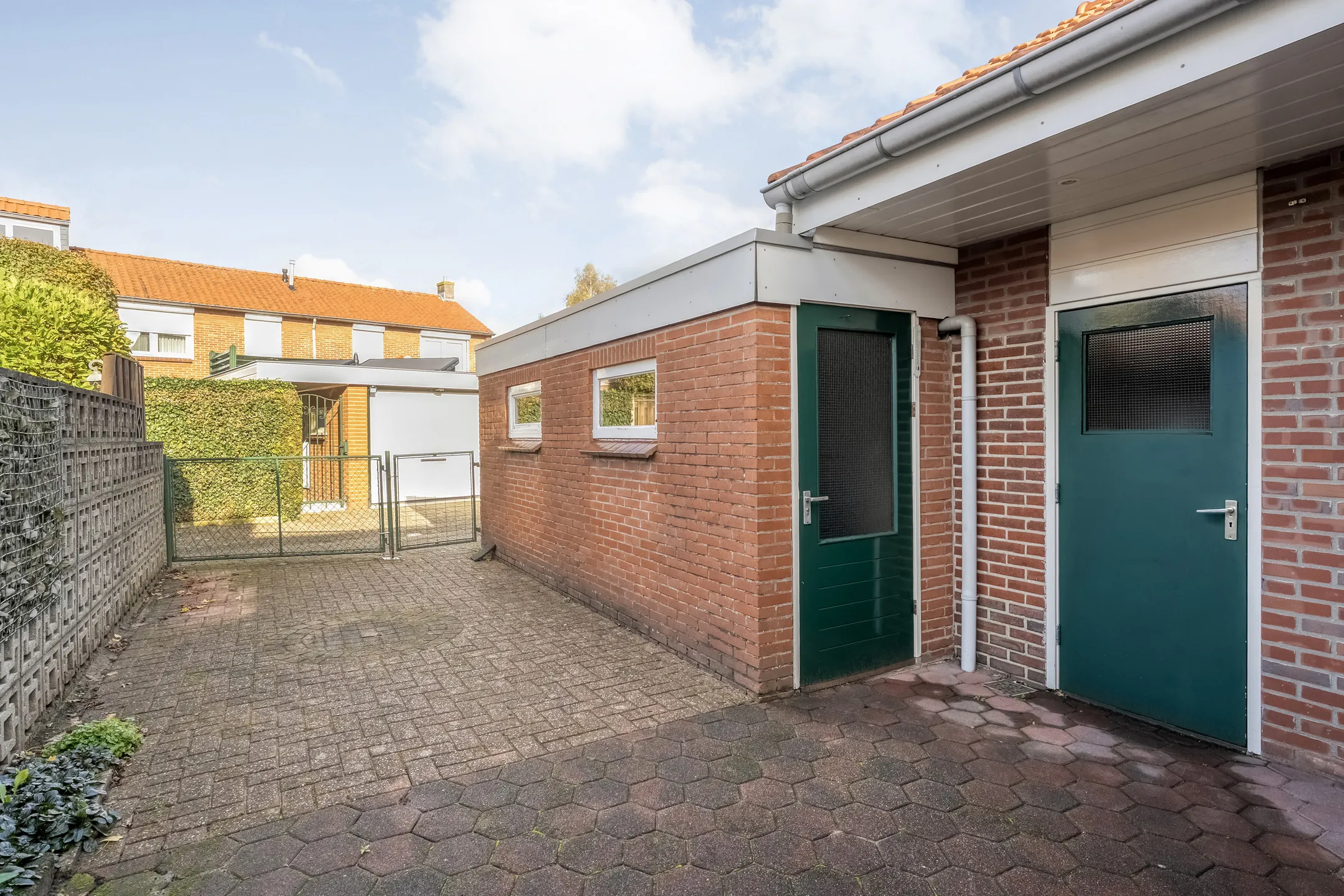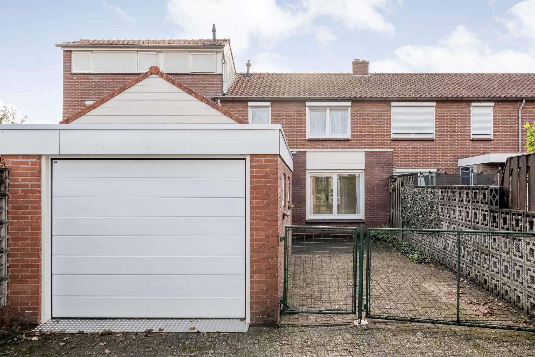 Achter de woning ligt een tuin met een vrijstaande garage, voorzien van een elektrische roldeur. De garage biedt voldoende ruimte voor een auto, fietsen of hobby’s.