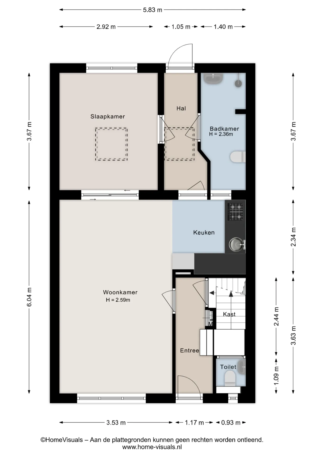 Begane grond: entree/hal met bordestrap, toilet met fontein, trapkast, woonkamer met aansluitend de keuken v.v. inbouwapparatuur, achter portaal met toegang tot de badkamer v.v. inloopdouche, toilet, wastafel en witgoedaansluiting, slaapkamer (1) waardoor de woning geschikt is voor gelijkvloers wonen of om de leefruimte te vergroten.