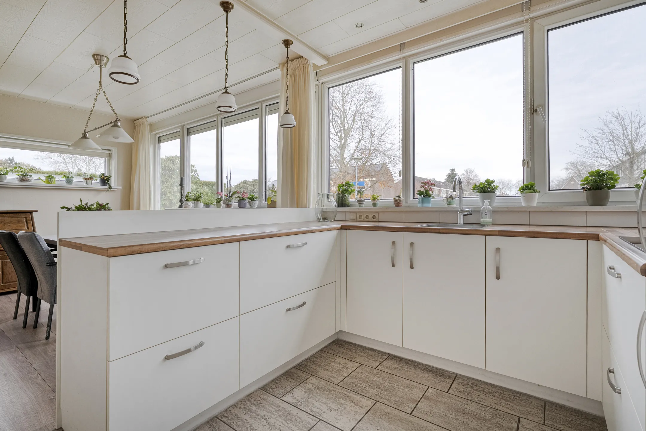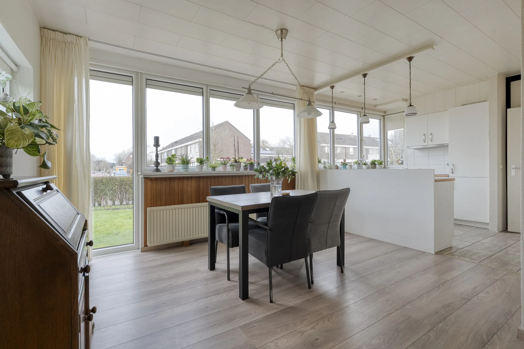 De open keuken is uitgerust met inbouwapparatuur en vormt samen met de woonkamer een fijne leefruimte. Dankzij de aangrenzende tuinkamer geniet je het hele jaar door van het groen in je tuin โ of je nu de schuifdeur openzet op een zonnige dag of juist behaaglijk binnen zit tijdens de winter. De drie slaapkamers bieden volop ruimte voor gezinsleden, logees of een hobbykamer. Dankzij de levensloopbestendige indeling kun je hier jarenlang zorgeloos blijven wonen zonder traplopen.