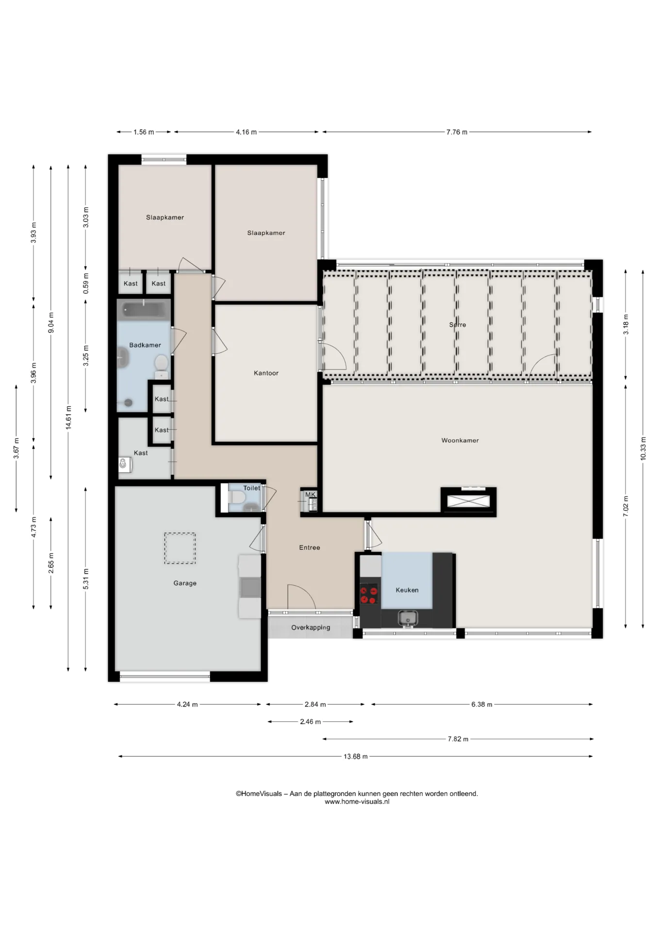 De inpandige garage is een fijne extra: ideaal voor de auto, fietsen of als bergruimte. Bovendien stap je altijd droog en comfortabel binnen.