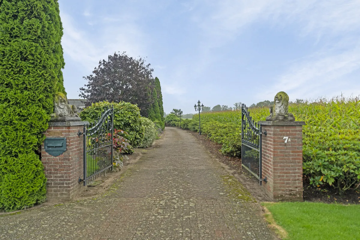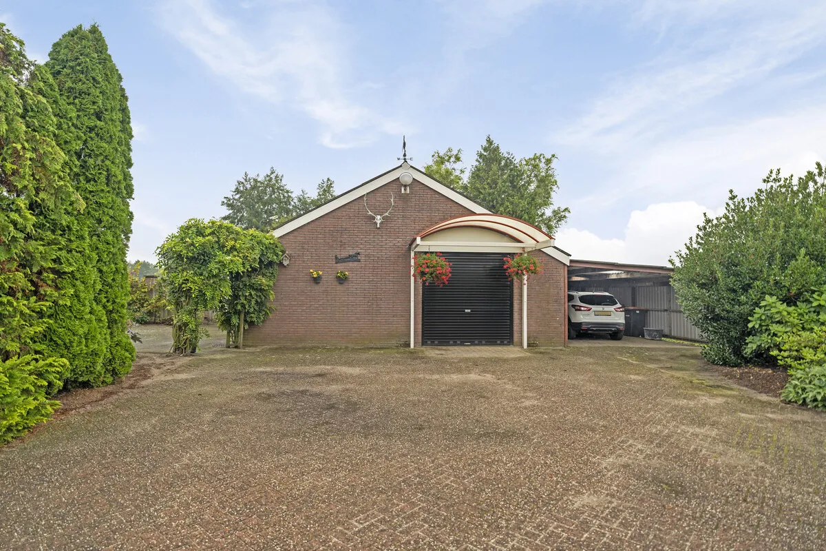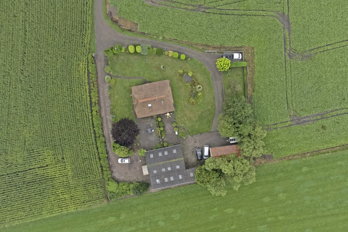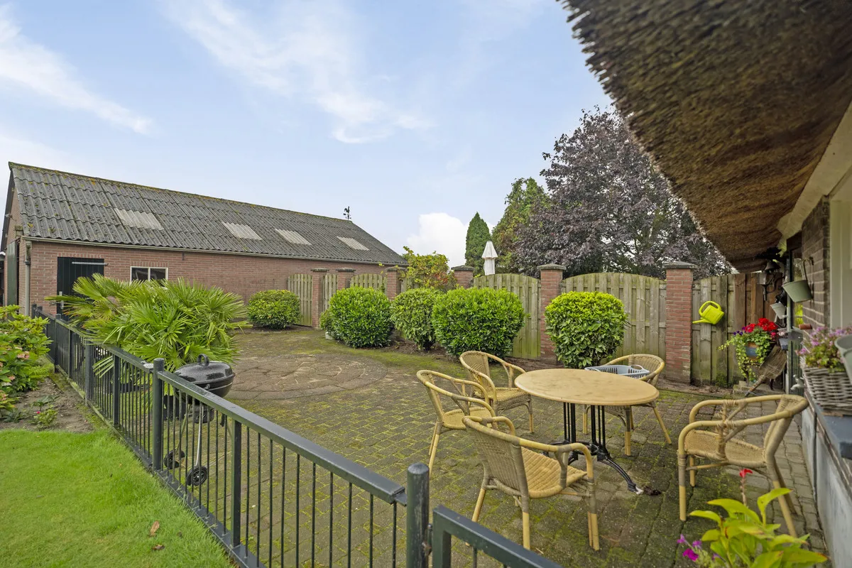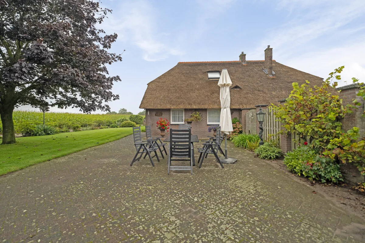 Vrijstaand sfeervolle rietgedekte woonboerderij, voor dubbele bewoning, beide delen met eigen opgang, dubbele royale stenen hobby schuur-, garage-berging, houten kapschuur met hierin 2 paardenstallen met uitloop, opslag fourage, overkapping en ruime parkeergelegenheid. Het geheel is omgeven door mooi aangelegde tuinen en terrassen. Een ideale mogelijkheid voor het houden van paarden of hobby-vee aan huis!