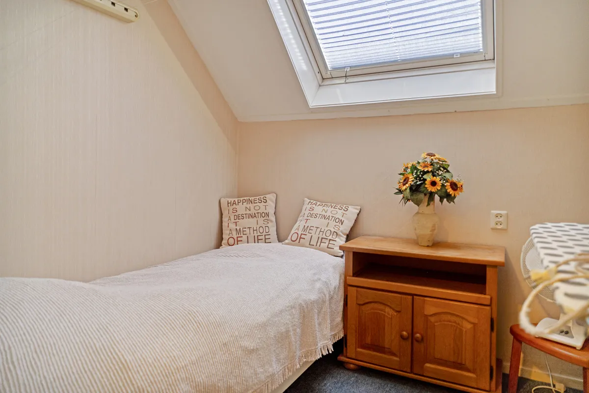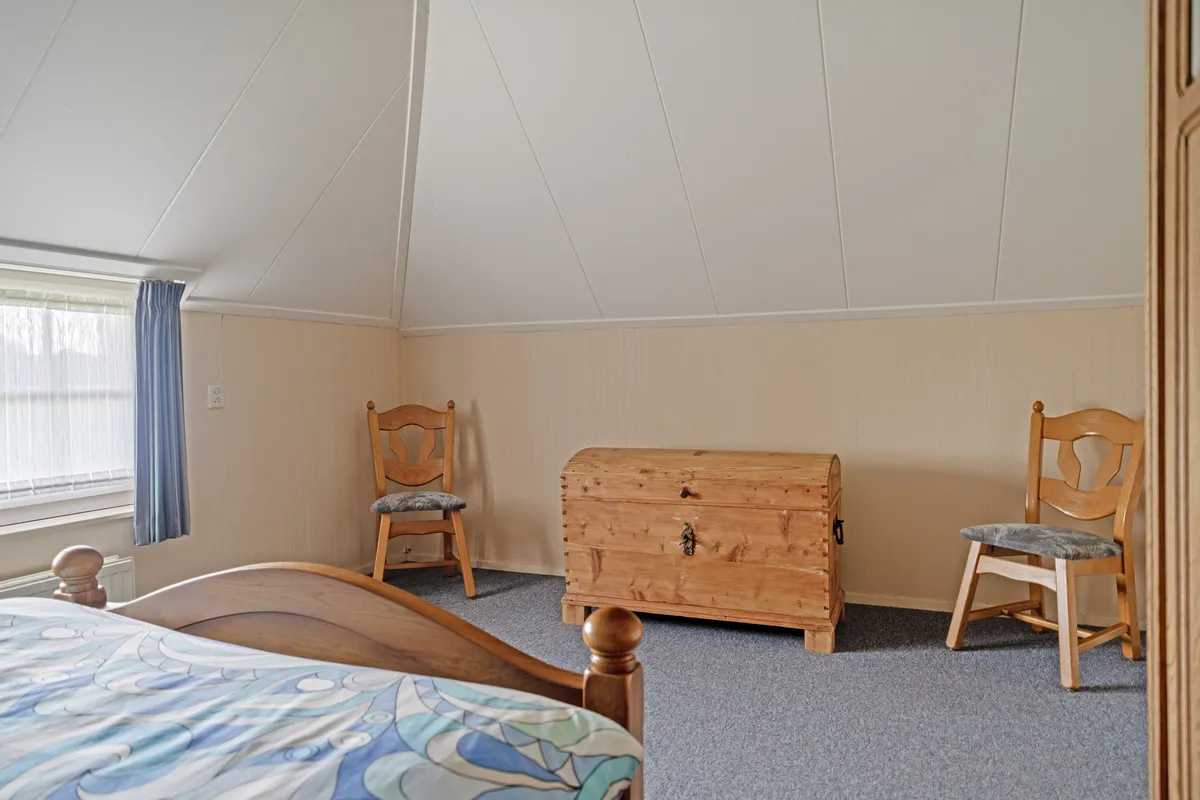 Eerste verdieping: overloop, bergruimte, ruime slaapkamer.