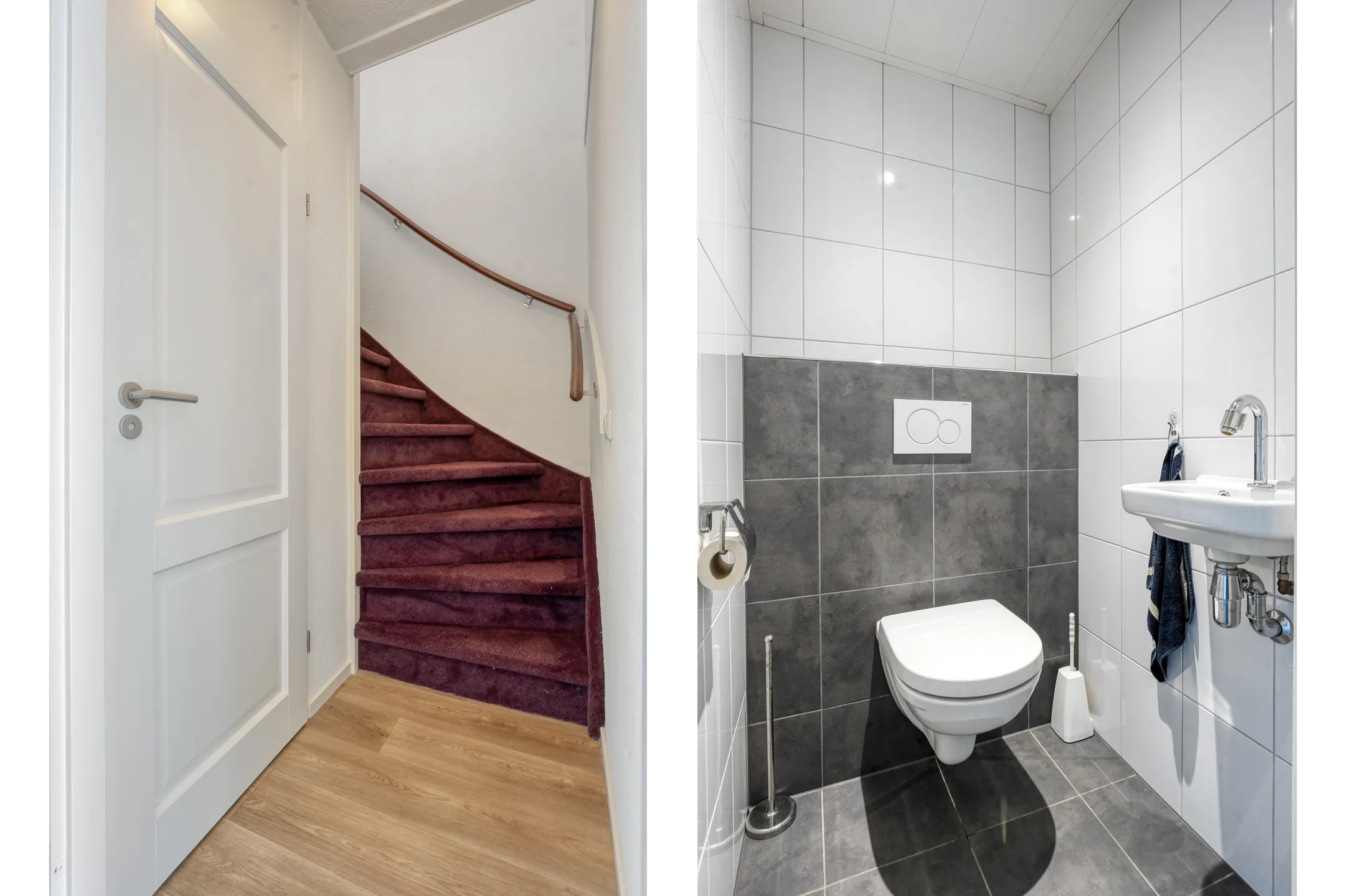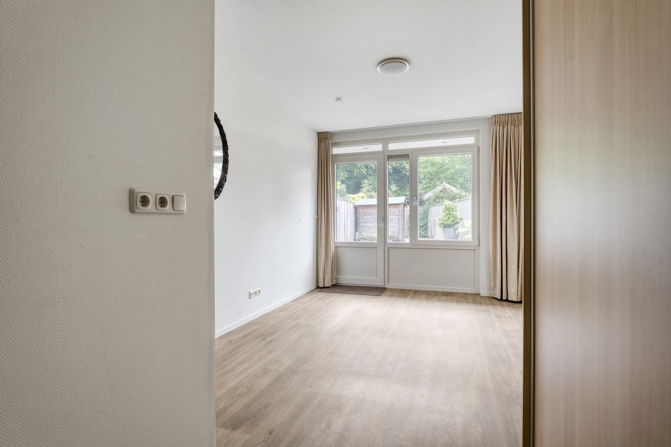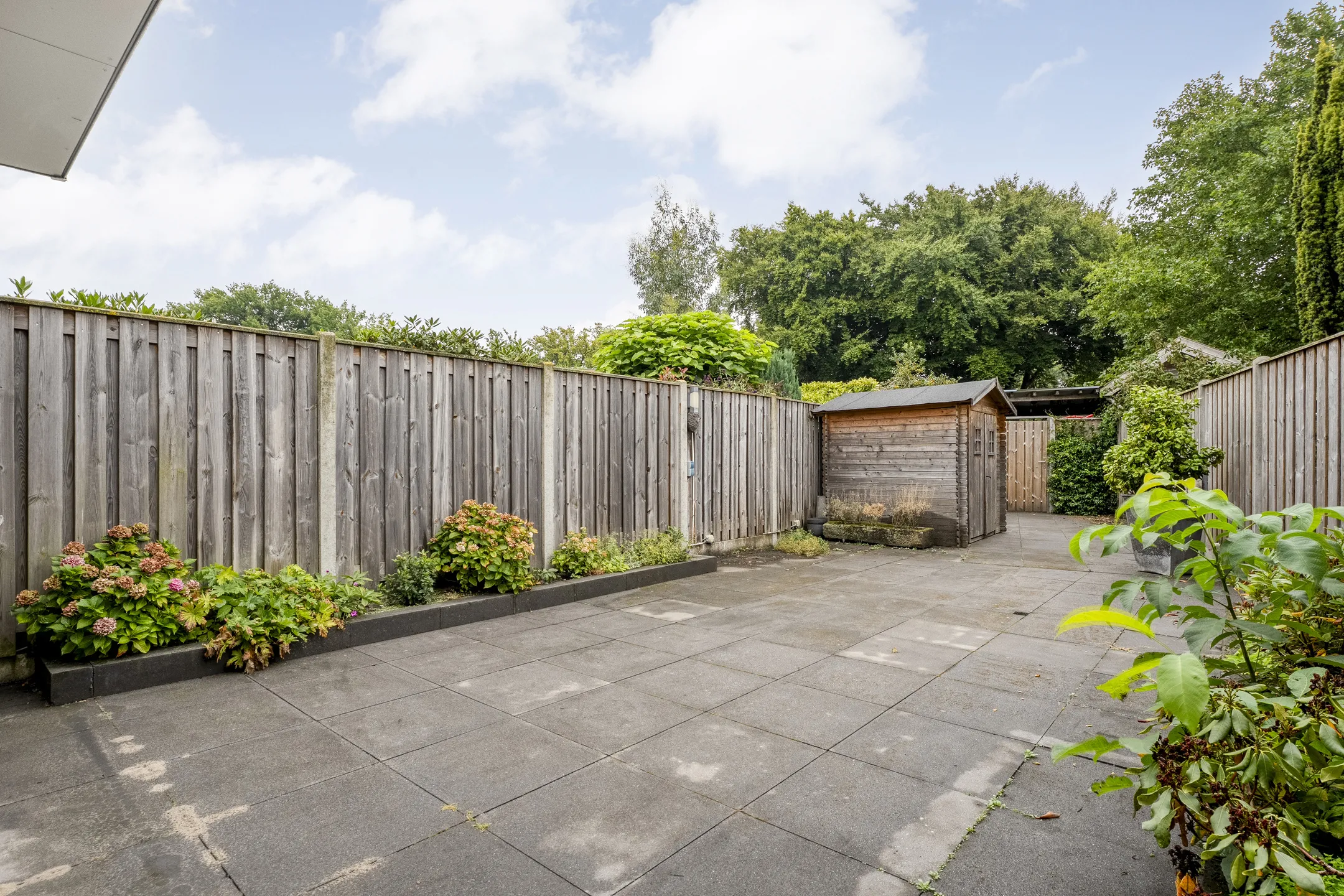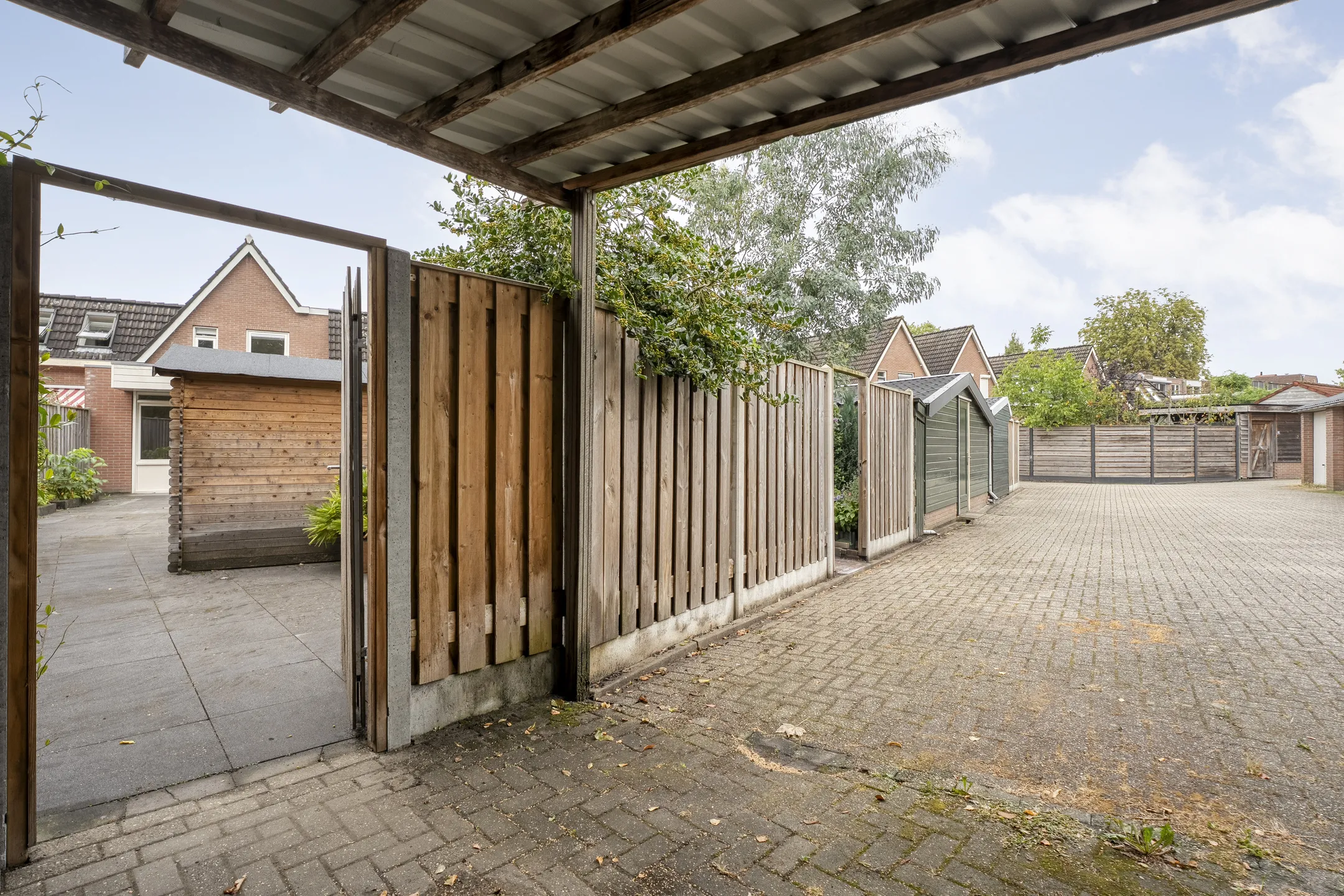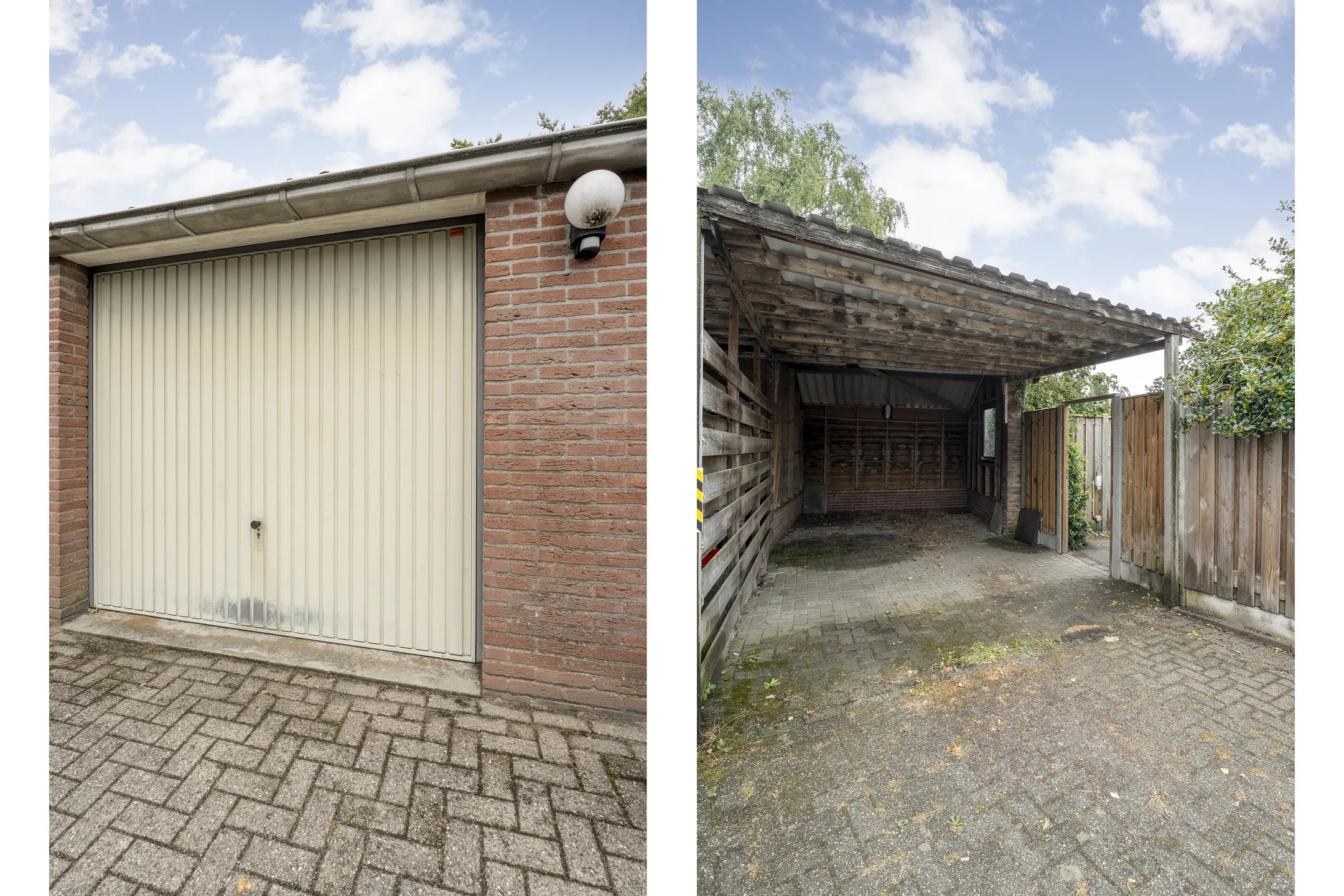 Aan de achterzijde van de woning beschikt u over zowel een eigen garagebox als een carport, waardoor parkeren altijd comfortabel en dichtbij is geregeld.
