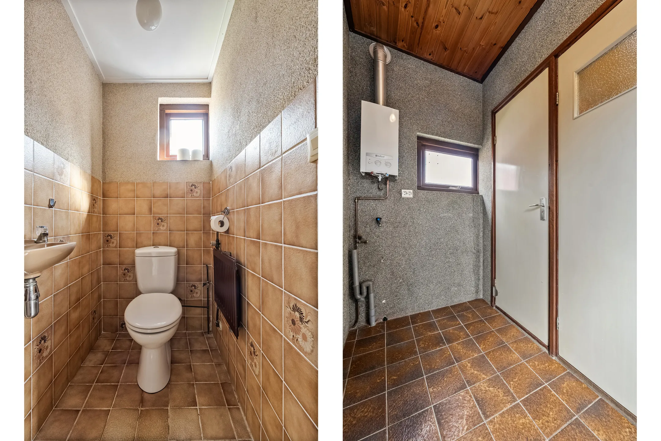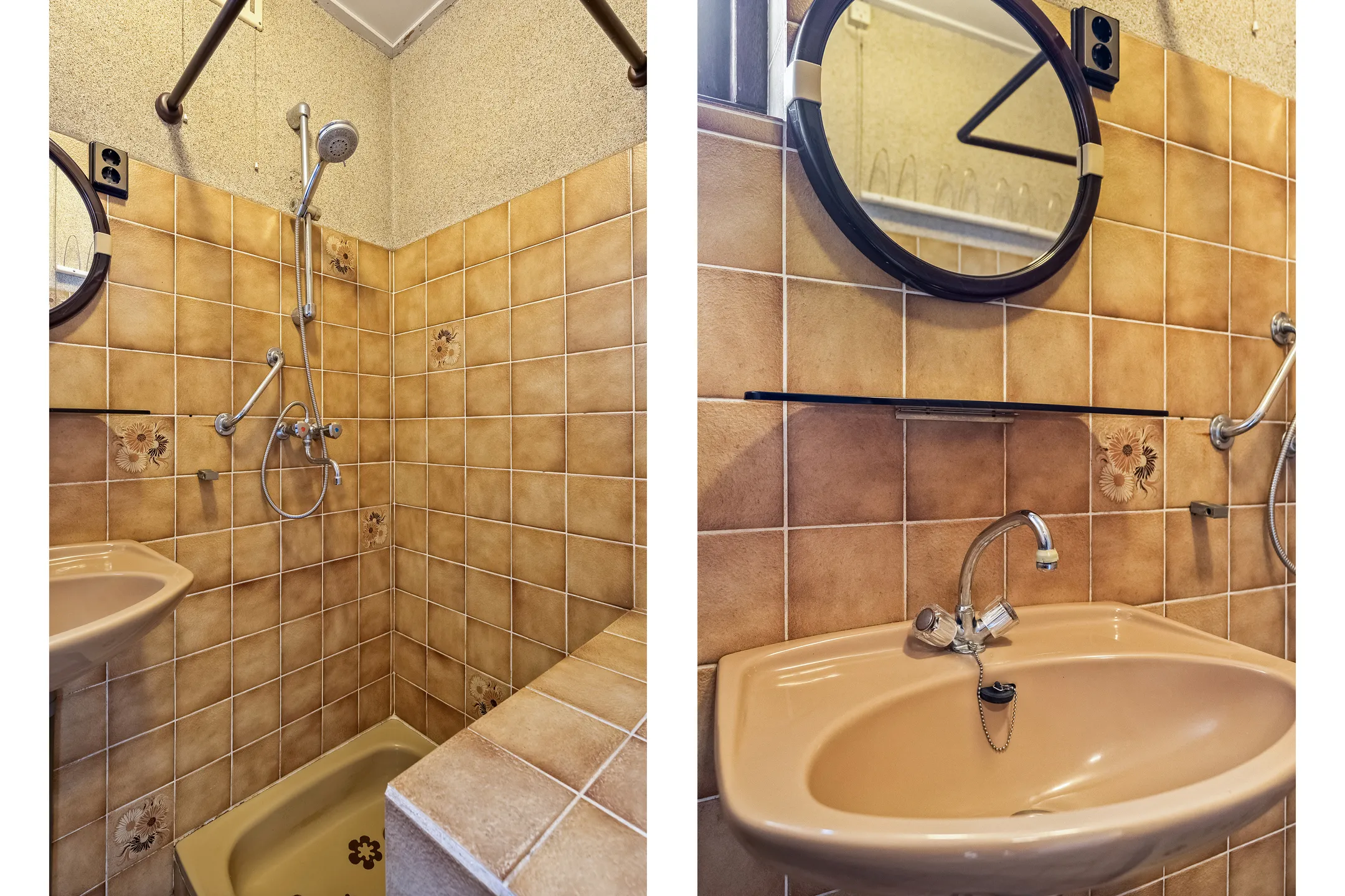 - Badkamervoorzieningen Douche, wastafel, toilet, douche, wastafel