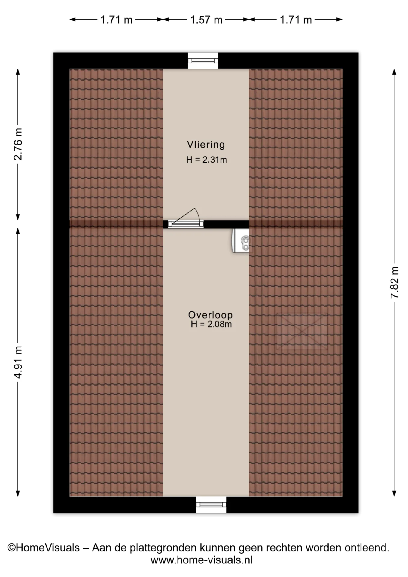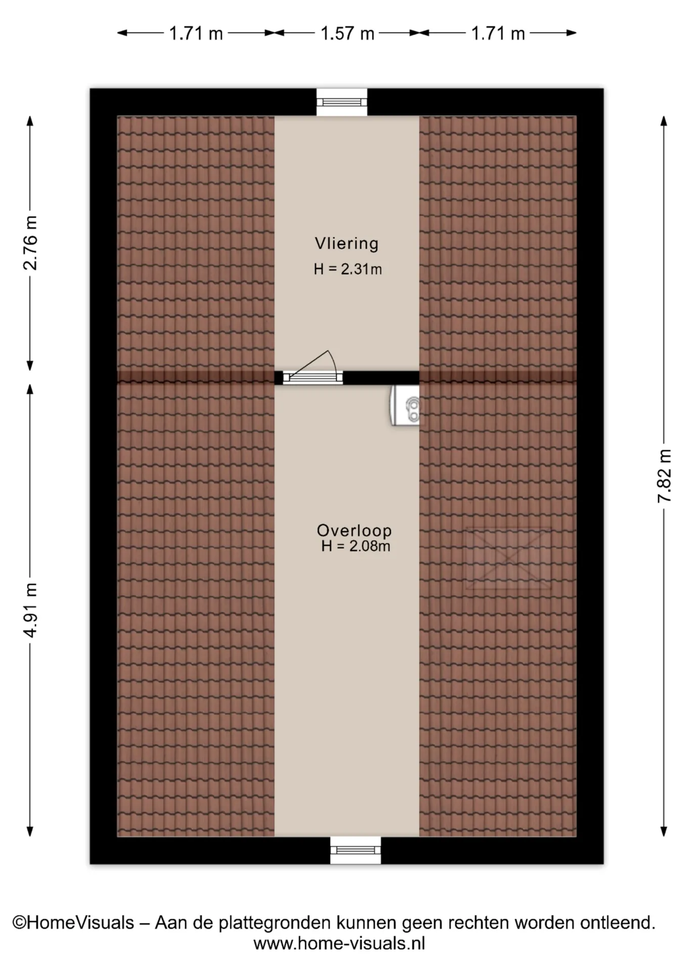 2e verdieping: Door middel van een vlizotrap te bereiken bergzolder met C.V.-opstelling.