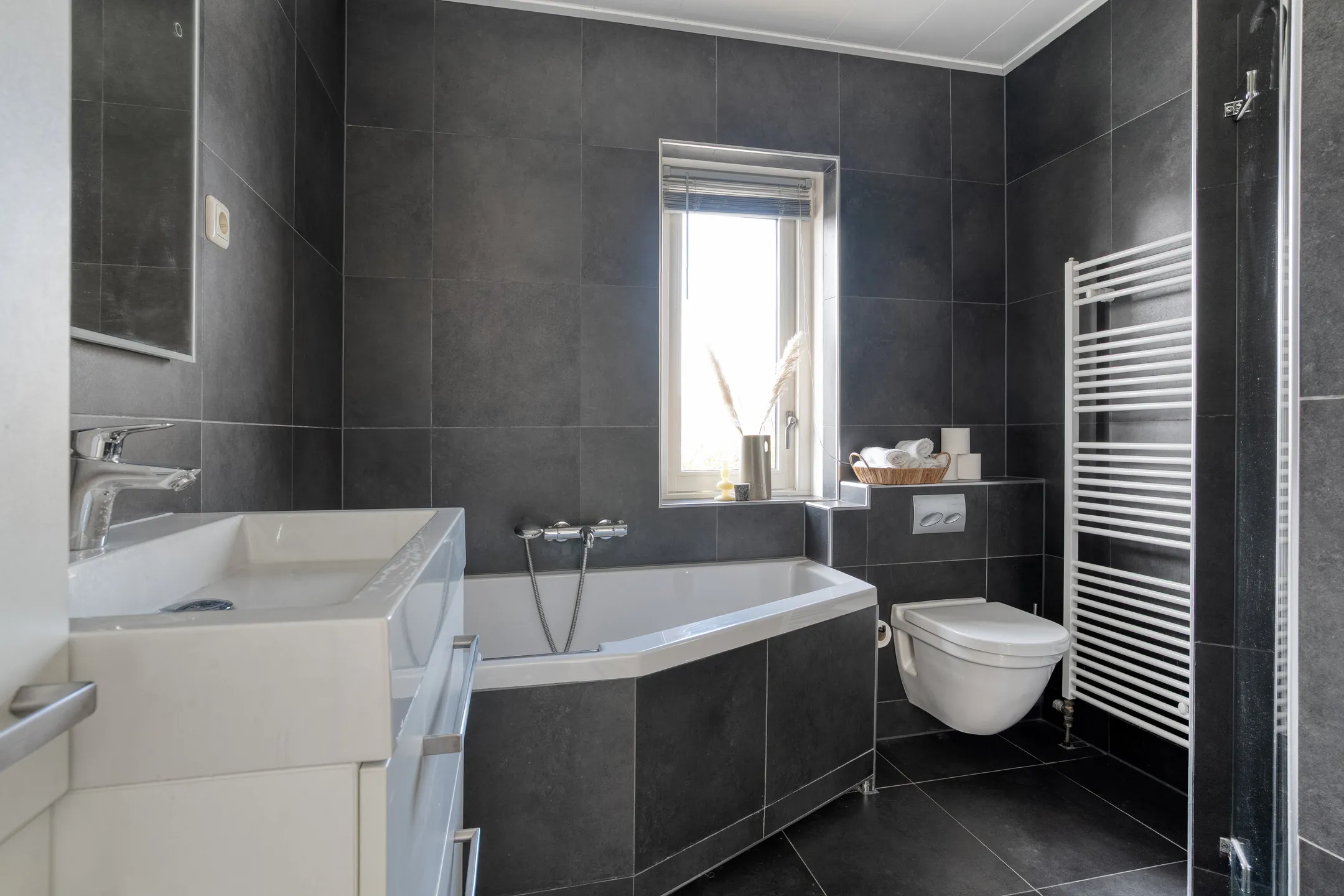 - Badkamervoorzieningen Ligbad, toilet, wastafelmeubel, inloopdouche