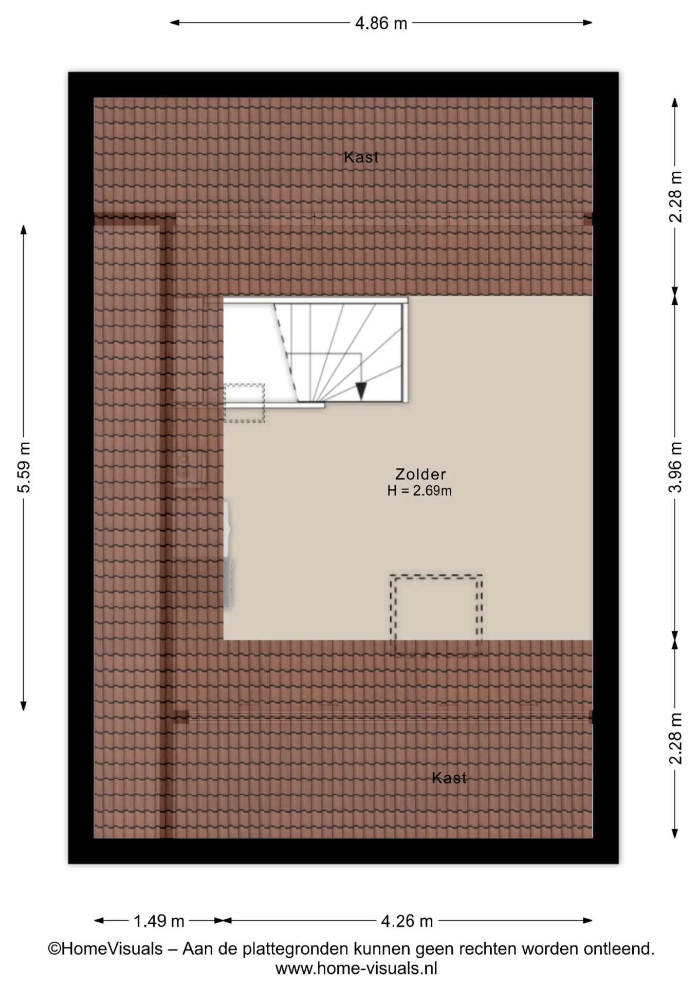 2e verdieping: Multifunctionele zolderruimte met tuimelvenster en techniekopstelling. Goede mogelijkheid voor realiseren extra slaapkamer(s).