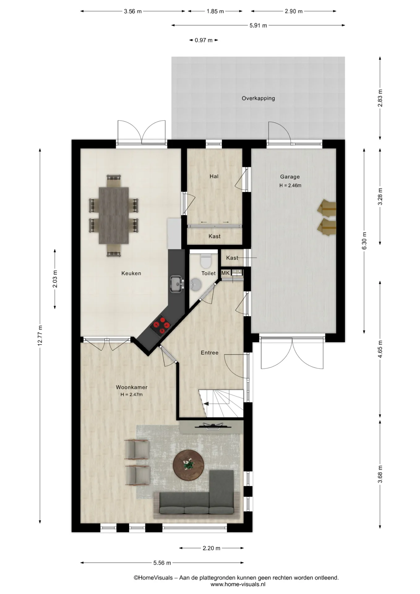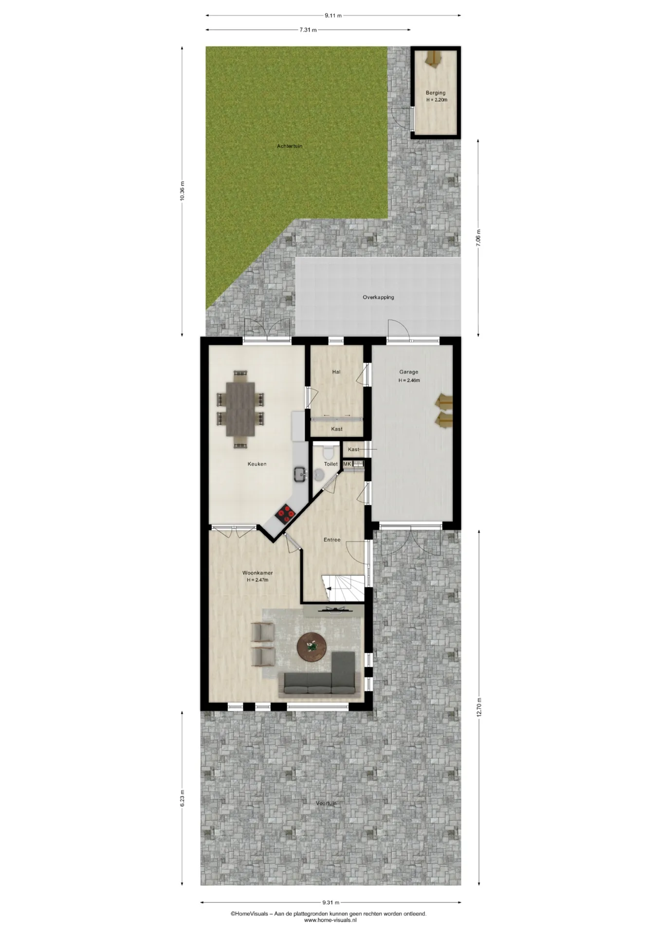 – Aangebouwde garage met kap, carport en terrasoverkapping;