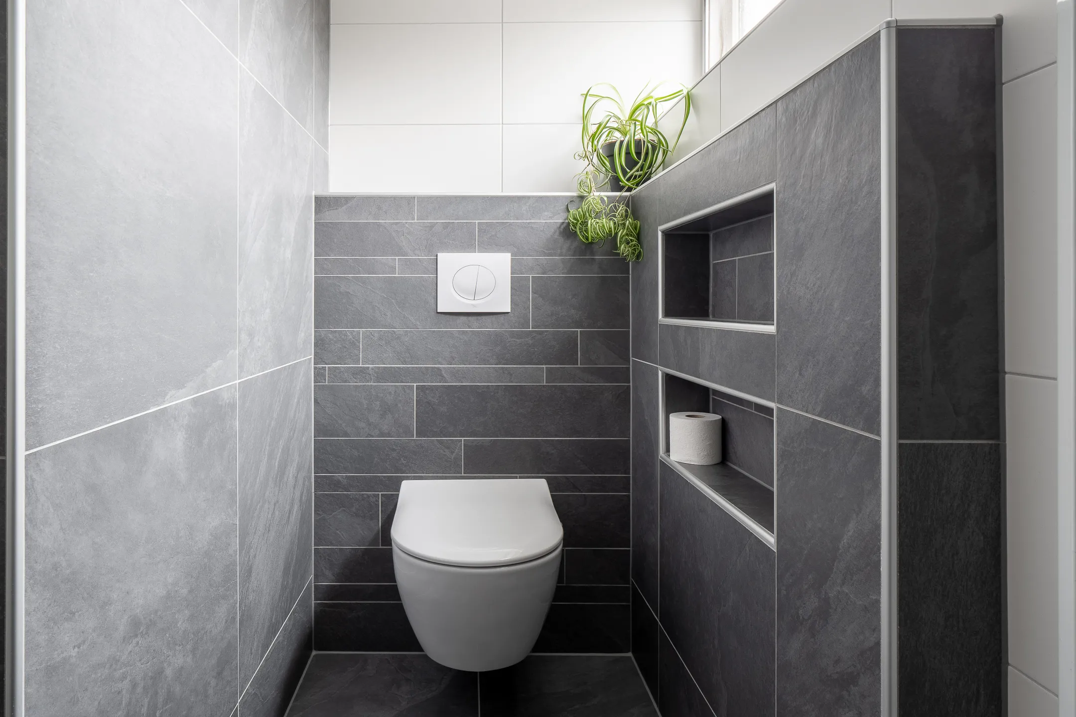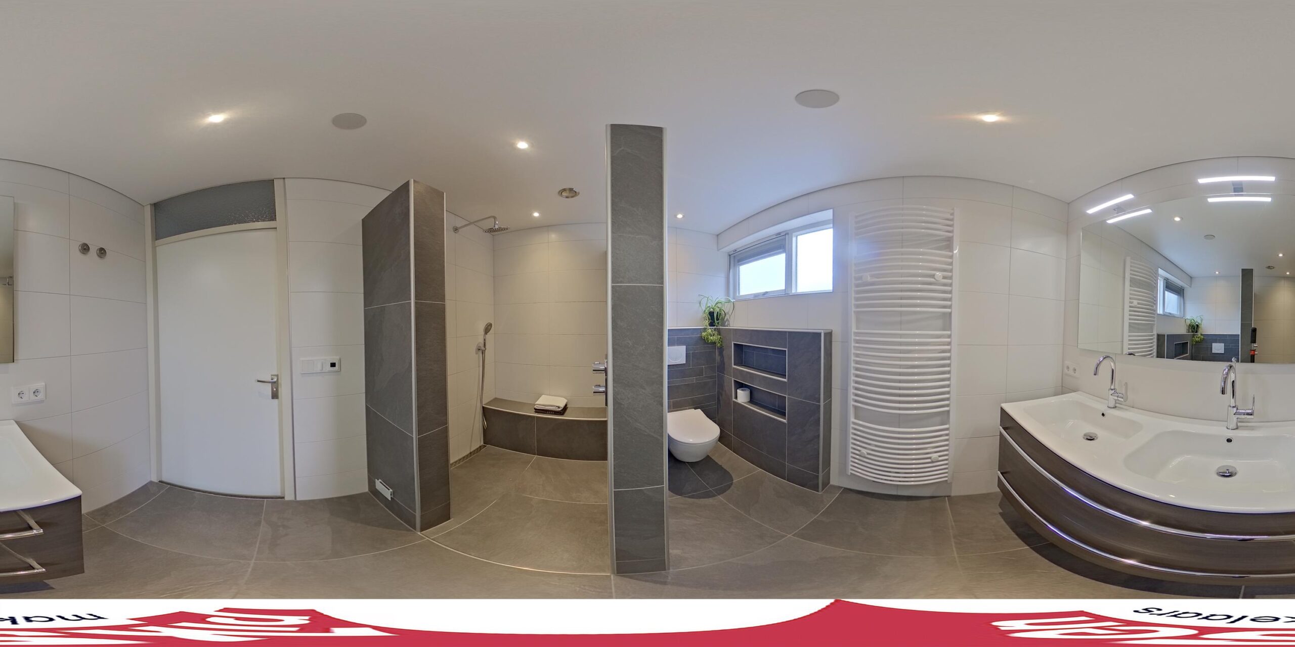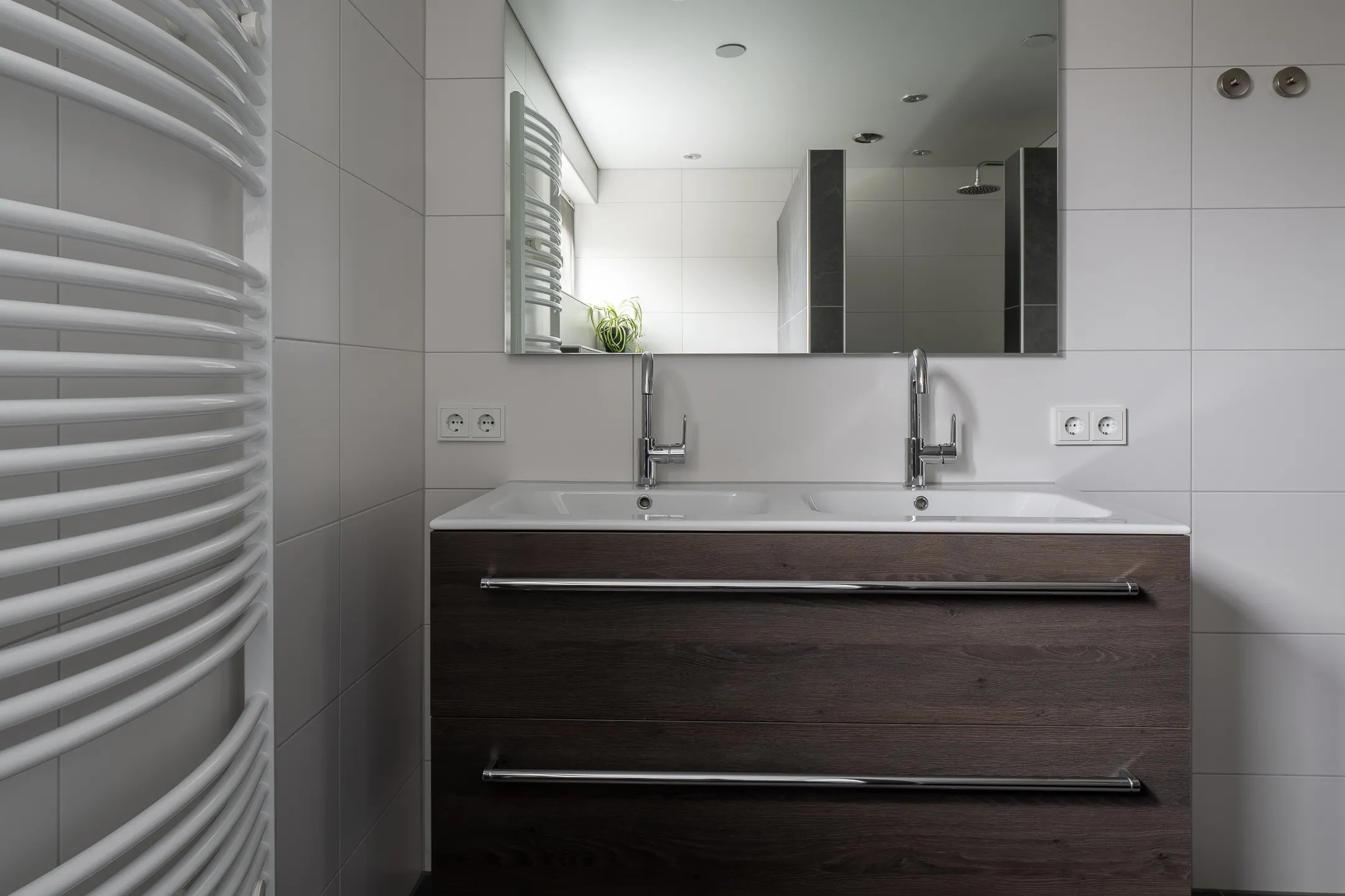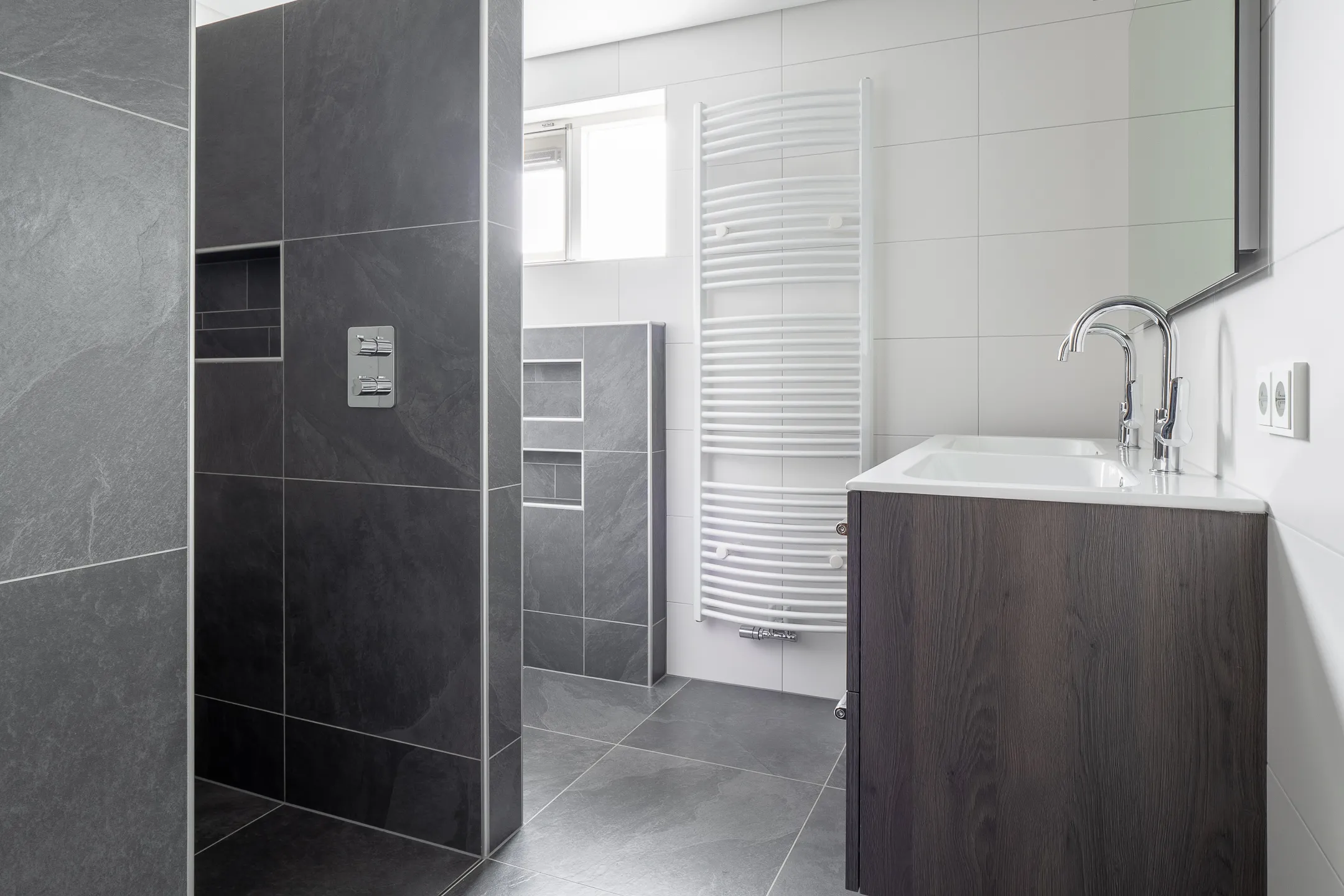 - Badkamervoorzieningen Toilet, dubbele wastafel, inloopdouche