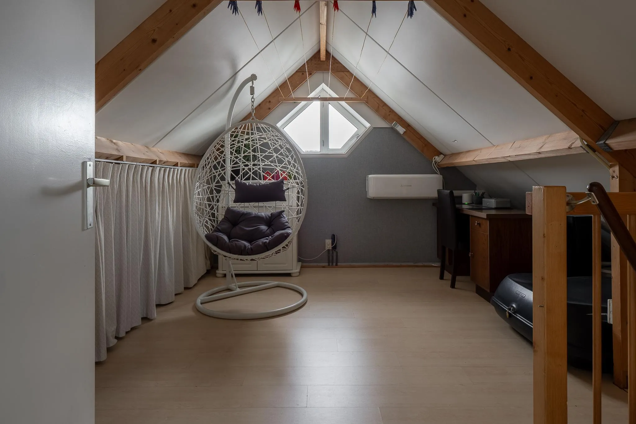 2e verdieping: middels vaste trap te bereiken zolder, voorzolder met airco, slaapkamer (4).