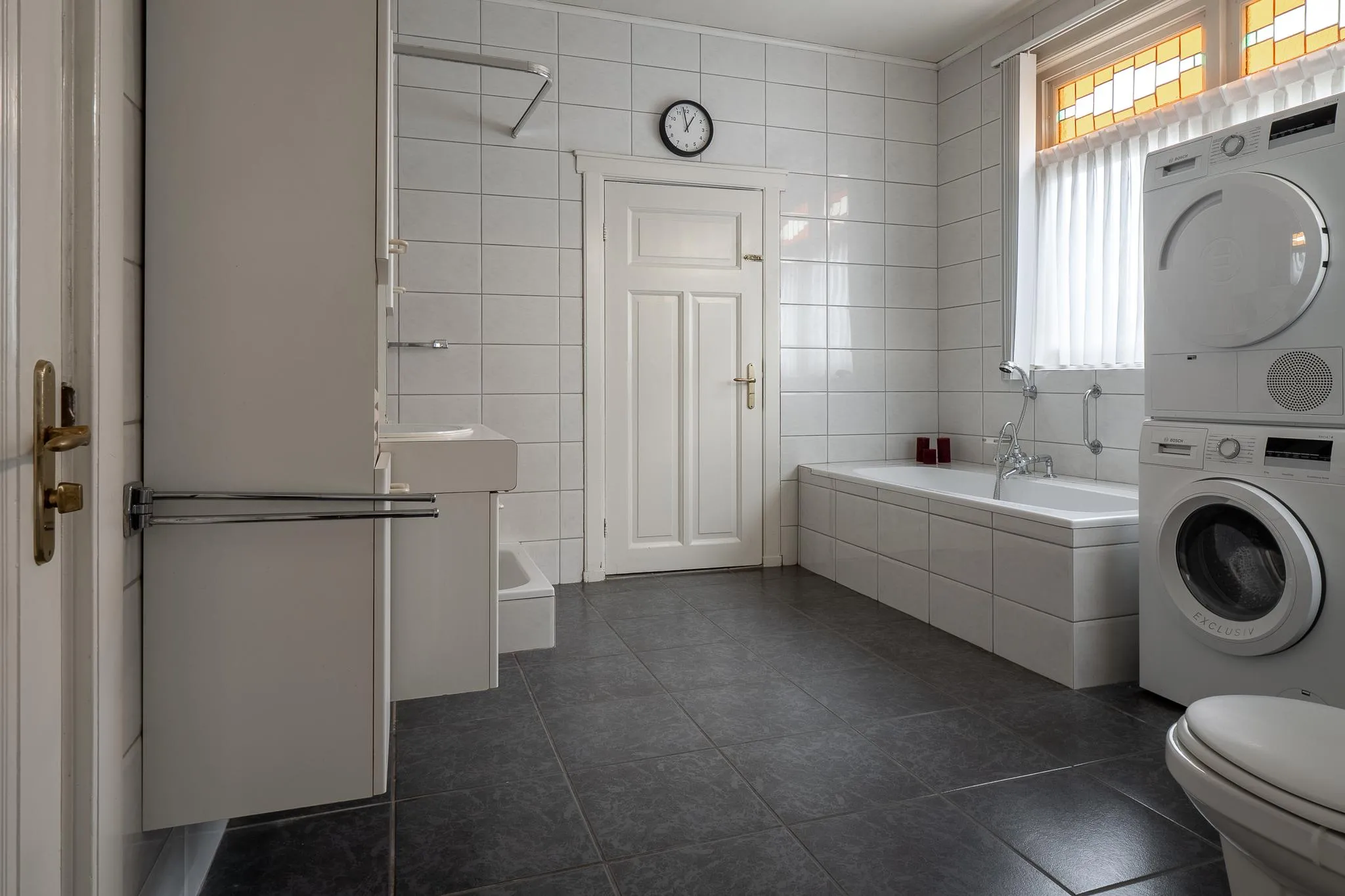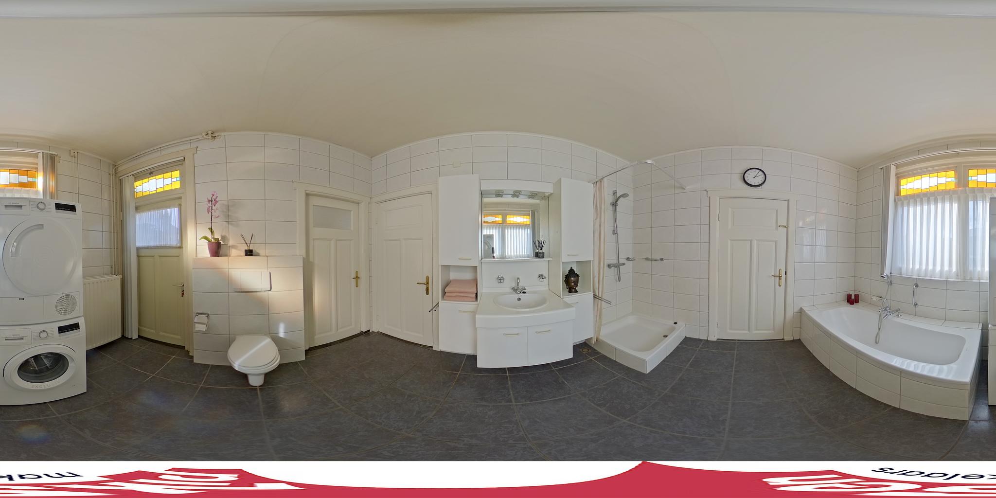 - Badkamervoorzieningen Ligbad, toilet, douche, wastafelmeubel, wasmachineaansluiting, toilet, douche