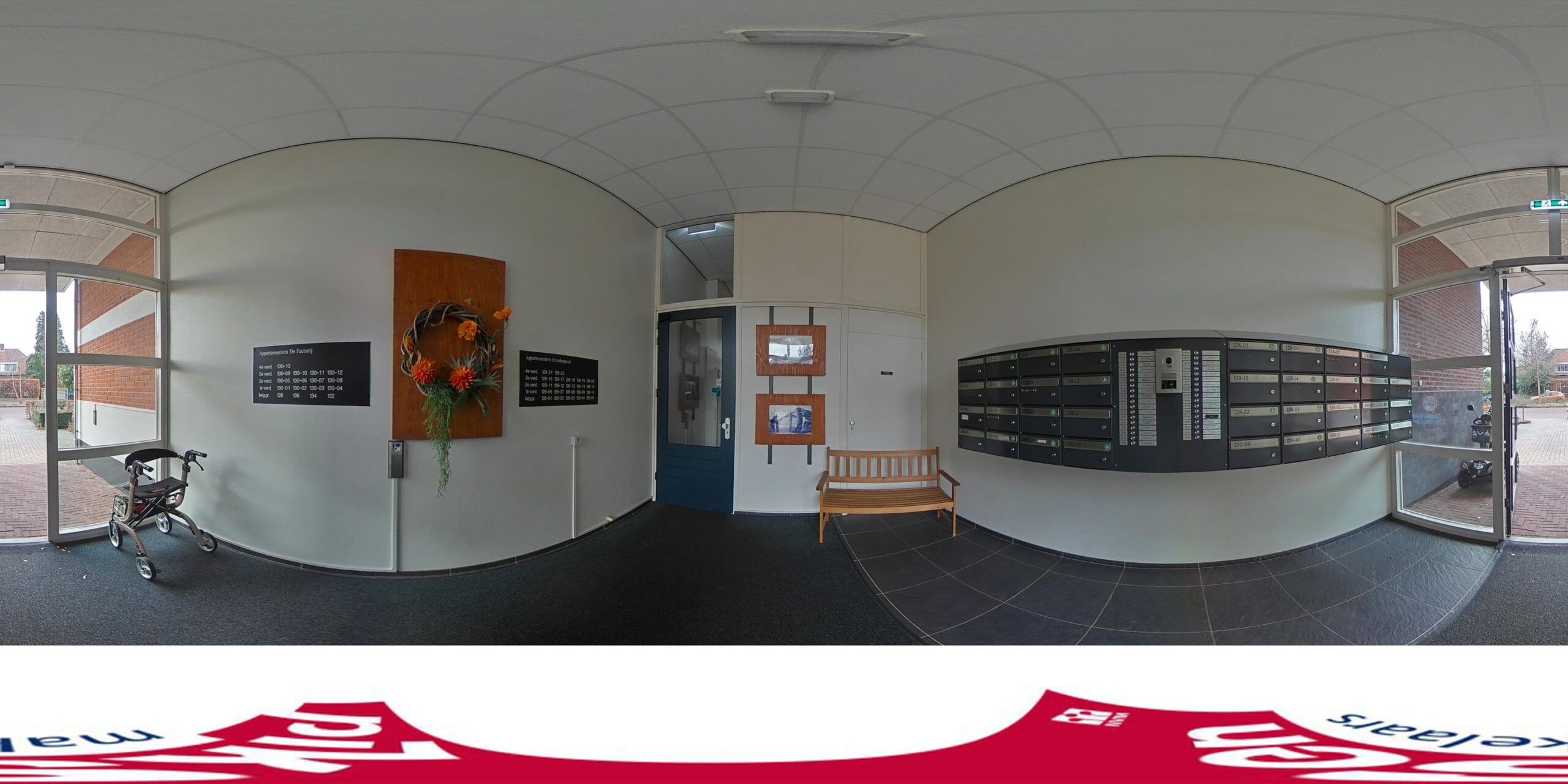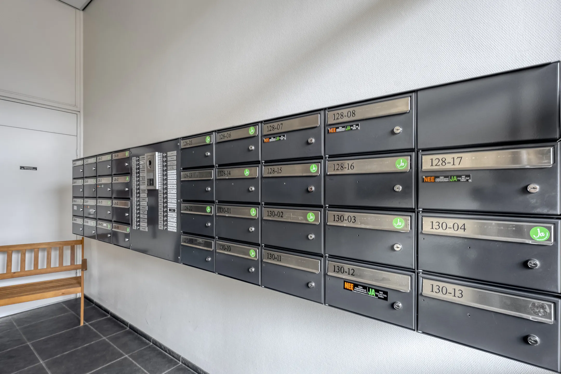 Begane grond: centrale hal/entree, videofoon, postbussen, lift en trappenhuis;