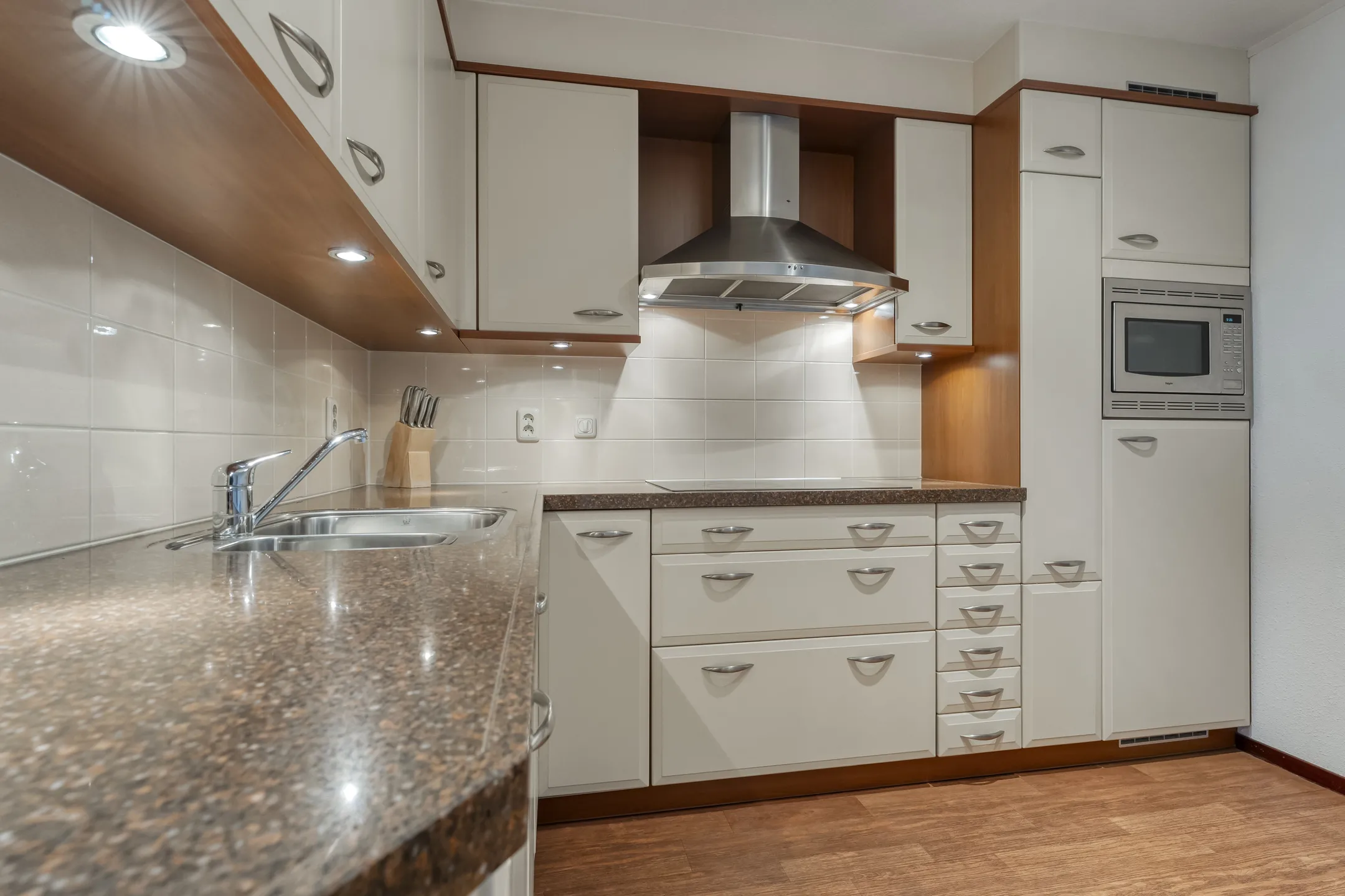 Het appartement is bereikbaar via een lift en beschikt over een lichte woonkamer met toegang tot een fijn balkon, waar u heerlijk buiten kunt zitten. De keuken is praktisch ingericht en biedt voldoende ruimte voor dagelijks gebruik.