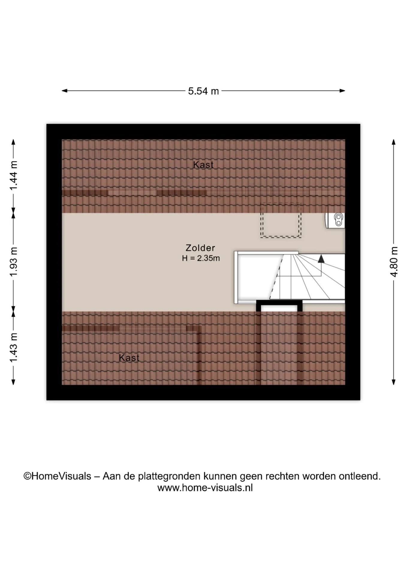 2e verdieping: bergzolder te bereiken middels vaste trap.