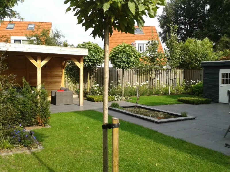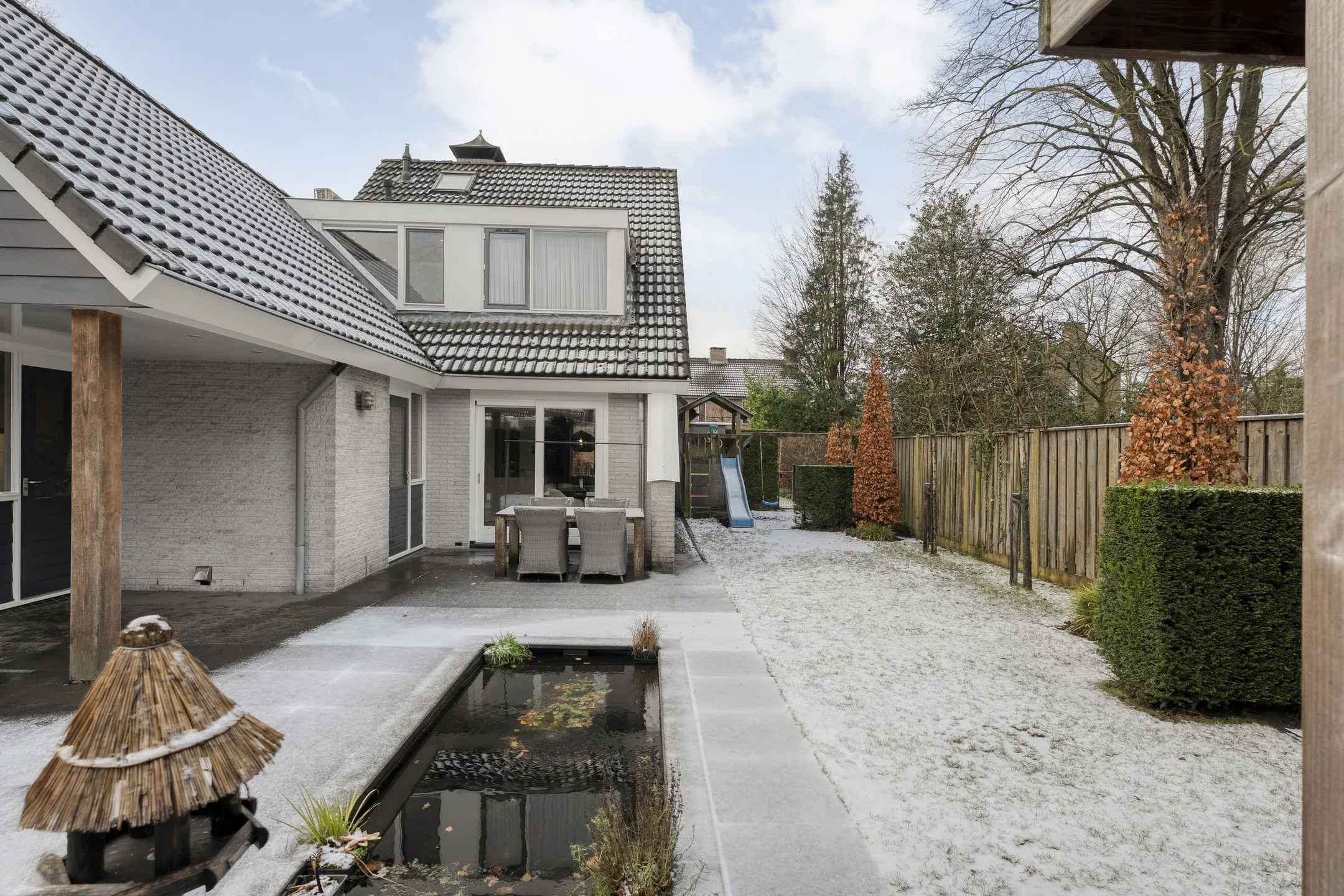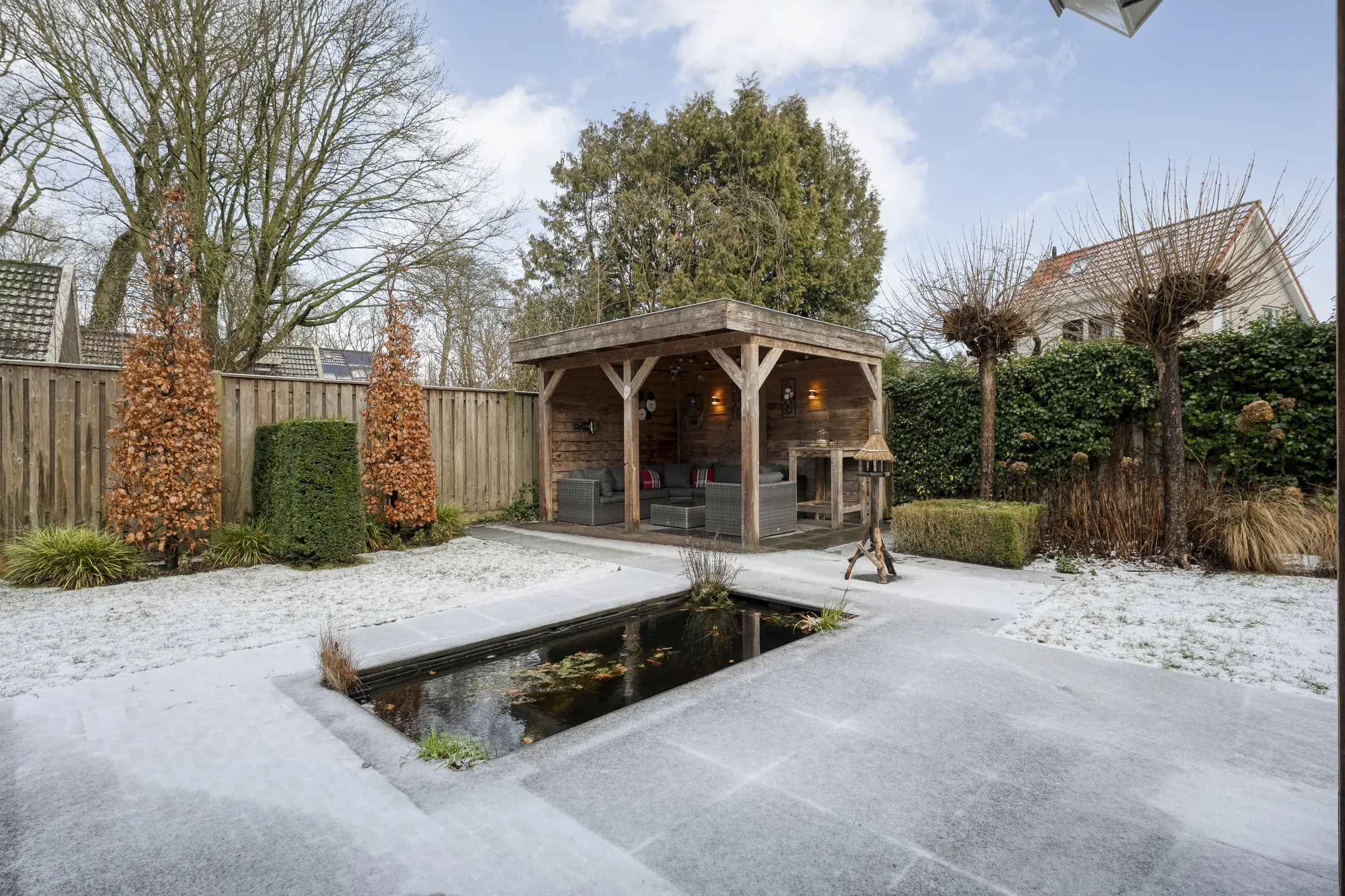 De fraai aangelegde tuin is een absolute meerwaarde van deze woning. De tuin biedt volop privacy en beschikt over een terrasoverkapping, vijver en een praktische berging. Een prettige buitenruimte om in alle rust te verblijven.