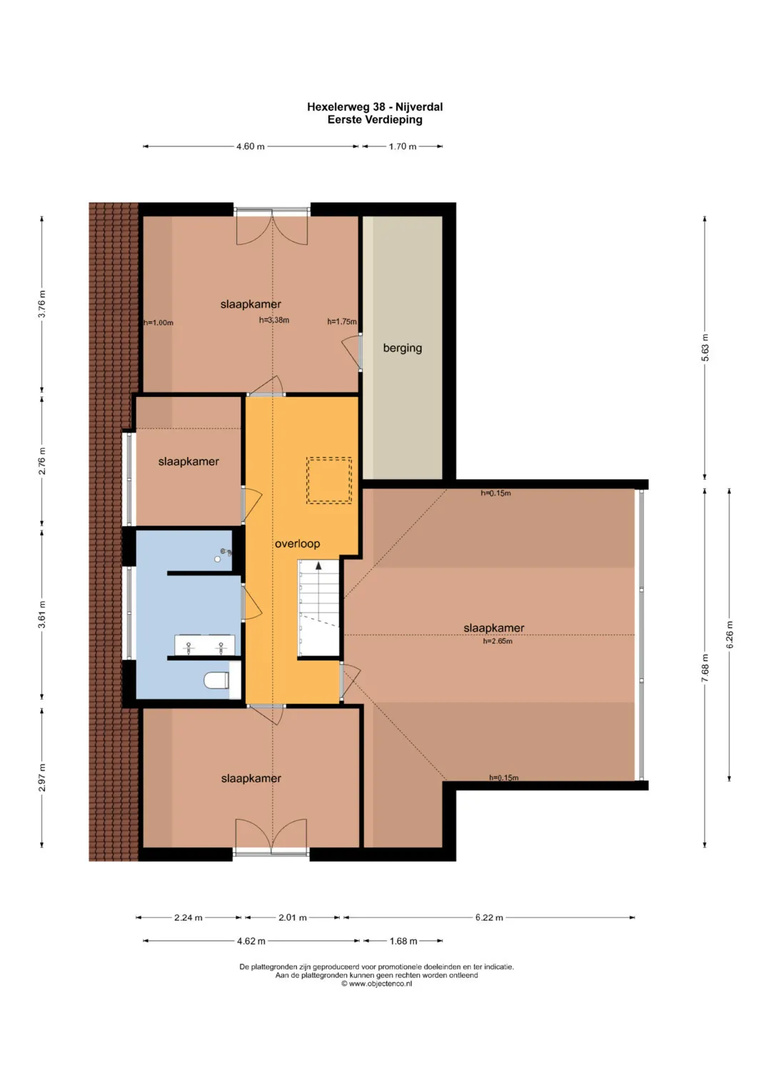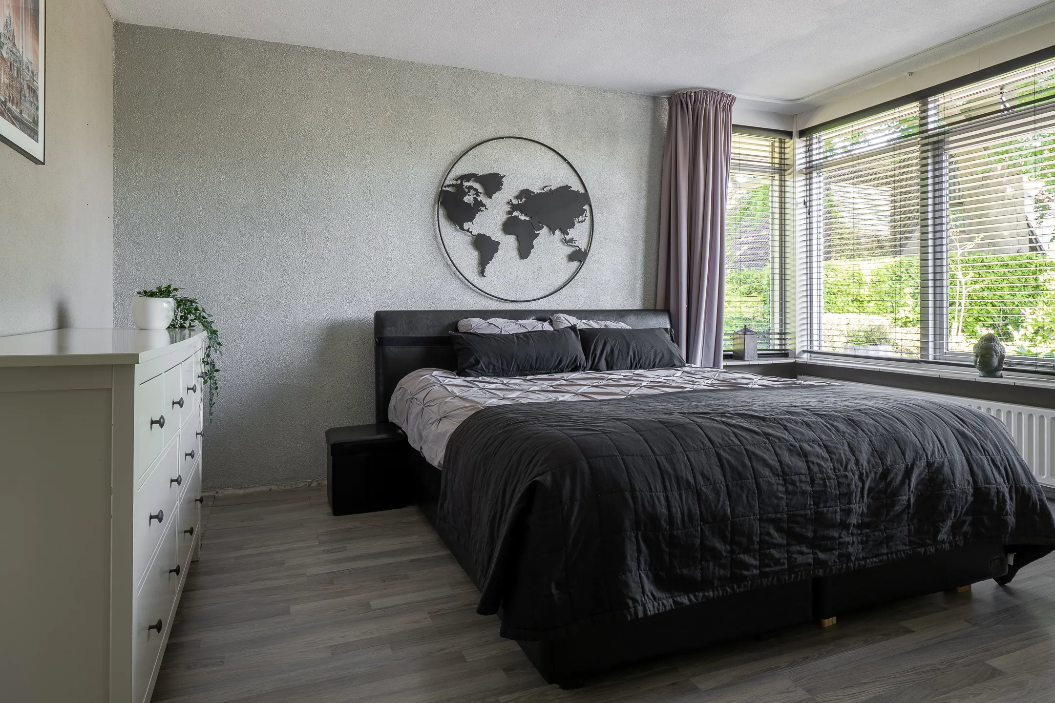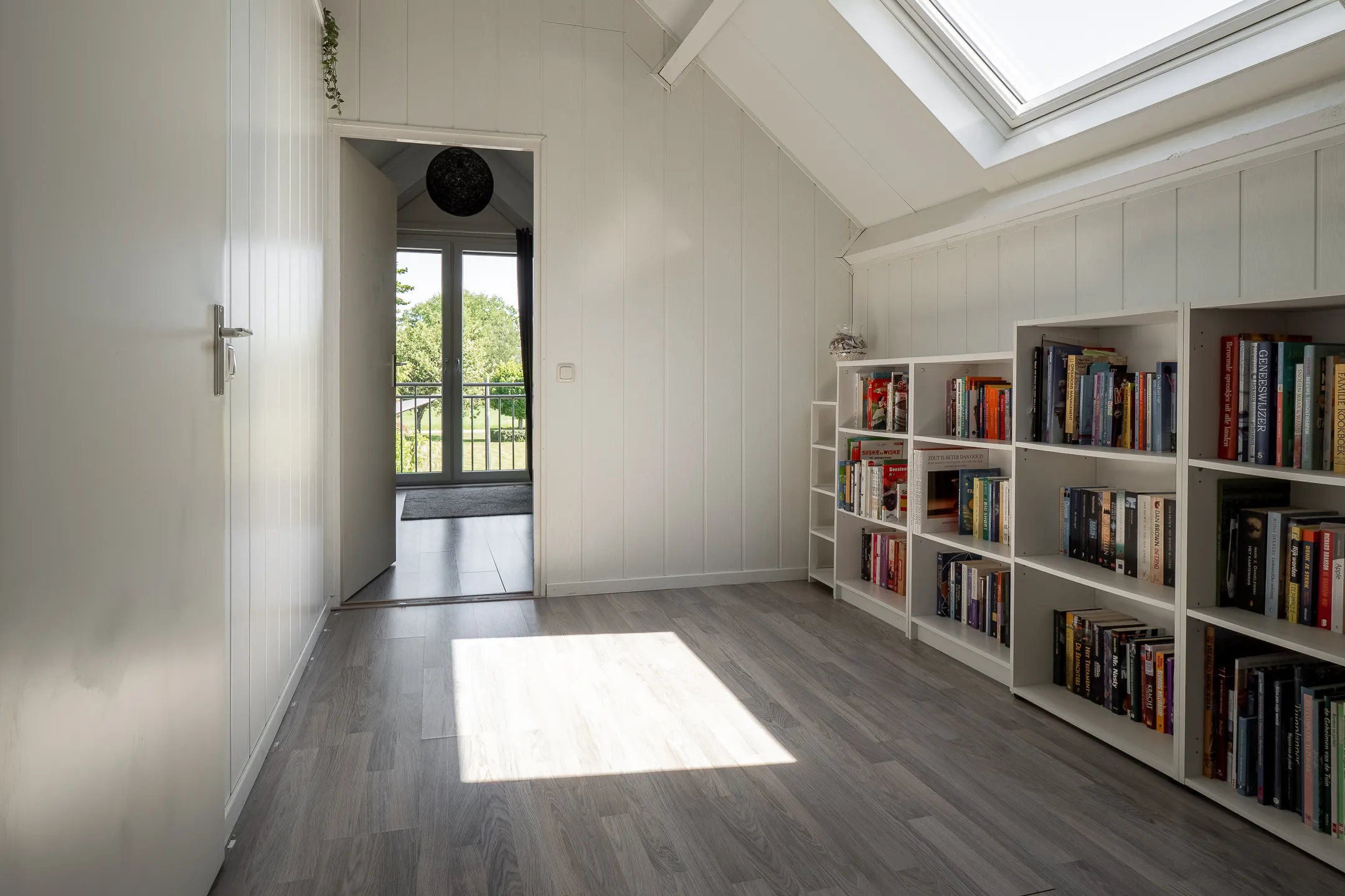 1e verdieping: overloop, slaapkamer (2) met berging, slaapkamer (3), slaapkamer (4), slaapkamer (5) met weids uitzicht, badkamer v.v. dubbele wastafel, inloopdouche en toilet.