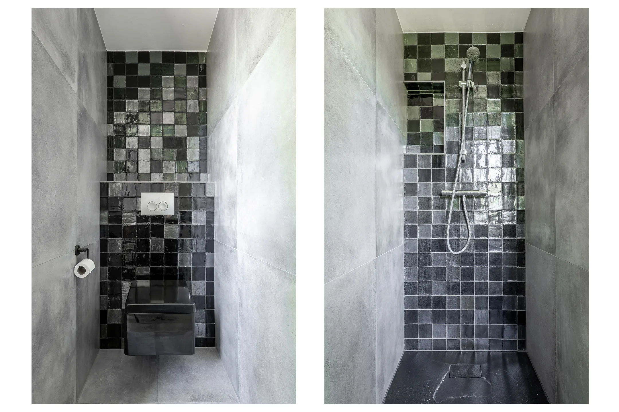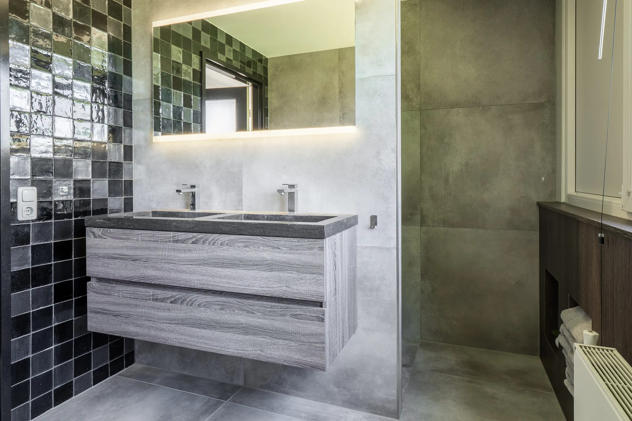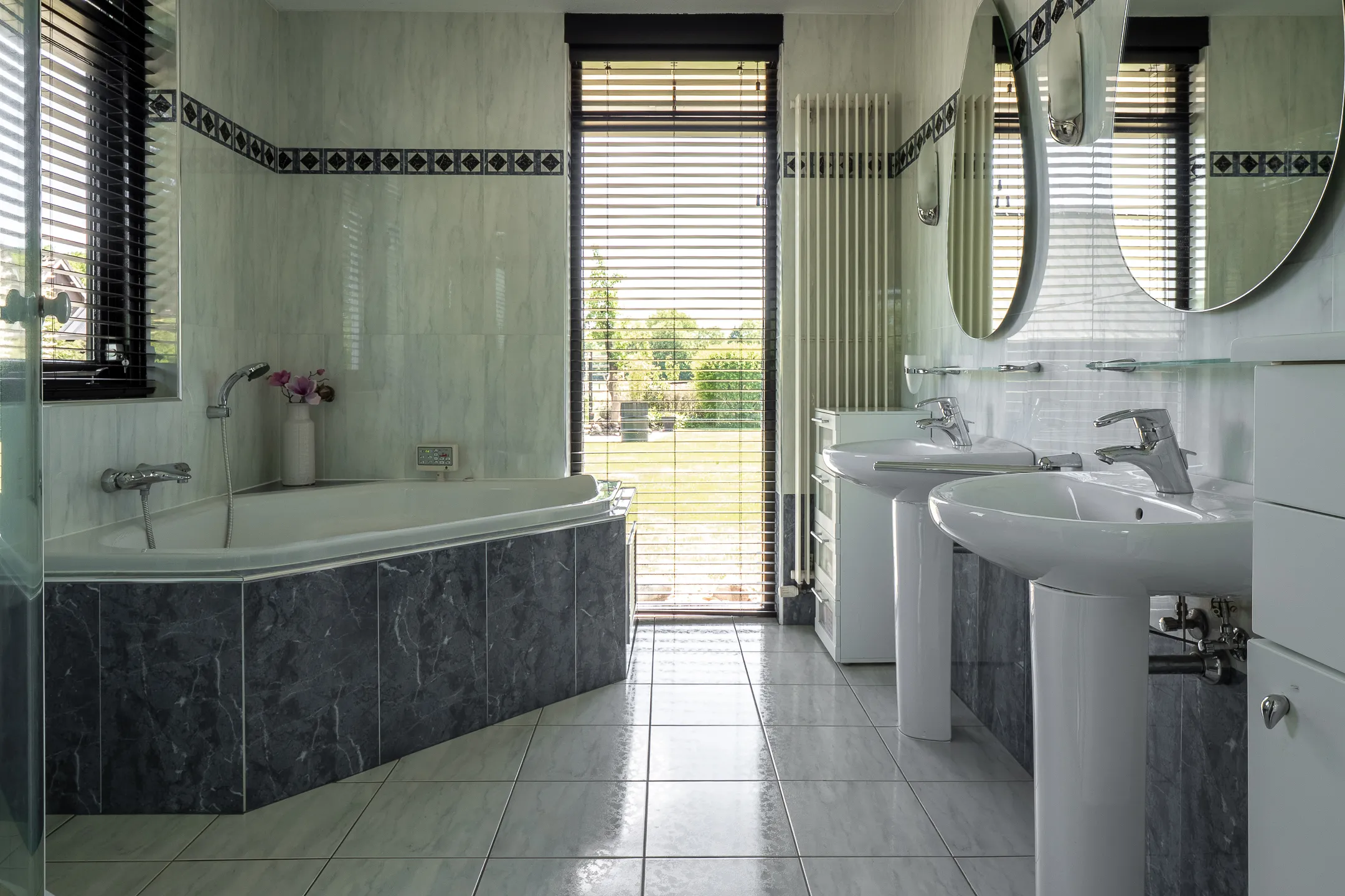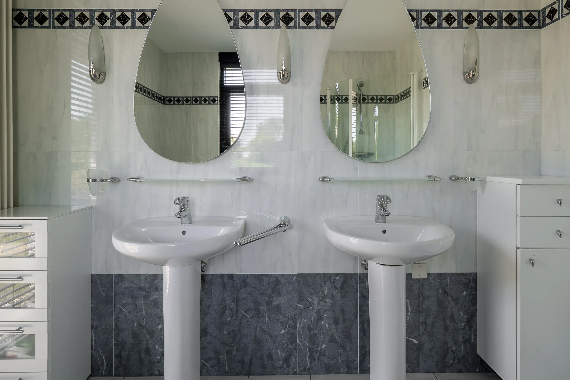 - Badkamervoorzieningen Ligbad, toilet, douche, wastafel, toilet, douche, dubbele wastafel