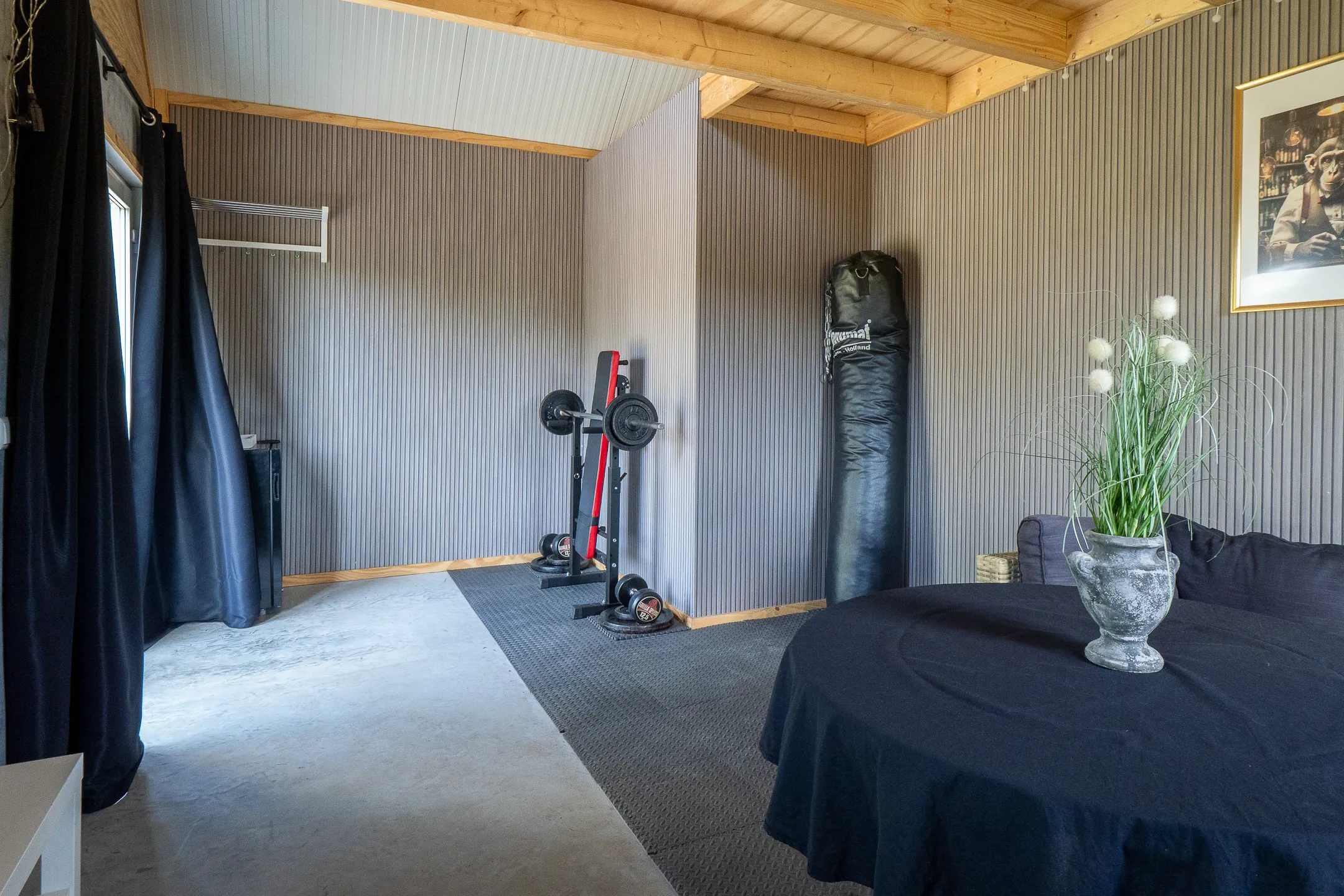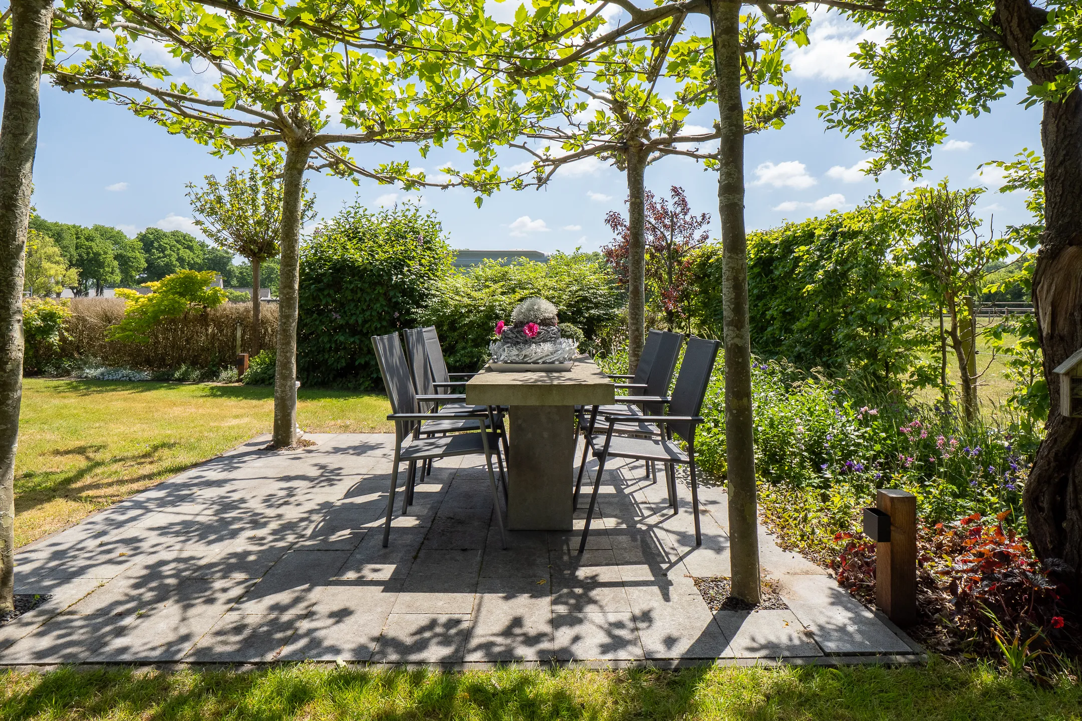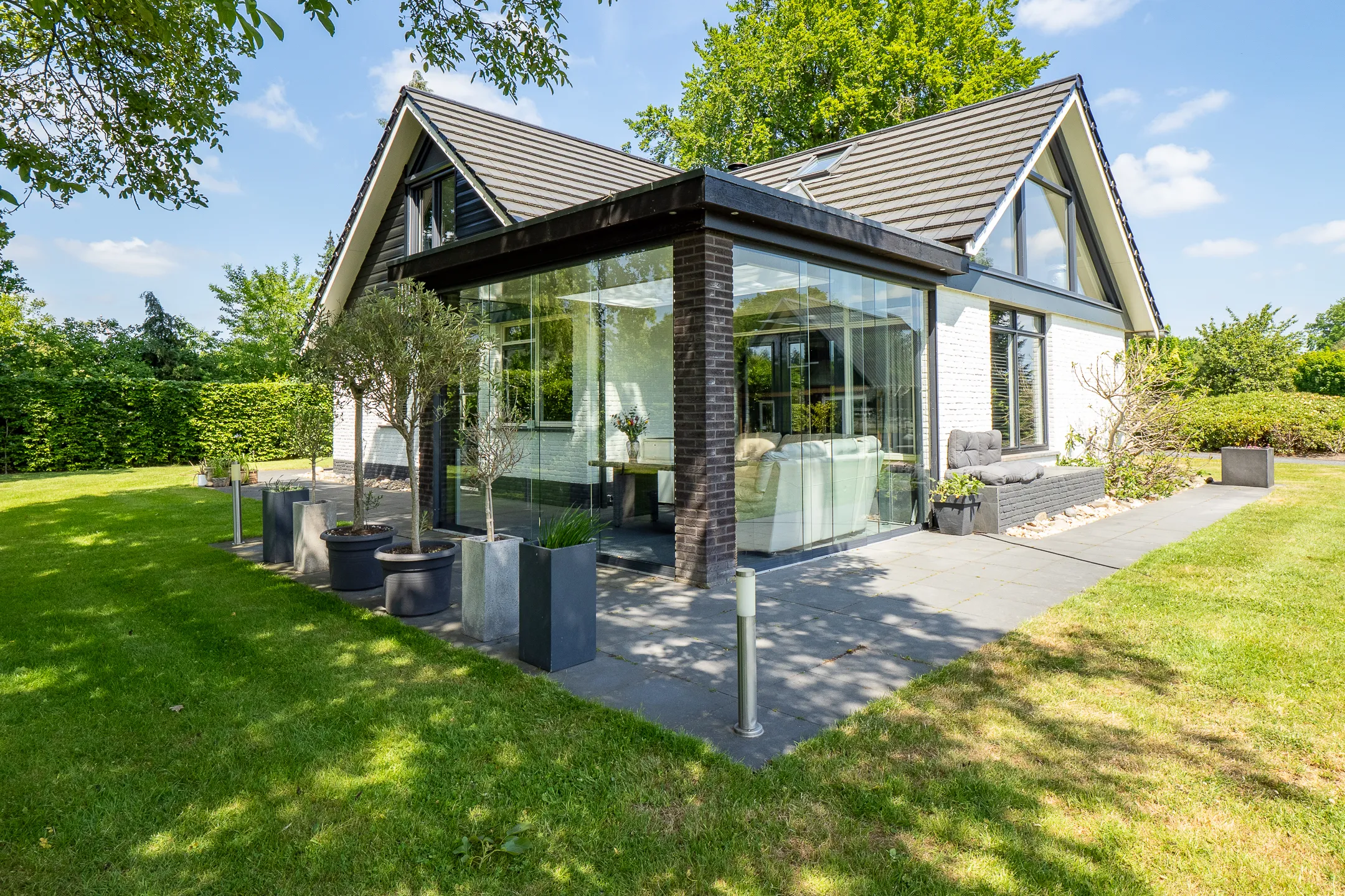 Deze woning leent zich uitstekend voor het buitenleven: ontspannen in de groene tuin, onder de sfeervolle glazen overkapping of in en rond de hobbyschuur.