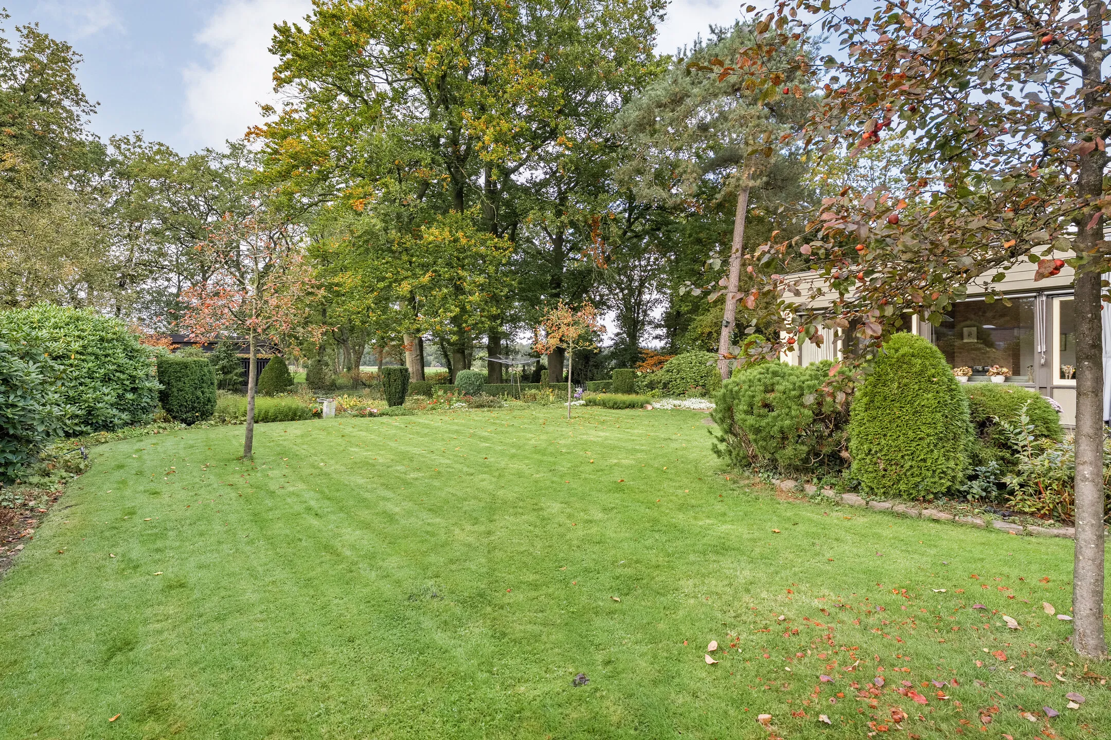 De tuin is rondom de woning fraai aangelegd met divers groen, variรซrend van struiken en volwassen bomen tot een groene grasmat die besproeid kan worden via de aangelegde tappunten die zijn aangesloten op de eigen grondwaterbron.