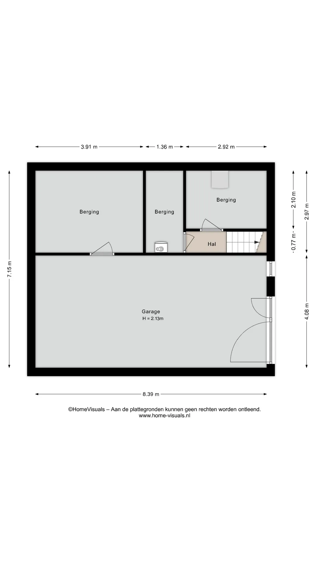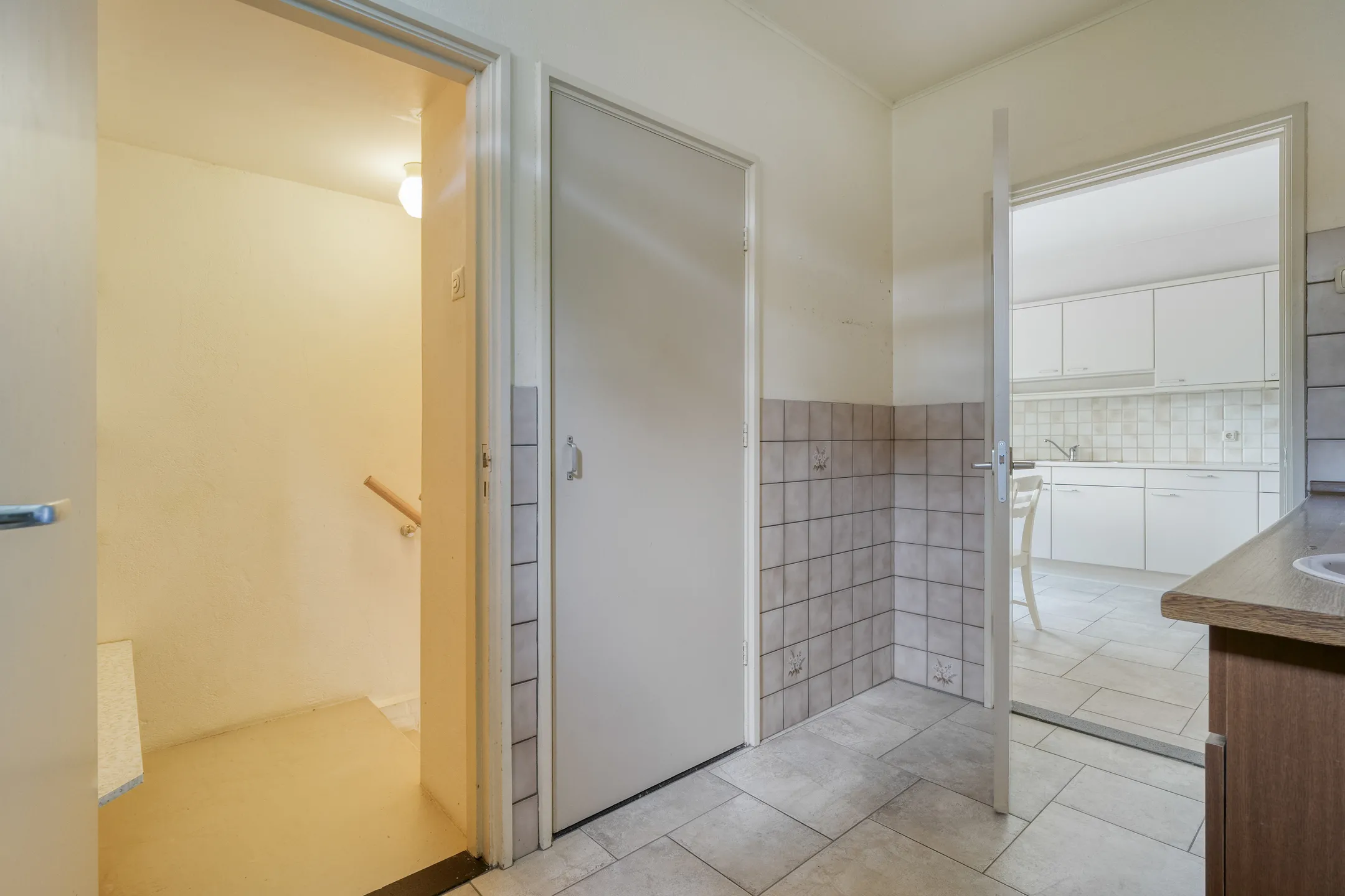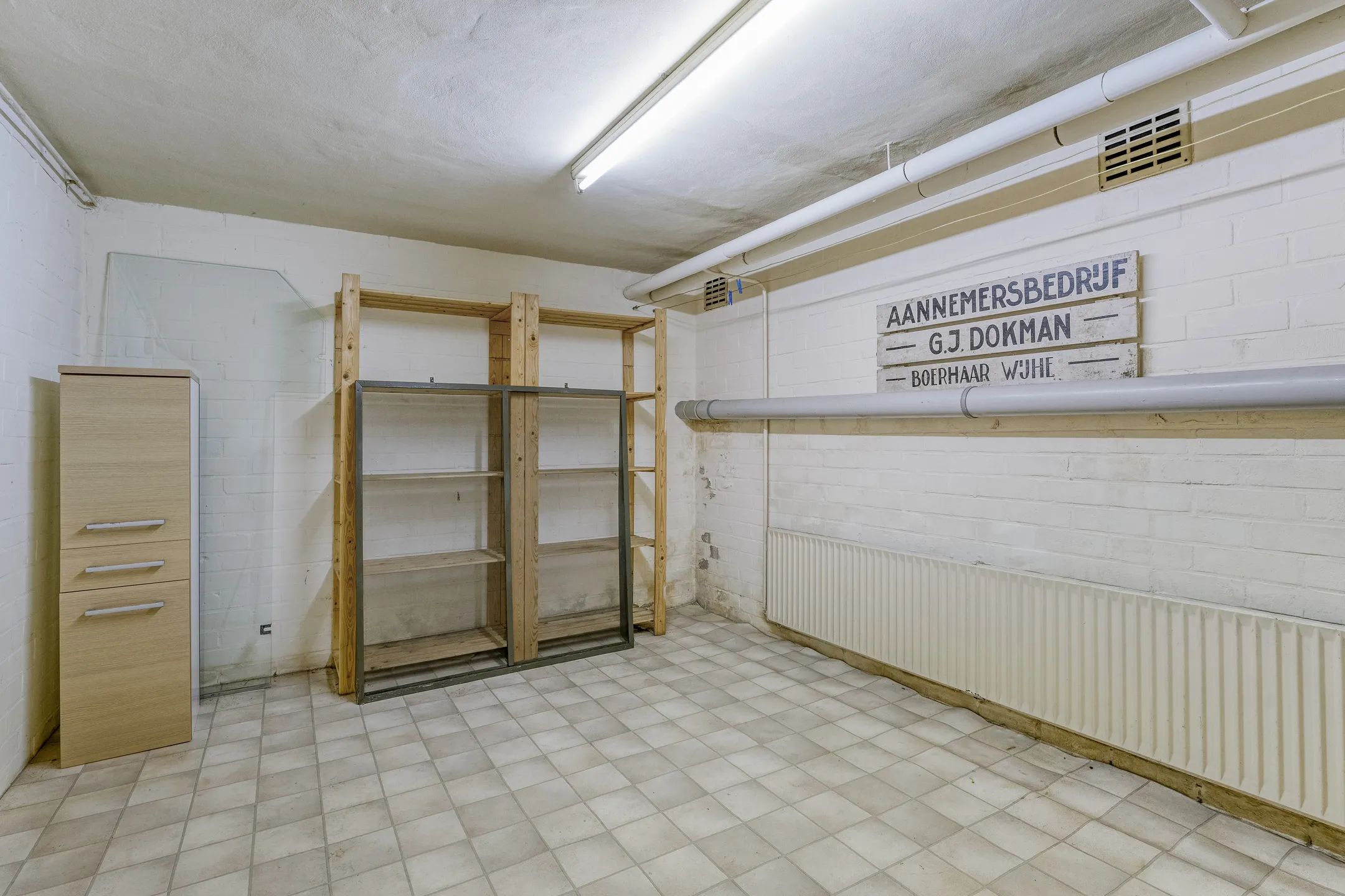 Souterrain: Inpandige garage (circa 4 m x 8 m) voorzien van kanteldeur en loopdeur, aansluitend een multifunctionele ruimte thans in gebruik als berging, vanuit de garage is met een loopdeur het portaal te bereiken dat toegang geeft tot de C.V.-ruimte, een provisieruimte en de stenen trapopgang.