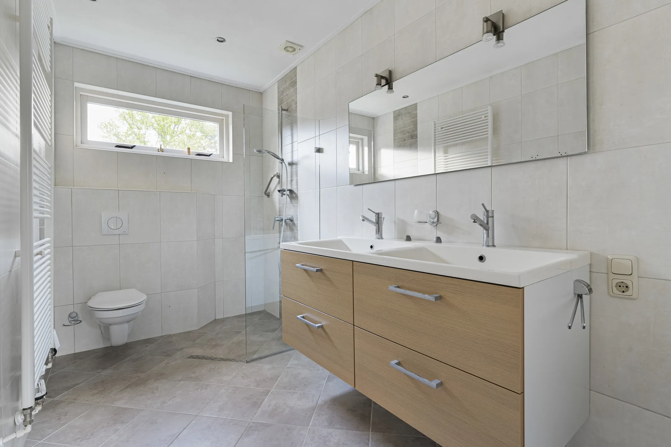 - Badkamervoorzieningen Toilet, dubbele wastafel, inloopdouche