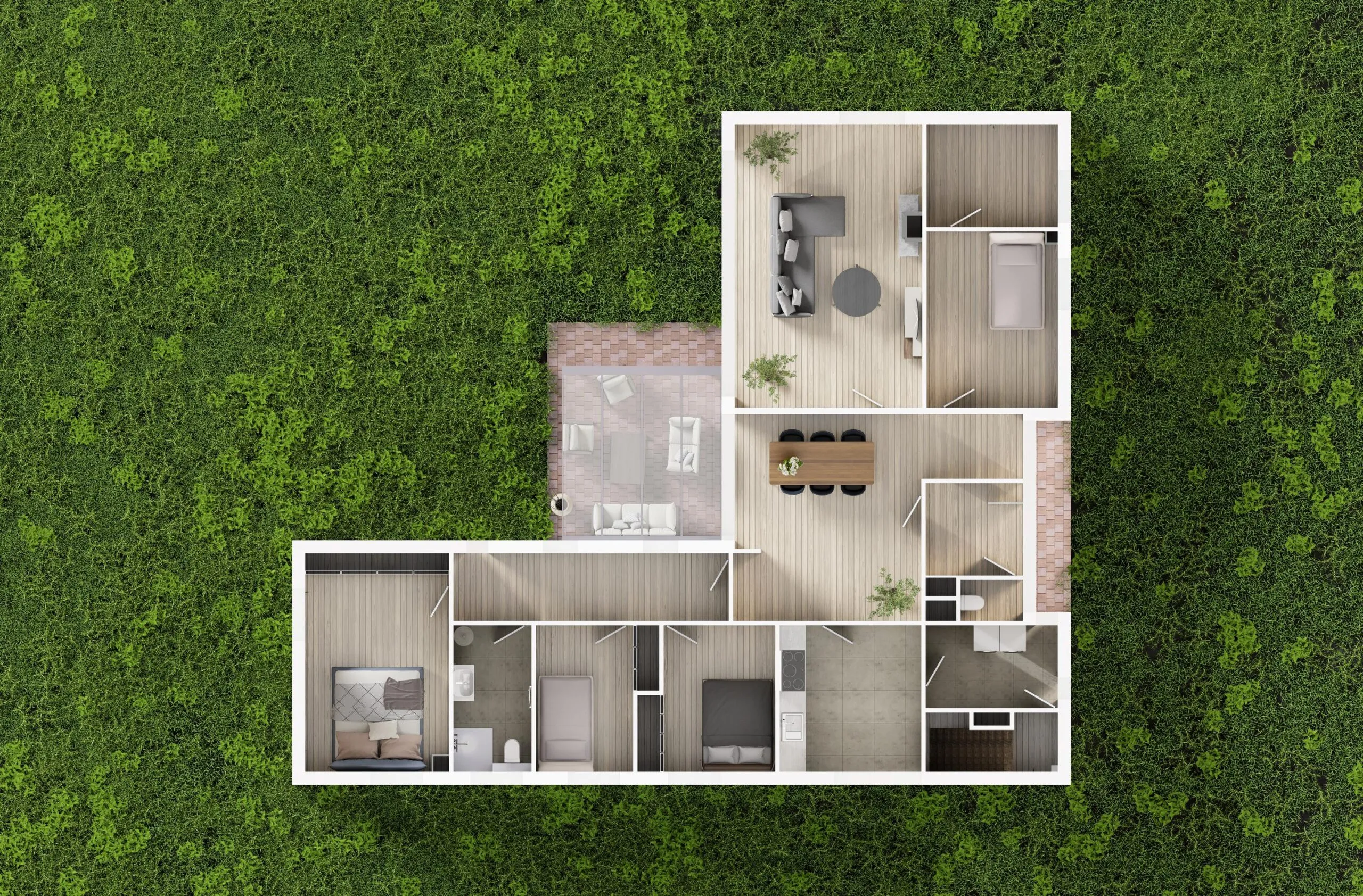 Bovendien biedt de woning ook legio opties als u voorbij de goede basis kijkt en een carte blanche verlangd om op deze bijzondere plek uw ‘forever home’ wilt creรซren. Denk hierbij bijvoorbeeld aan het houden van een praktijk of kantoor aan huis met zelfs mogelijk een separate entree, waardoor geen afbreuk wordt gedaan aan de privacy van het woongedeelte. Ter inspiratie zijn een aantal 3D impressies bijgesloten van mogelijke alternatieven voor de indeling.