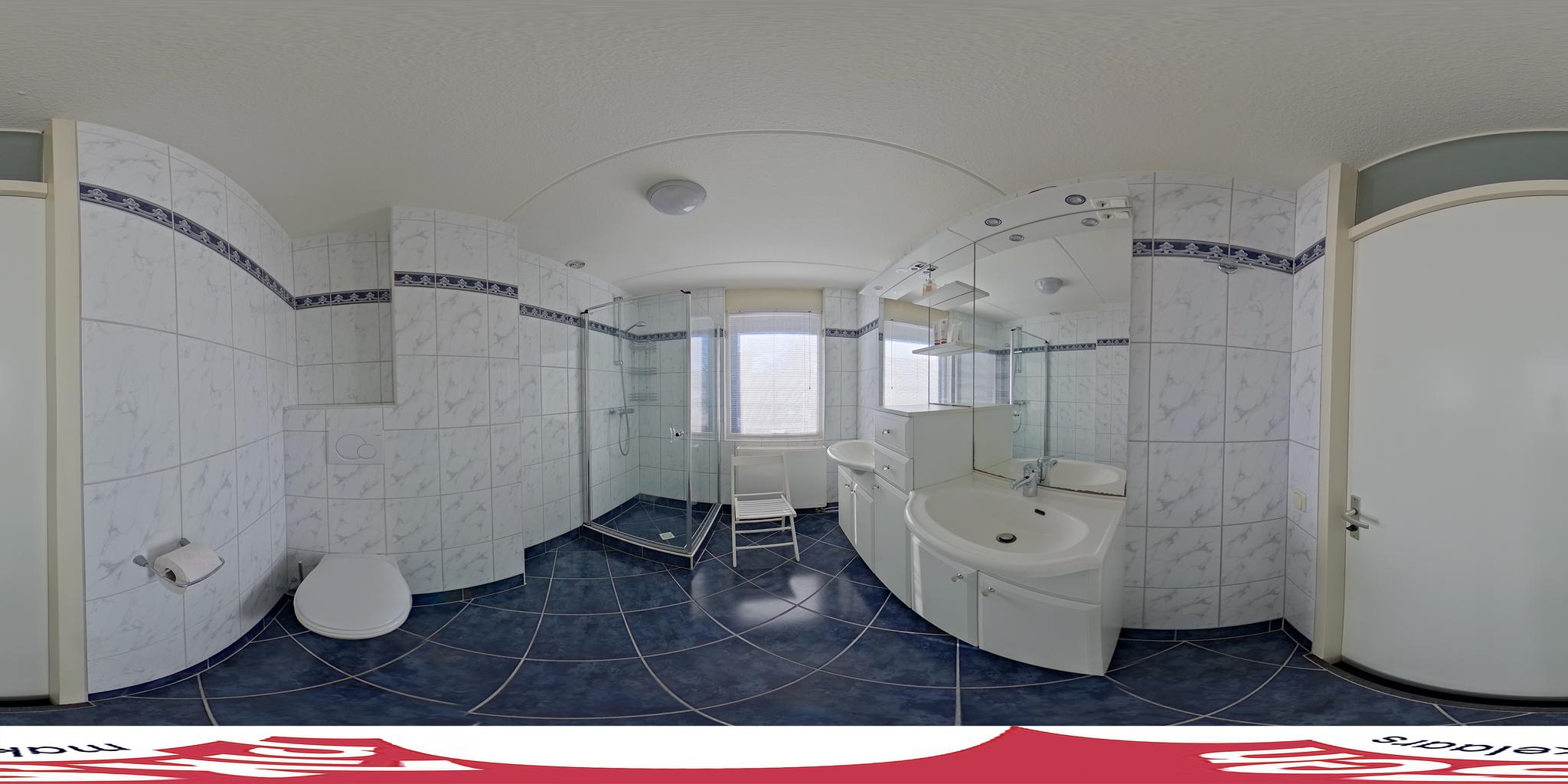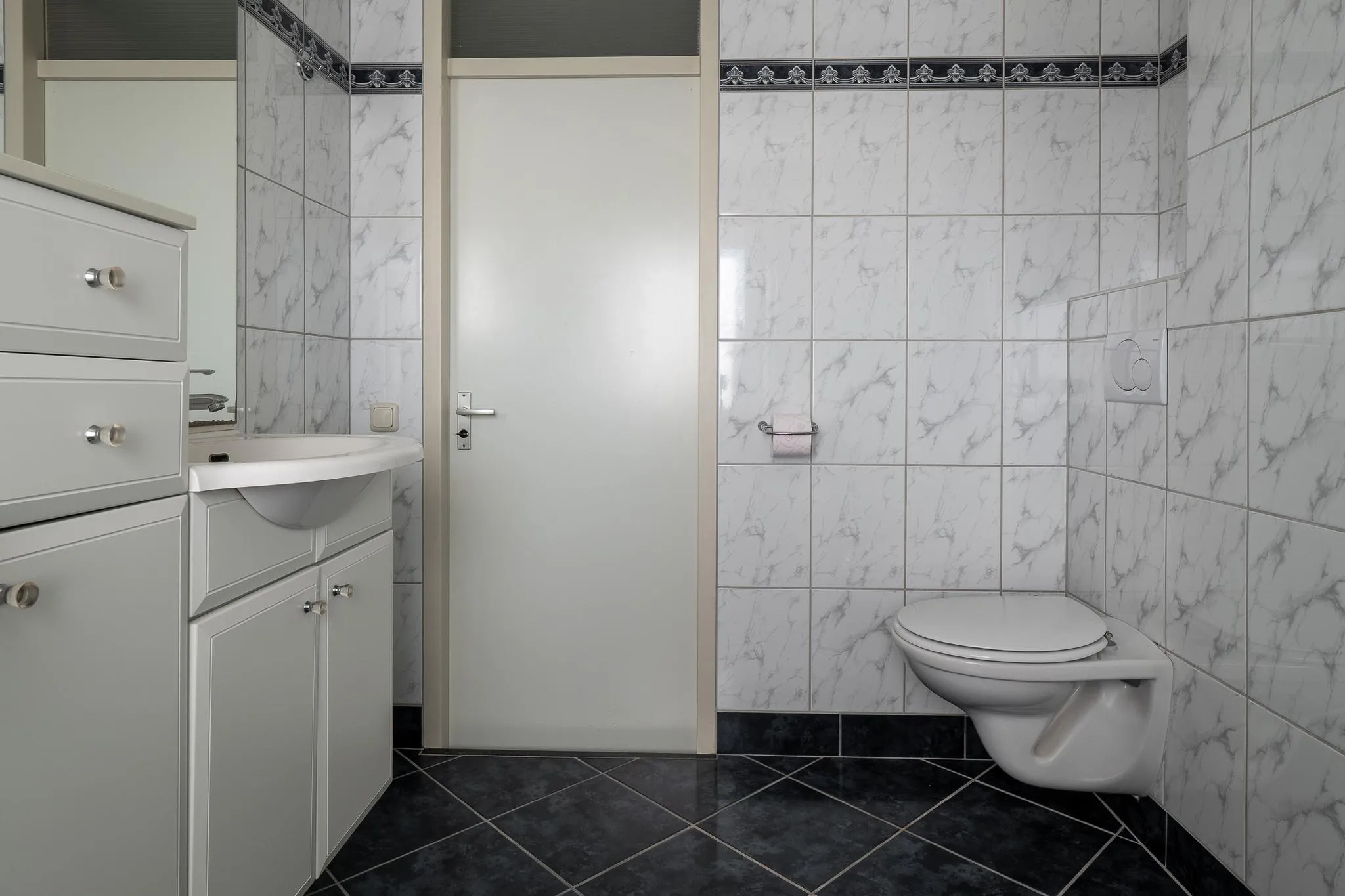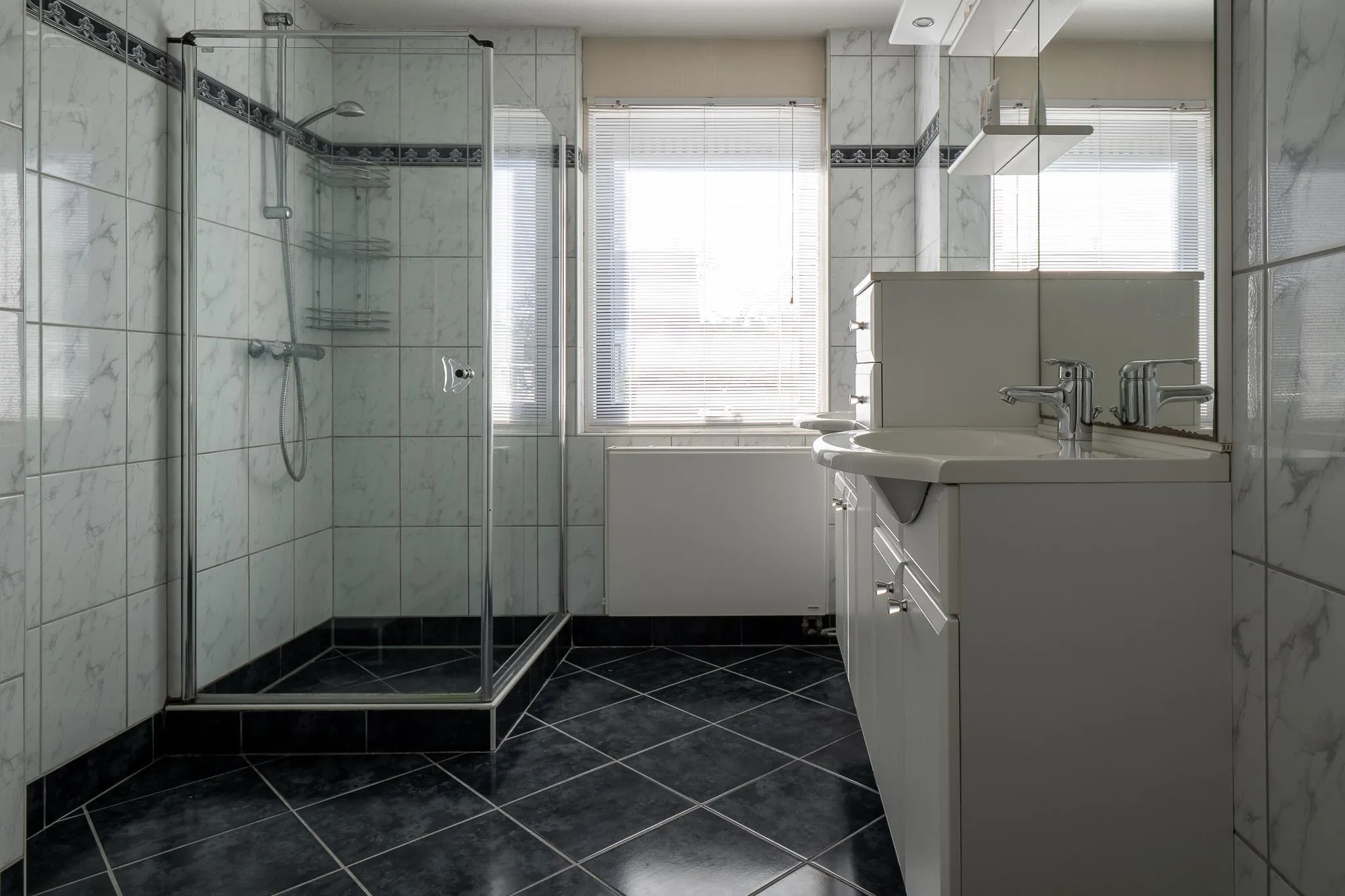 - Badkamervoorzieningen Toilet, douche, dubbele wastafel