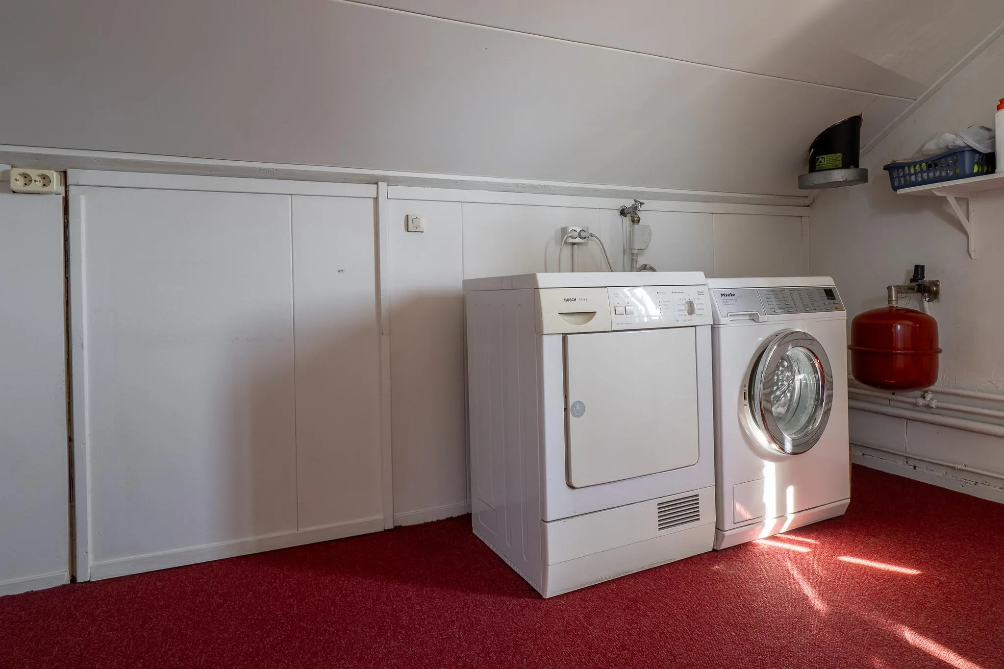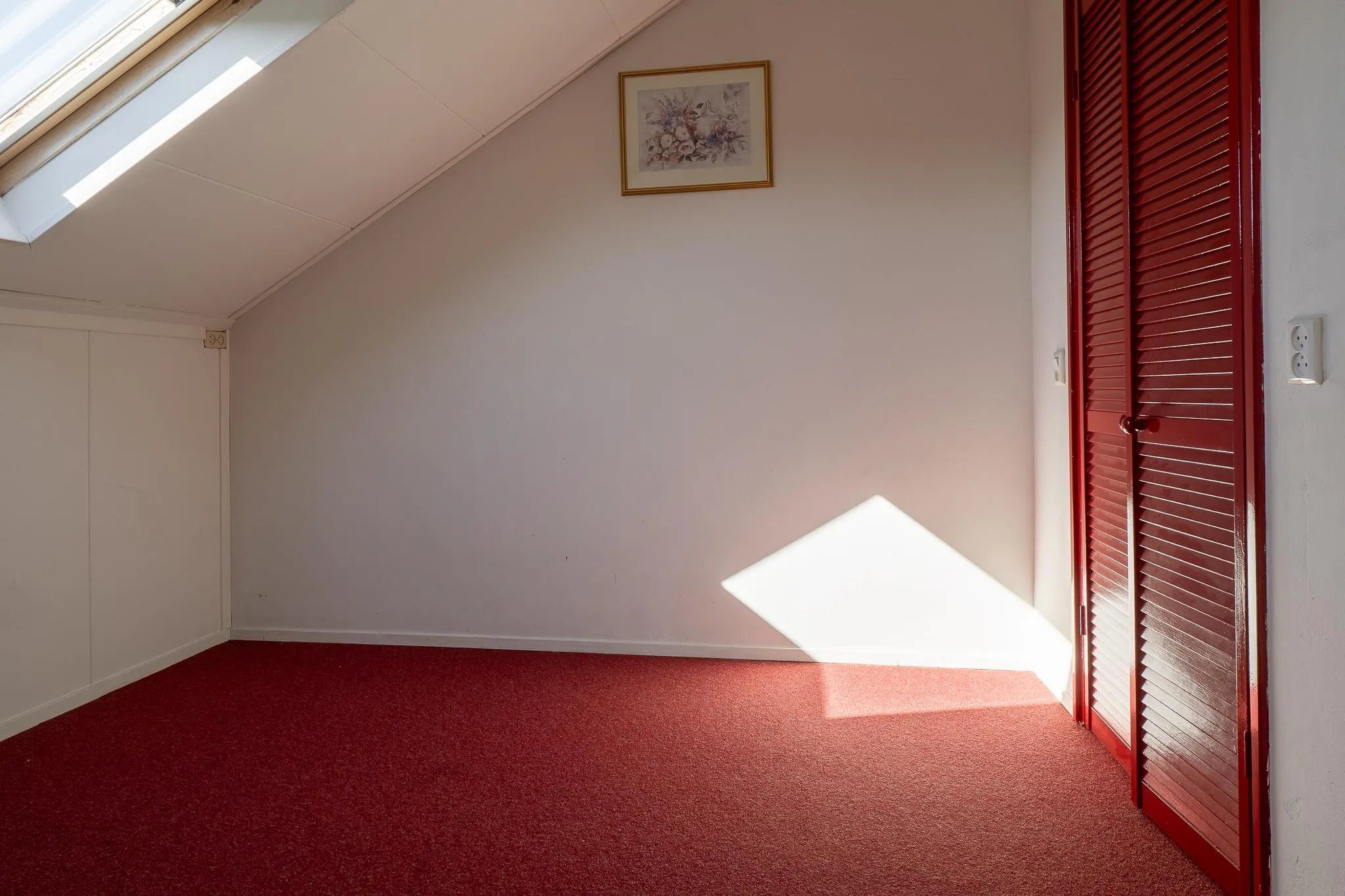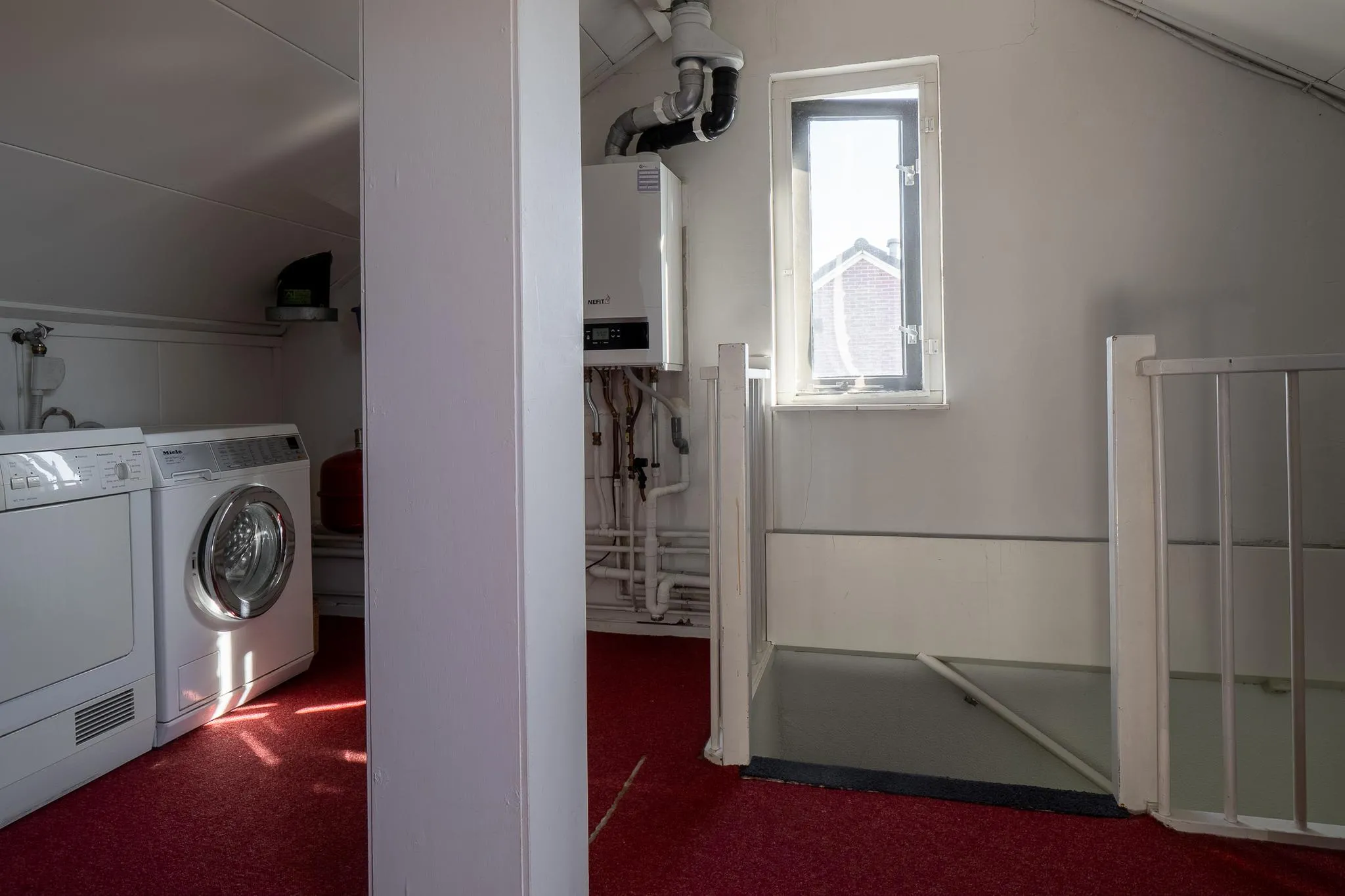 Zolder: via vaste trap te bereiken voorzolder met witgoedaansluiting, cv-opstelling en opbergmogelijkheden, slaapkamer (4) met vaste kast en tuimelvenster