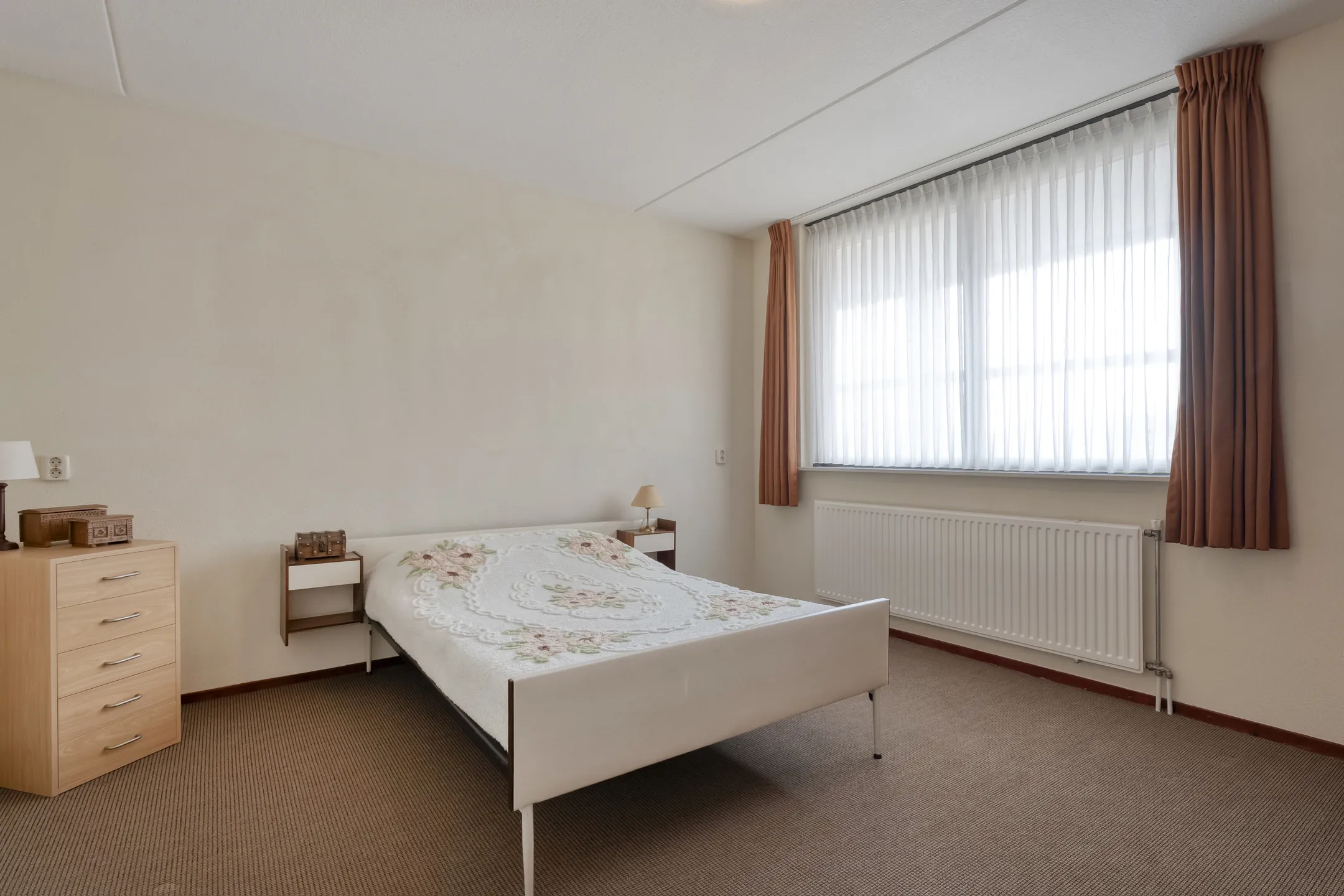 Met twee comfortabele slaapkamers, beide voorzien van vaste kasten, beschikt het appartement over veel ruimte. Daarnaast is er een nette badkamer met ligbad, douche en wastafel, met praktische voorzieningen die extra comfort en gebruiksgemak bieden. Ook is er een separate toiletruimte. Het geheel is goed onderhouden en biedt een fijne basis om direct te betrekken.