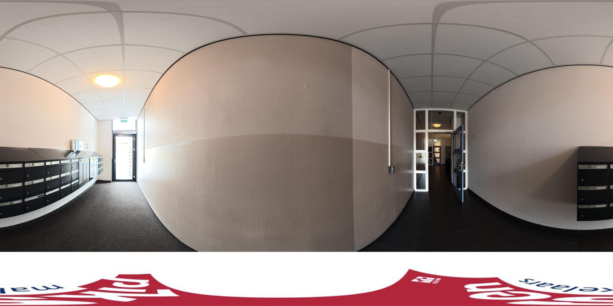 Begane grond: hoofdentree, hal met videofoon en postbussen, lift en trappenhuis;