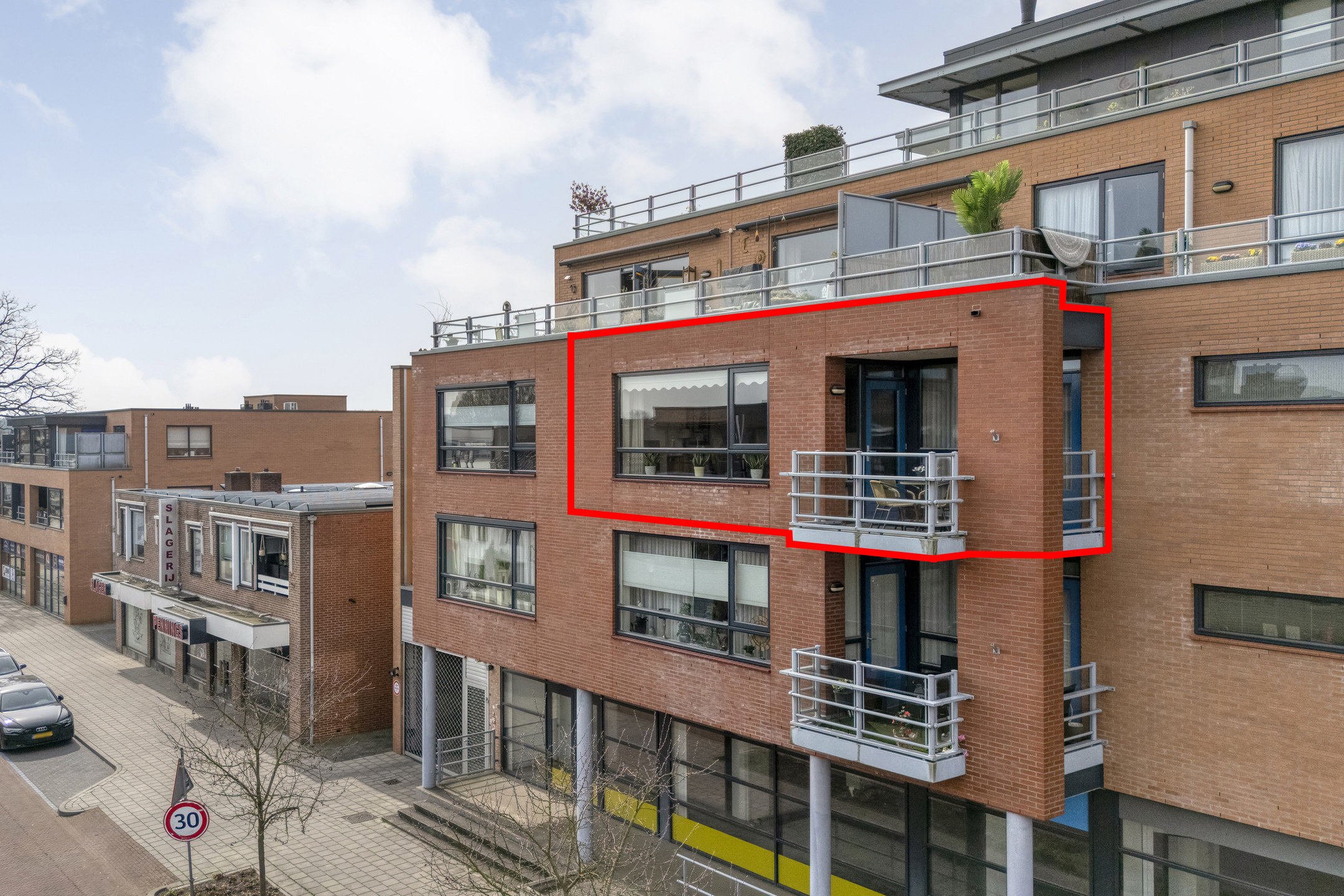 2e verdieping: overdekte inpandige entree, hal met garderoberuimte, wandtoilet met fontein, slaapkamer (1) met vaste kasten, slaapkamer (2) met vaste kasten, badkamer voorzien van ligbad, douche, wastafel, ruime woonkamer met toegang tot het balkon, half open keuken voorzien van inbouwapparatuur, bijkeuken met witgoedaansluiting en technische installaties.