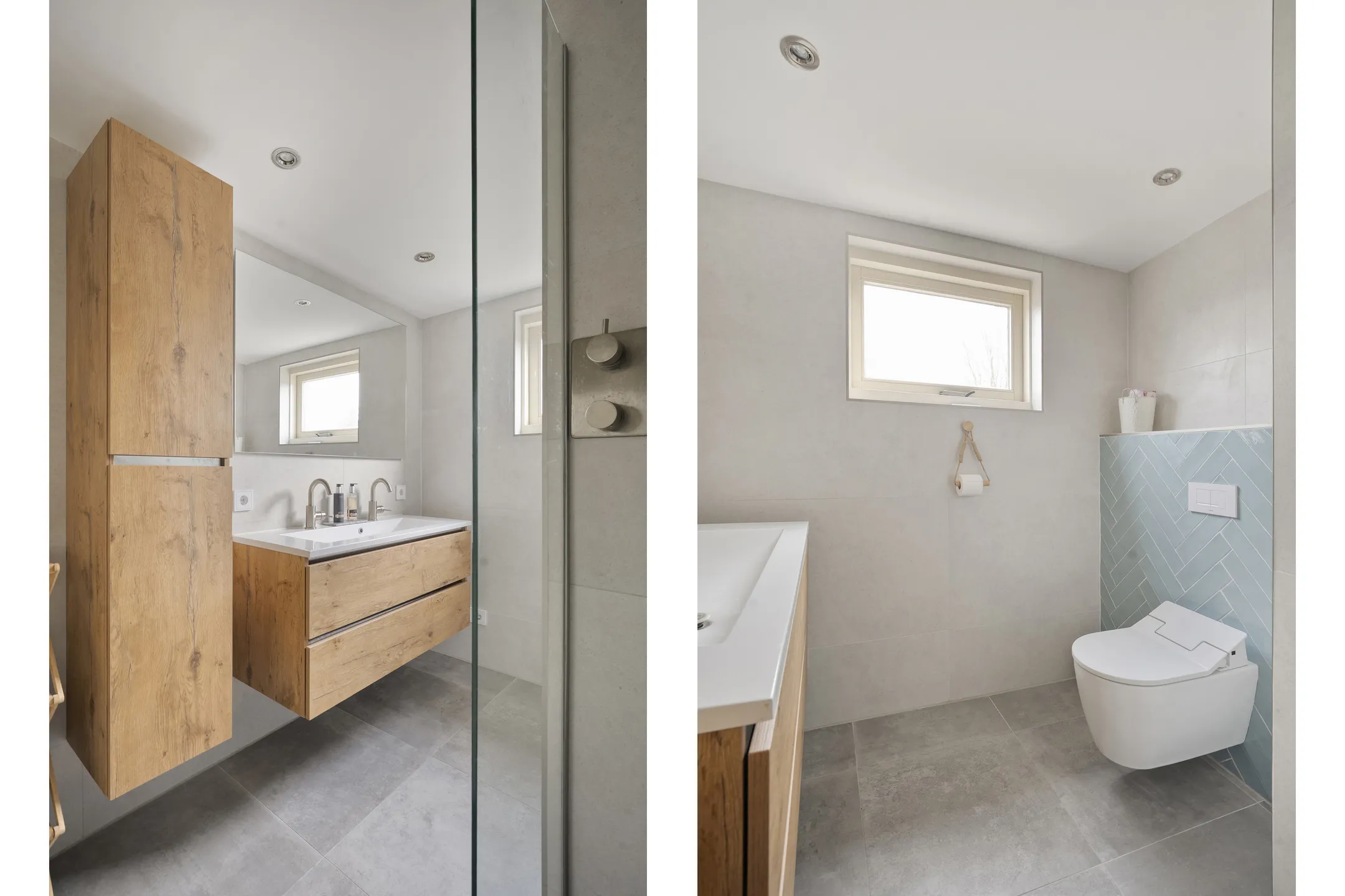 - Badkamervoorzieningen Toilet, dubbele wastafel, wastafelmeubel, inloopdouche