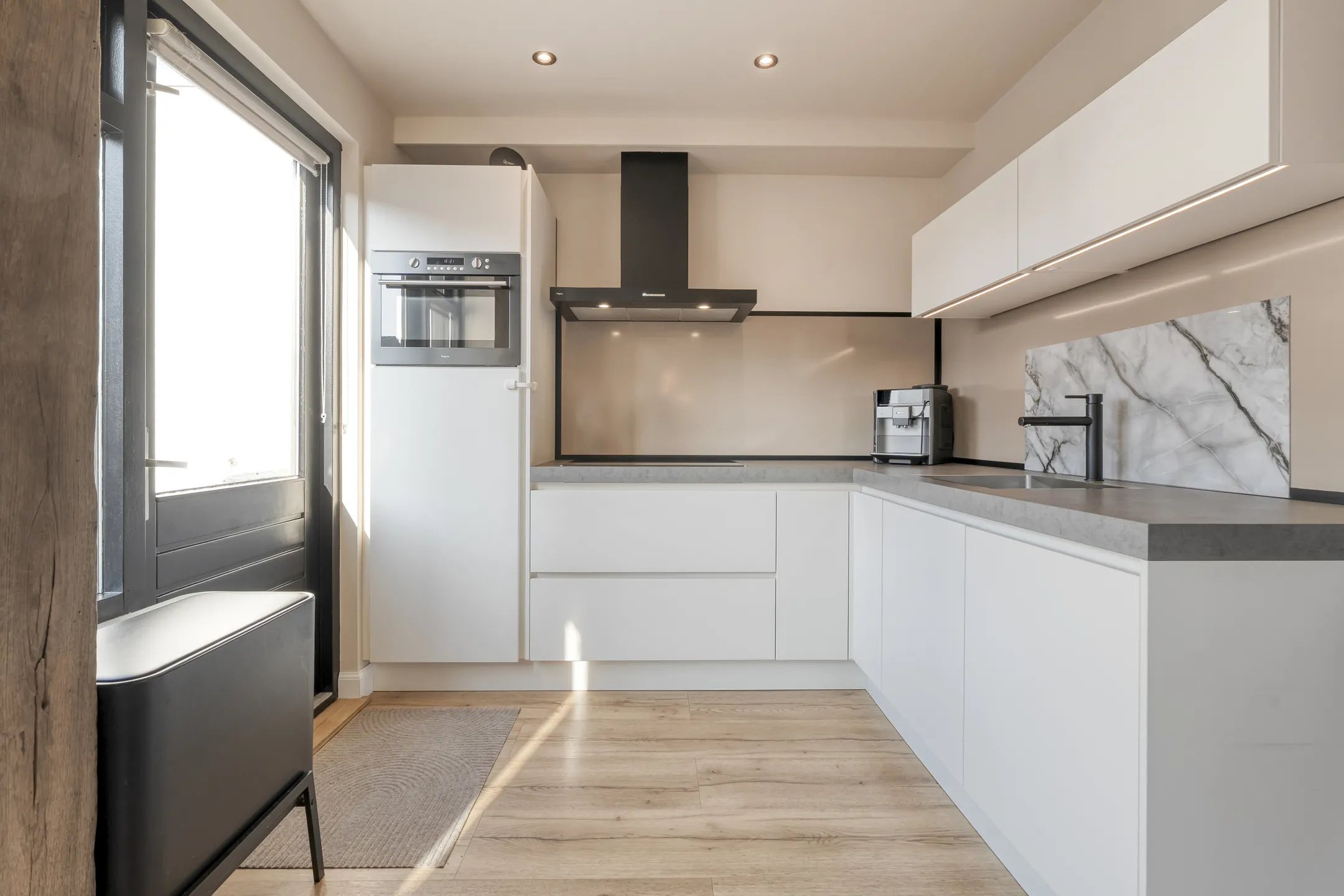 Binnen valt direct de strakke afwerking op. De keuken en badkamer zijn vernieuwd in 2019 en uitgevoerd in een moderne stijl, waardoor ze volledig aansluiten bij de woonwensen van nu. Daarnaast is de woning nagenoeg geheel voorzien van onderhoudsarme kunststof kozijnen, wat bijdraagt aan zowel comfort als duurzaamheid. In 2025 is de voorgevel gerenoveerd, wat de woning een frisse en eigentijdse uitstraling geeft.