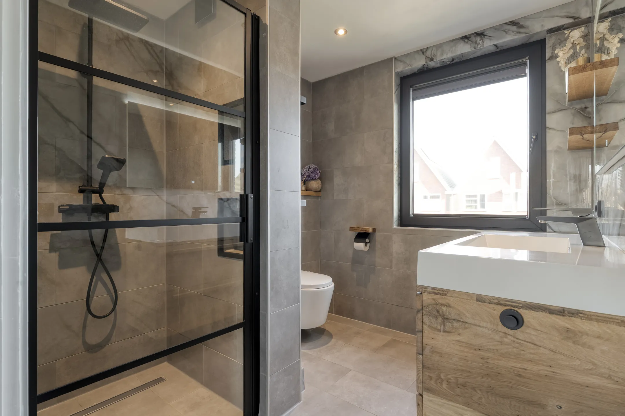 - Badkamervoorzieningen Toilet, douche, wastafel