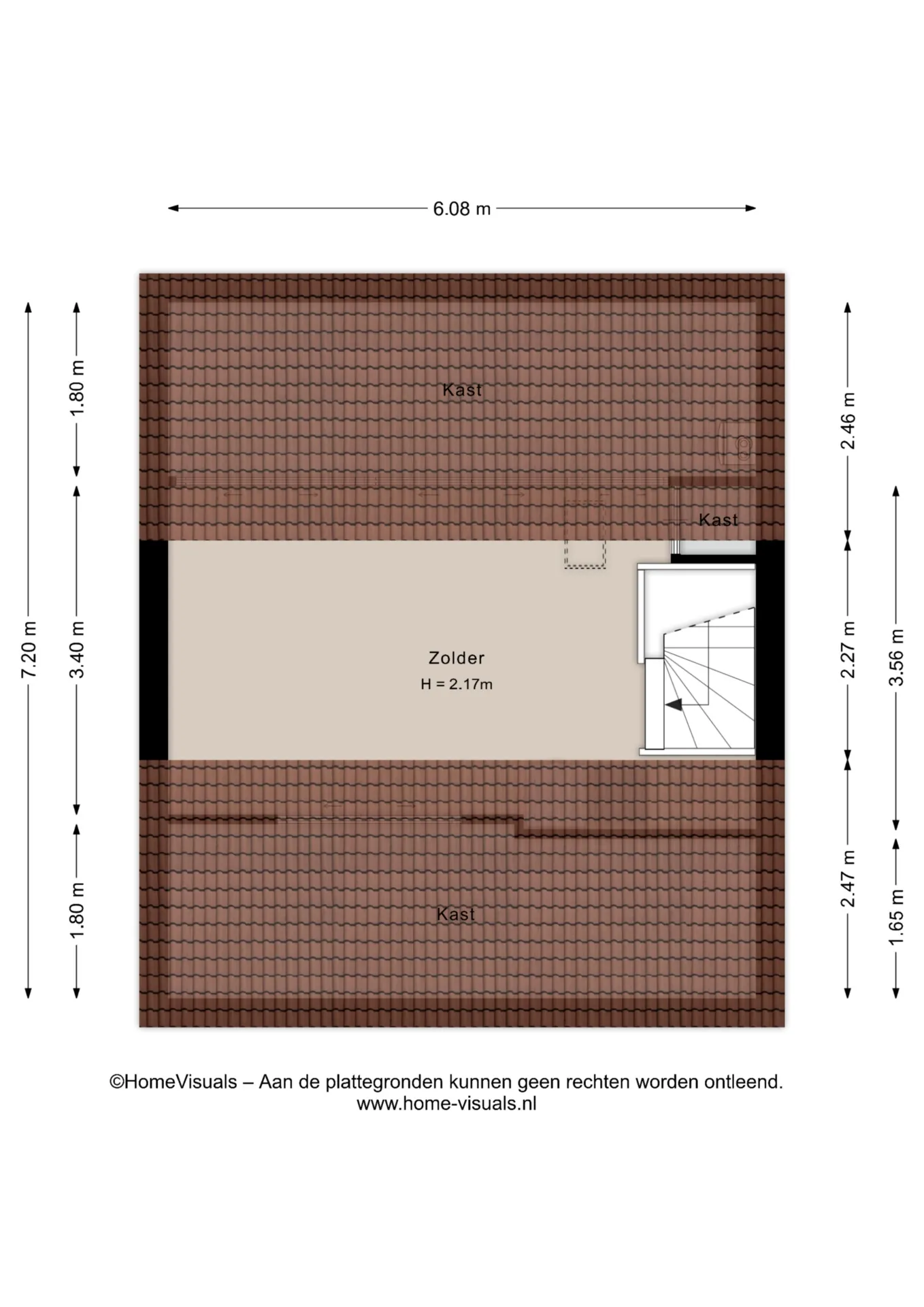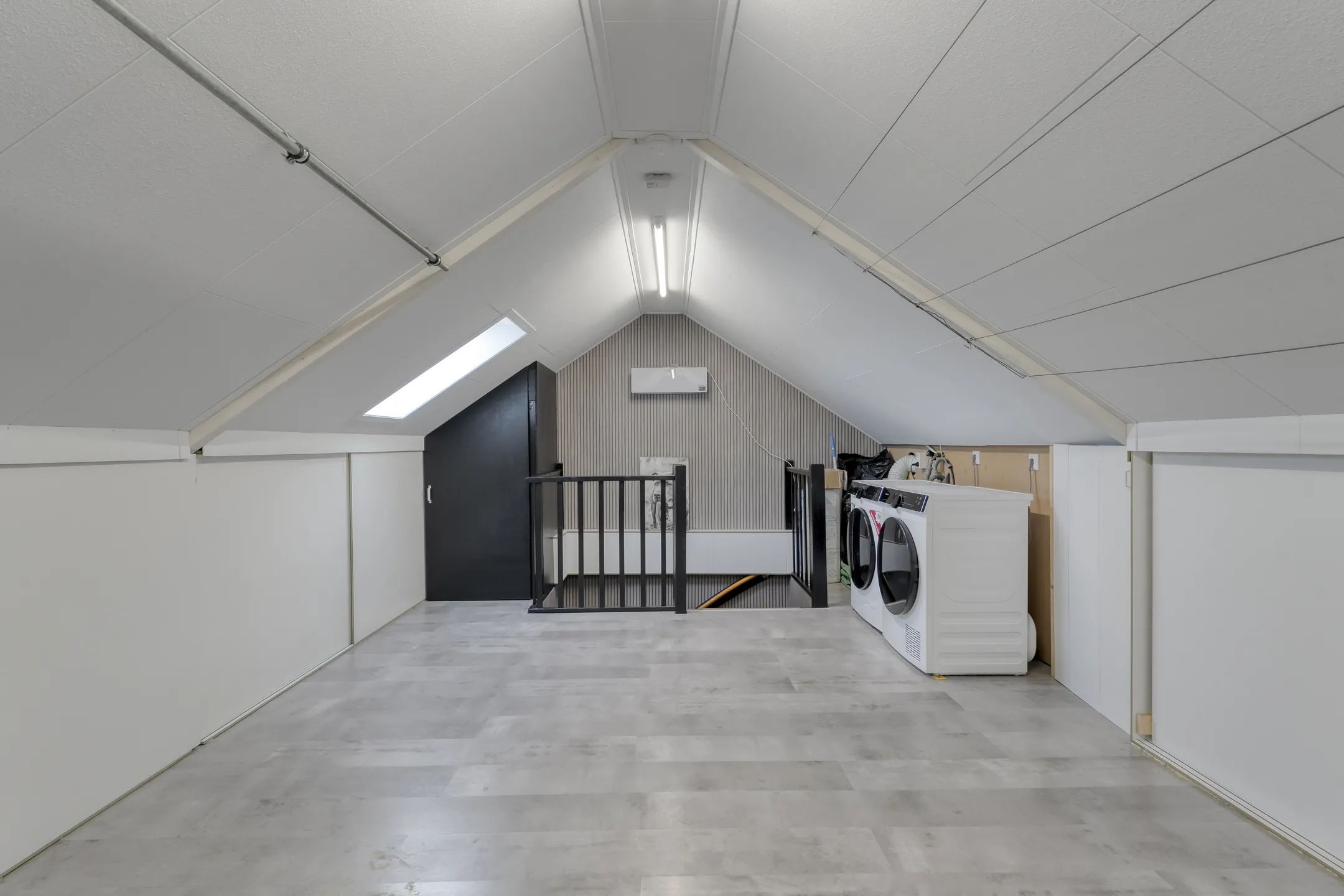 Zolder: via vaste trap te bereiken zolder met C.V.-opstelling, witgoedaansluitingen en dakraam.