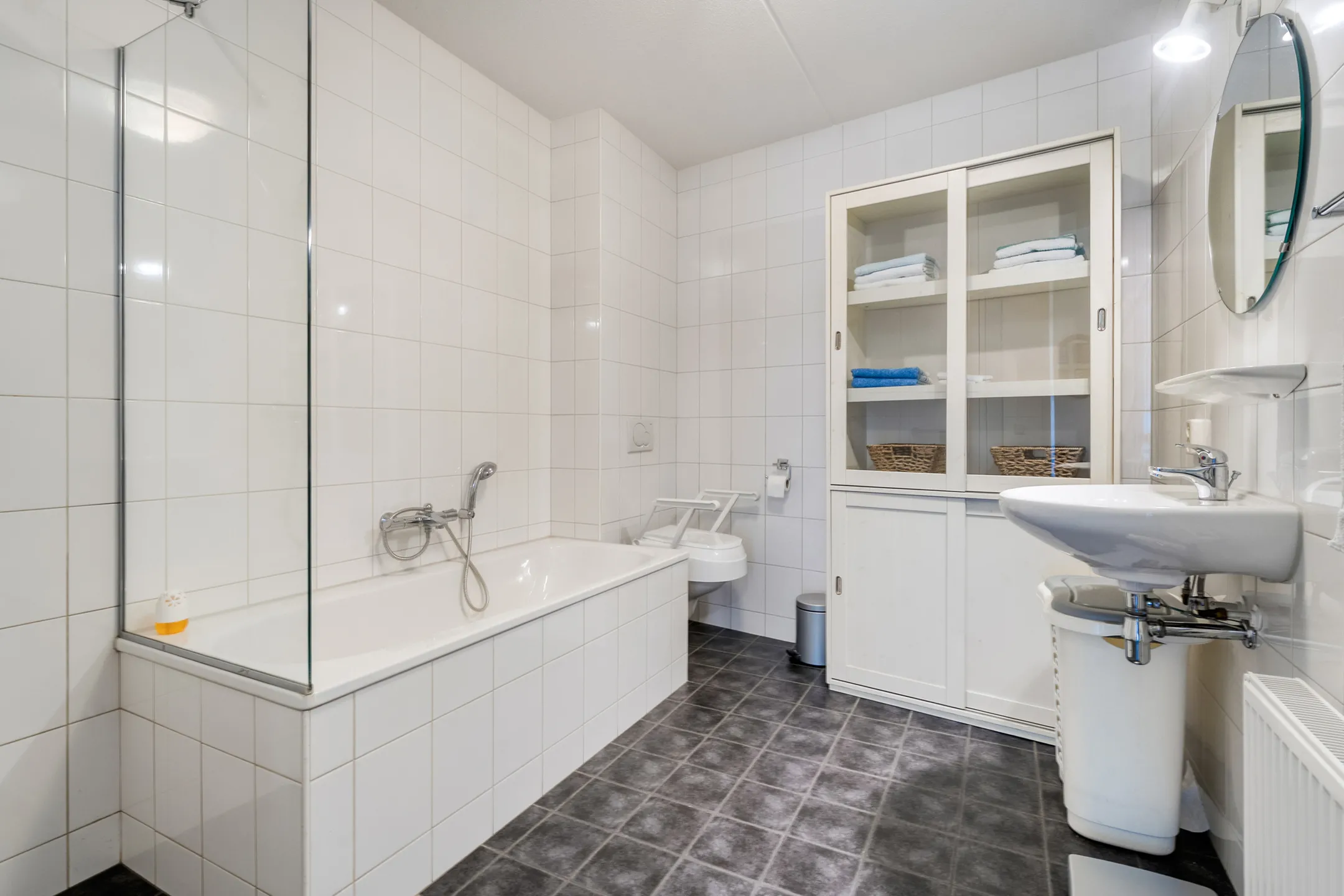 - Badkamervoorzieningen Ligbad, toilet, wastafel, inloopdouche