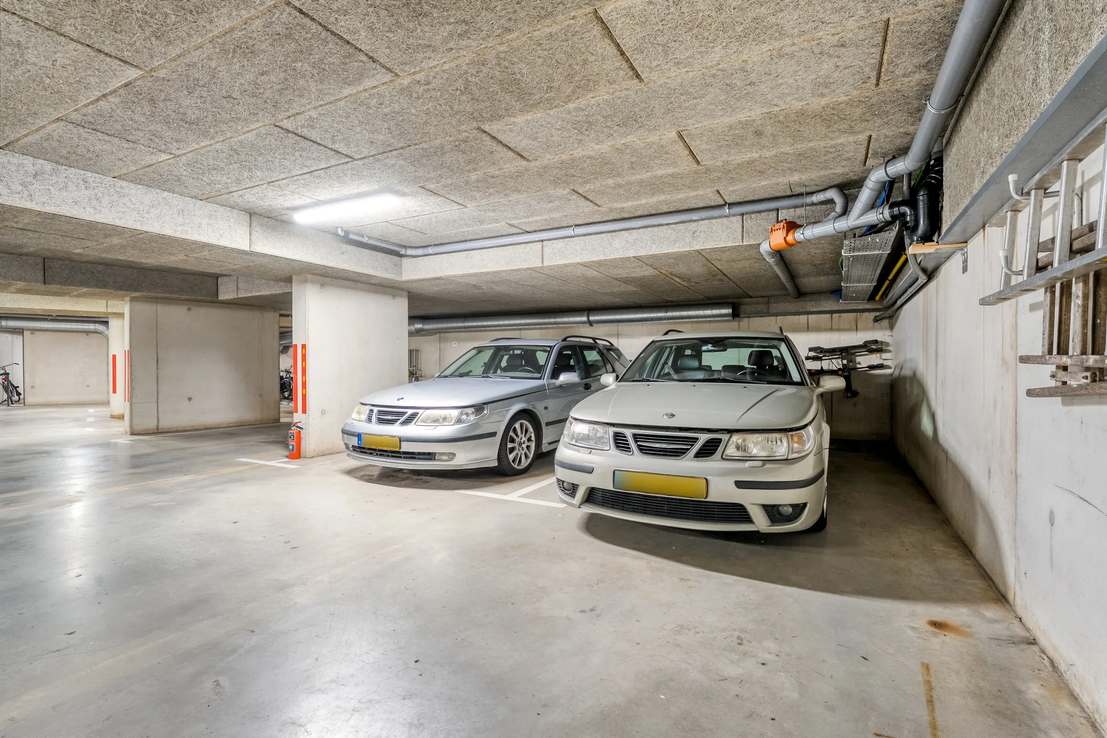 De keuken sluit vanzelfsprekend aan bij de woonkamer en biedt genoeg plek voor kookplezier. Twee slaapkamers maken het appartement flexibel โ of je nu ruimte zoekt voor logees, een werkplek of juist een rustige master bedroom. De bergruimte is opvallend royaal: twee inpandige bergingen in de woning zelf, een eigen berging elders in het complex en natuurlijk een gezamenlijke fietsenstalling. Je auto staat veilig en droog in de parkeerkelder, op je eigen plek.