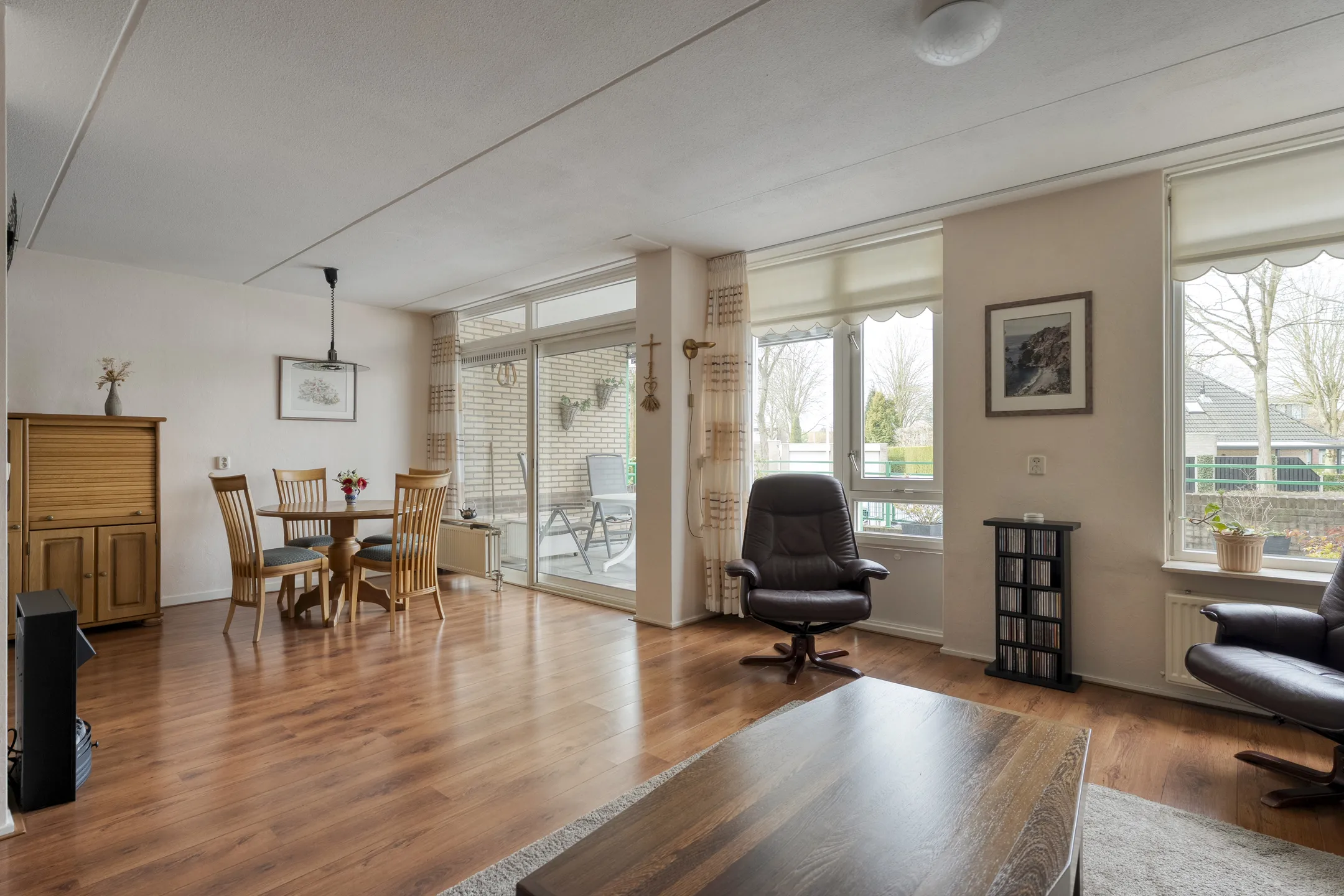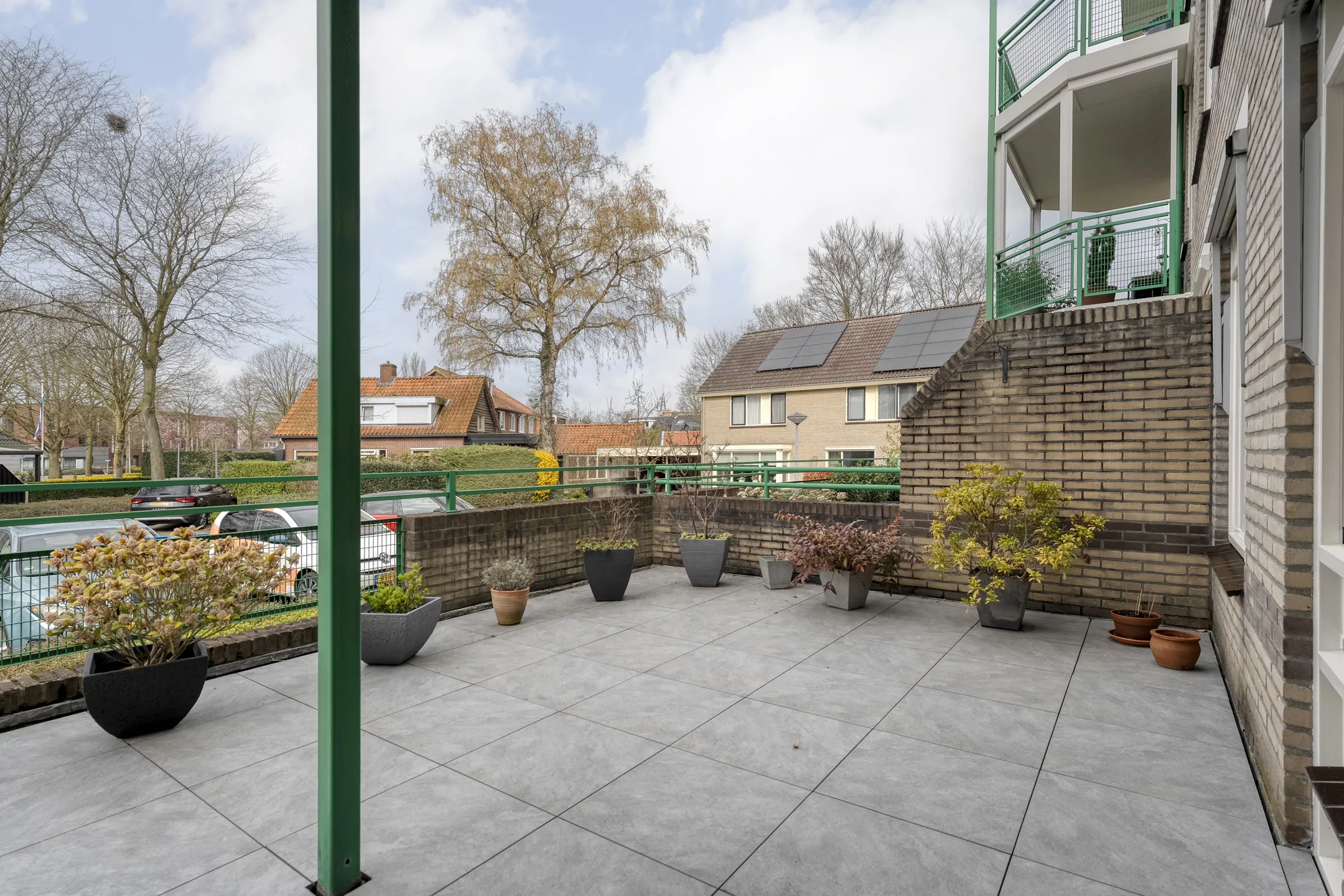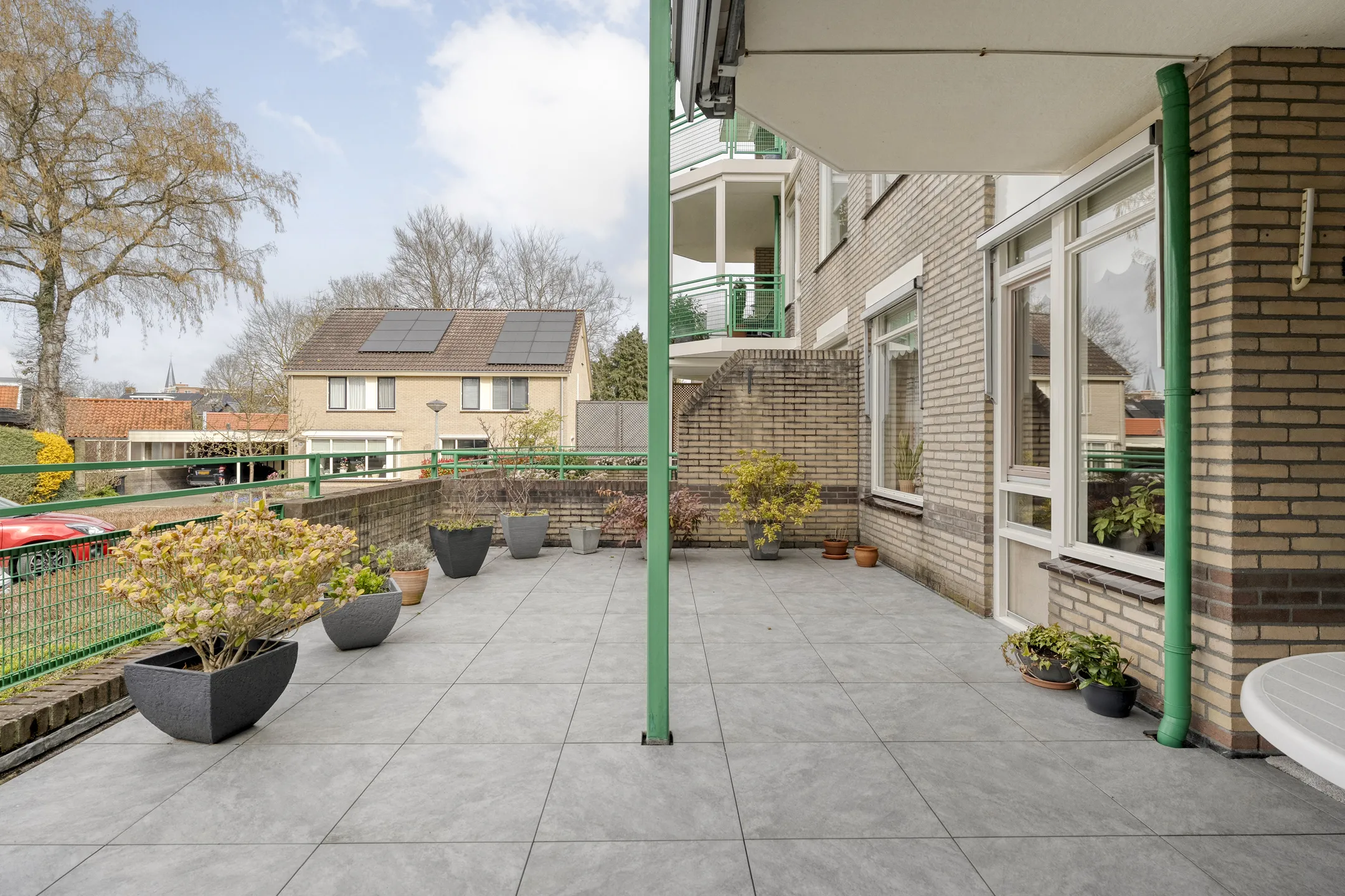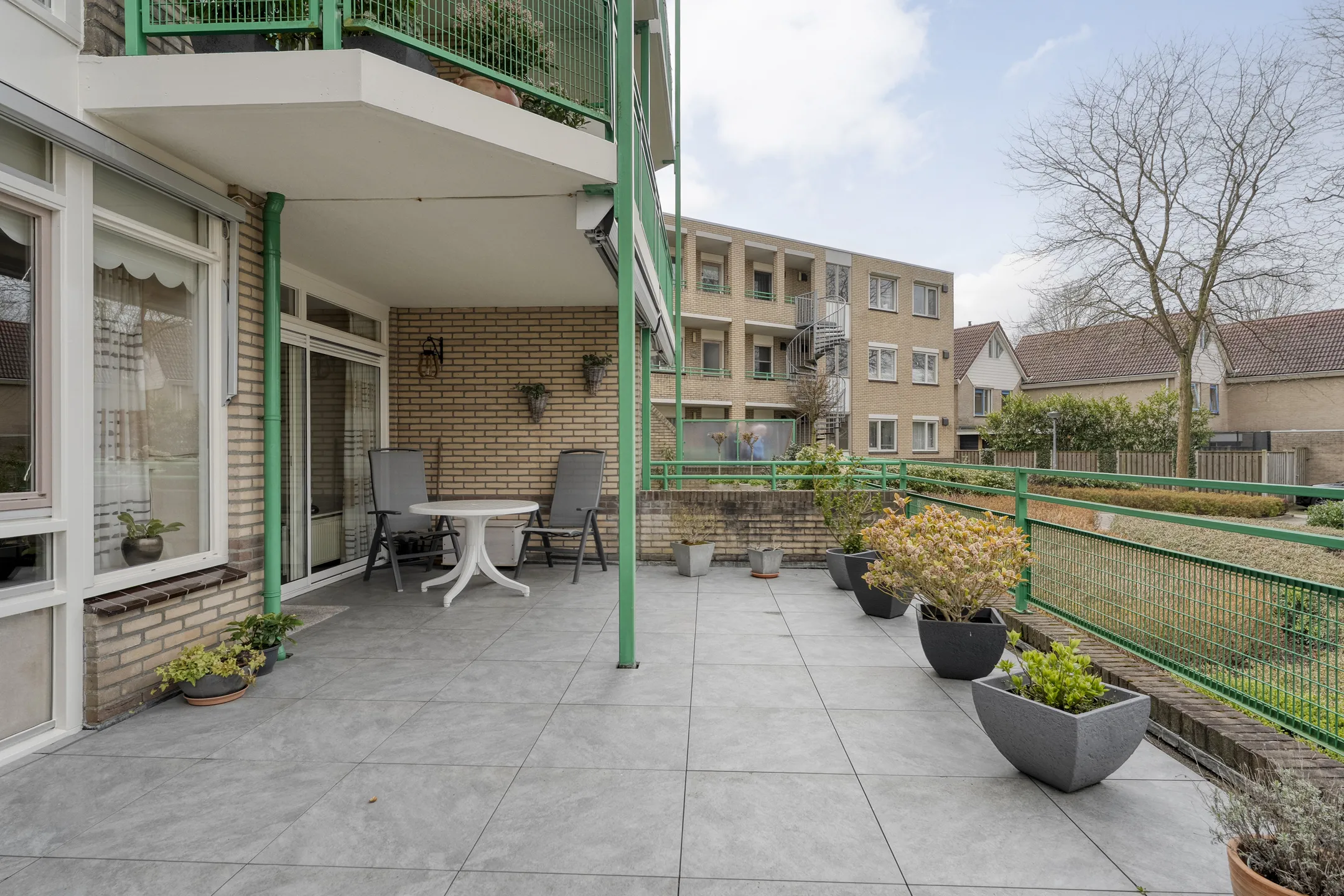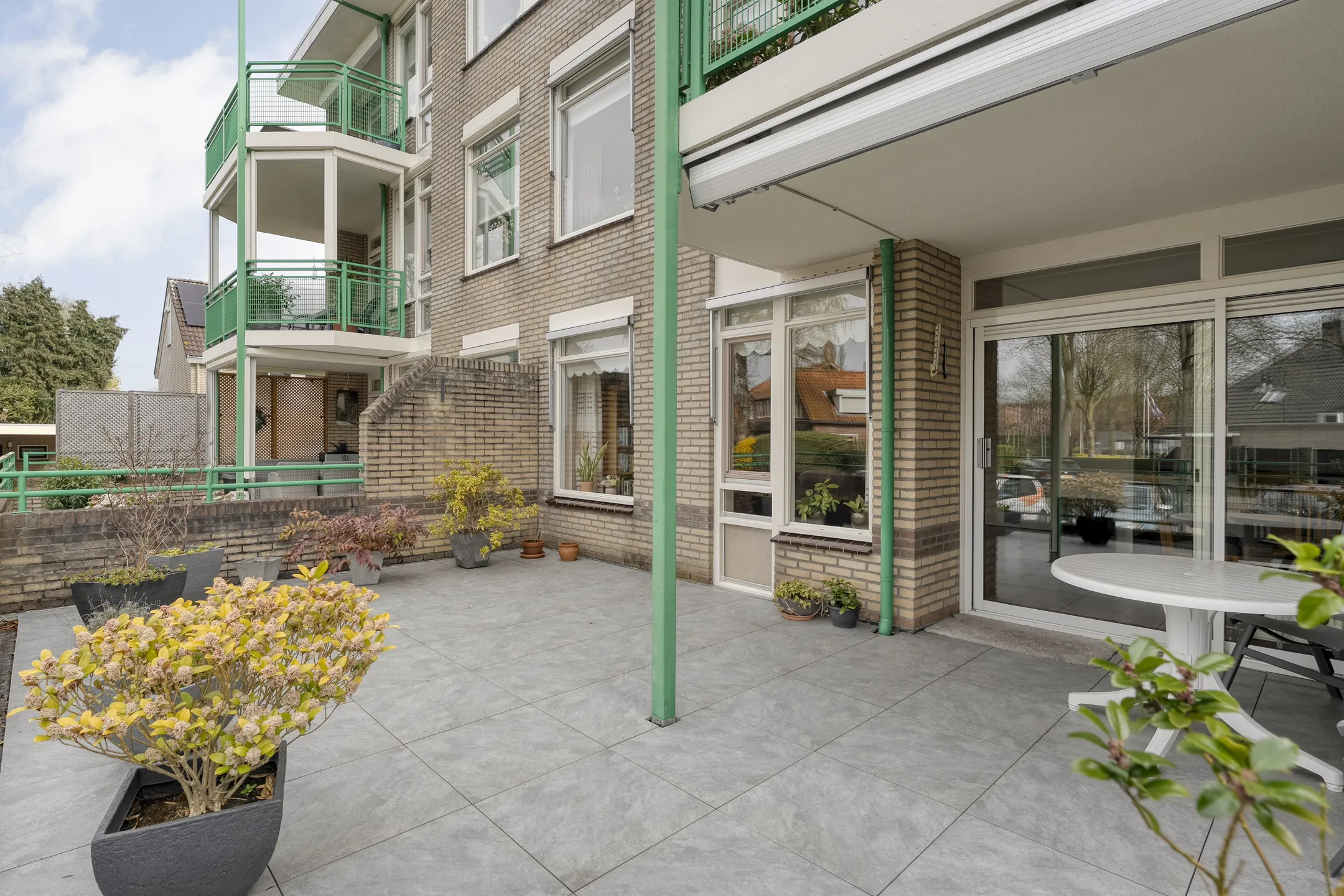 Een absoluut pluspunt is het ruime terras op de begane grond. Dit terras is gunstig gesitueerd en biedt een heerlijke plek om buiten te zitten, te genieten van de rust en het groen, of gezellig visite te ontvangen.