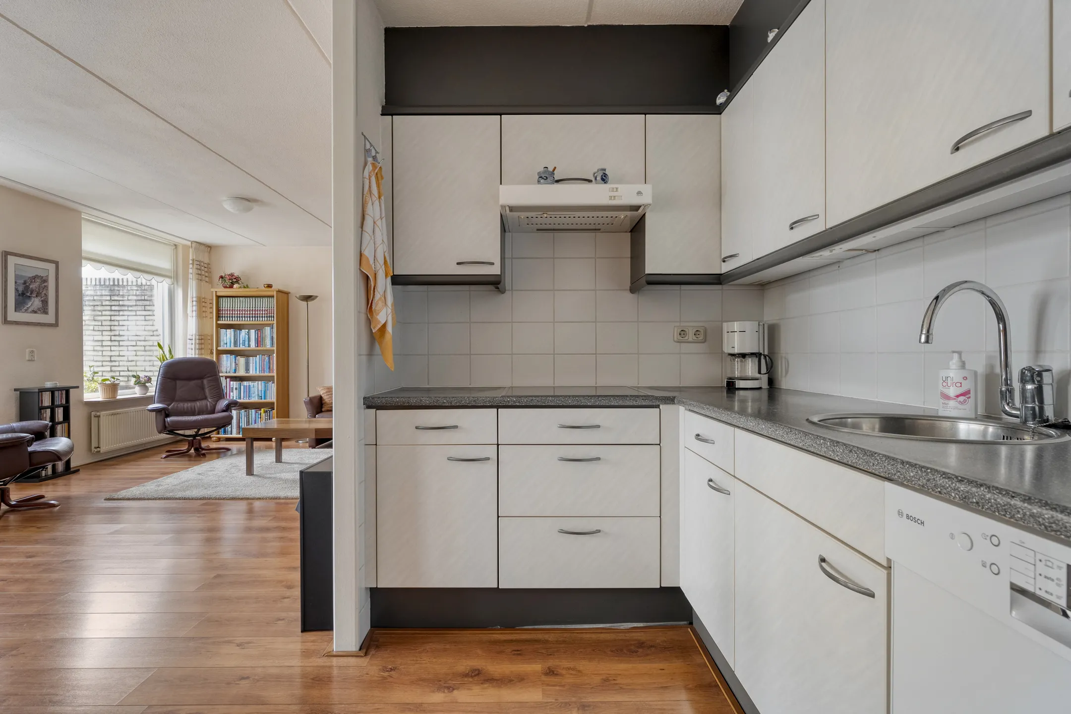 Het appartement beschikt over een prettige en lichte woonkamer van goed formaat, met een fijne verbinding naar de keuken. De indeling is praktisch en overzichtelijk, waardoor u hier direct een gevoel van thuis ervaart. Met twee volwaardige slaapkamers biedt het appartement volop ruimte voor bijvoorbeeld een logeerkamer, hobbyruimte of werkkamer.