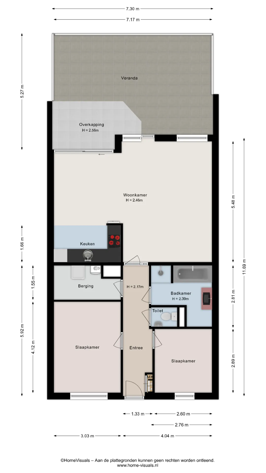 – 2 slaapkamers;