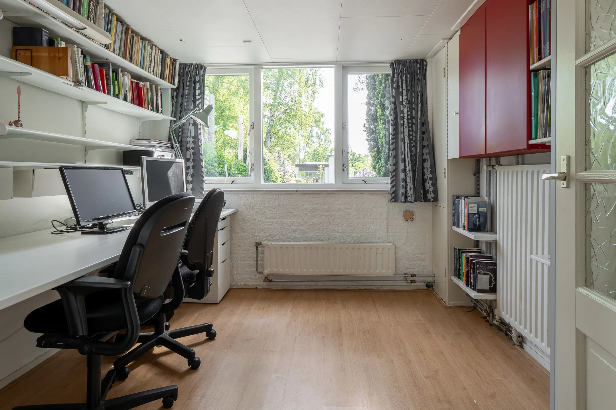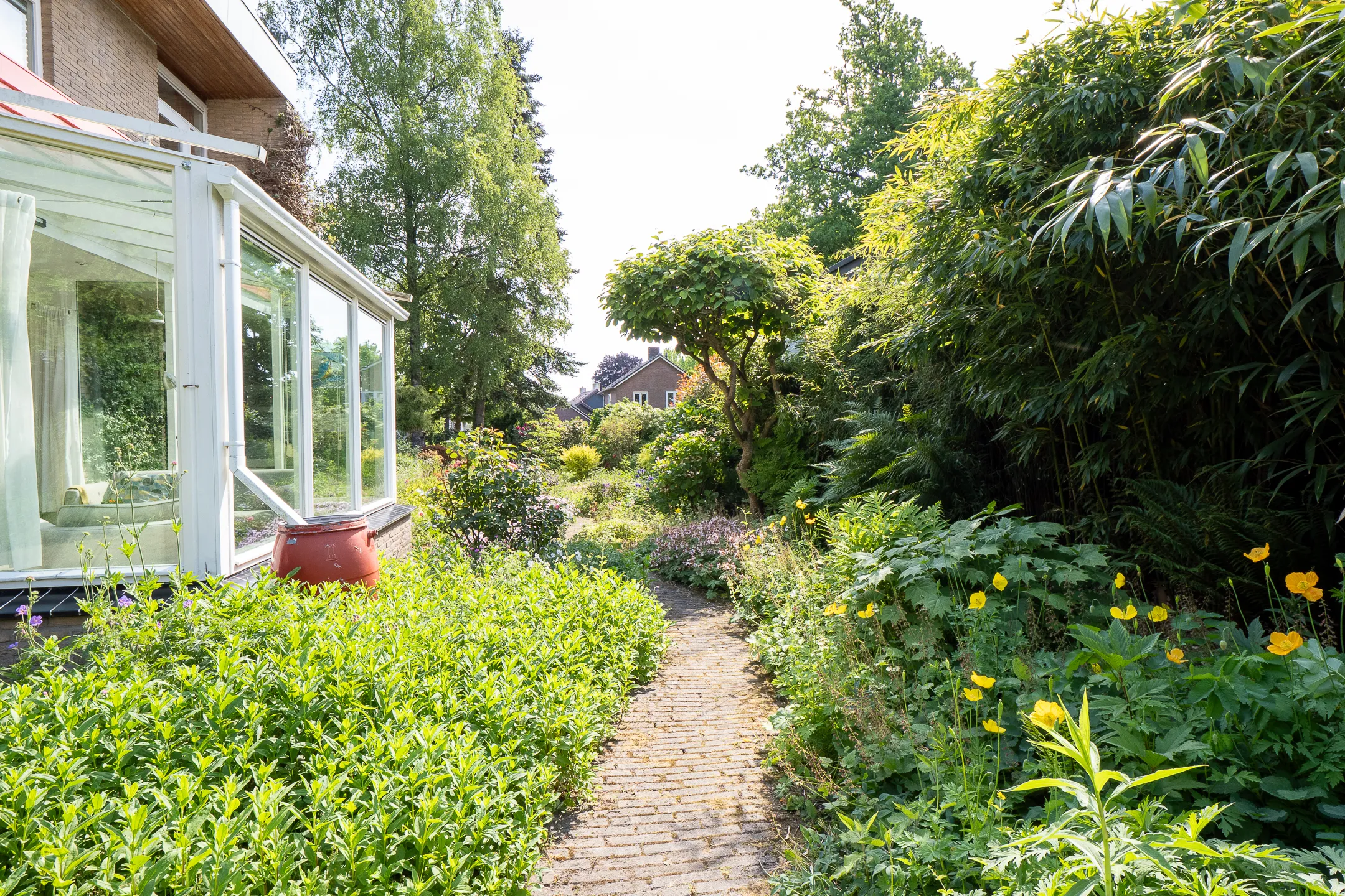 De woning beschikt over een verzorgde tuin rondom, waar u geniet van privacy, groen uitzicht en altijd een fijne plek om buiten te zitten of te ontspannen.