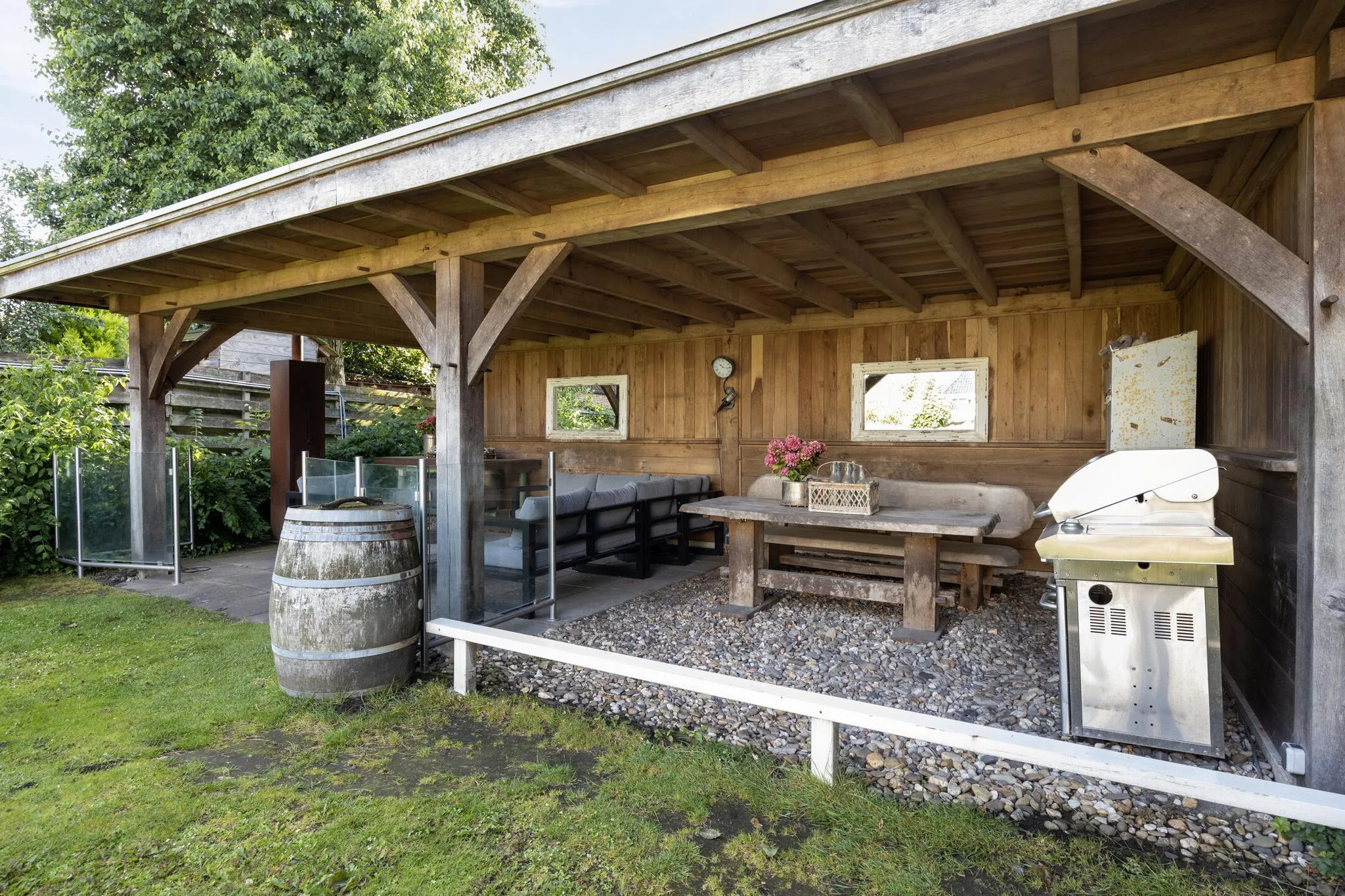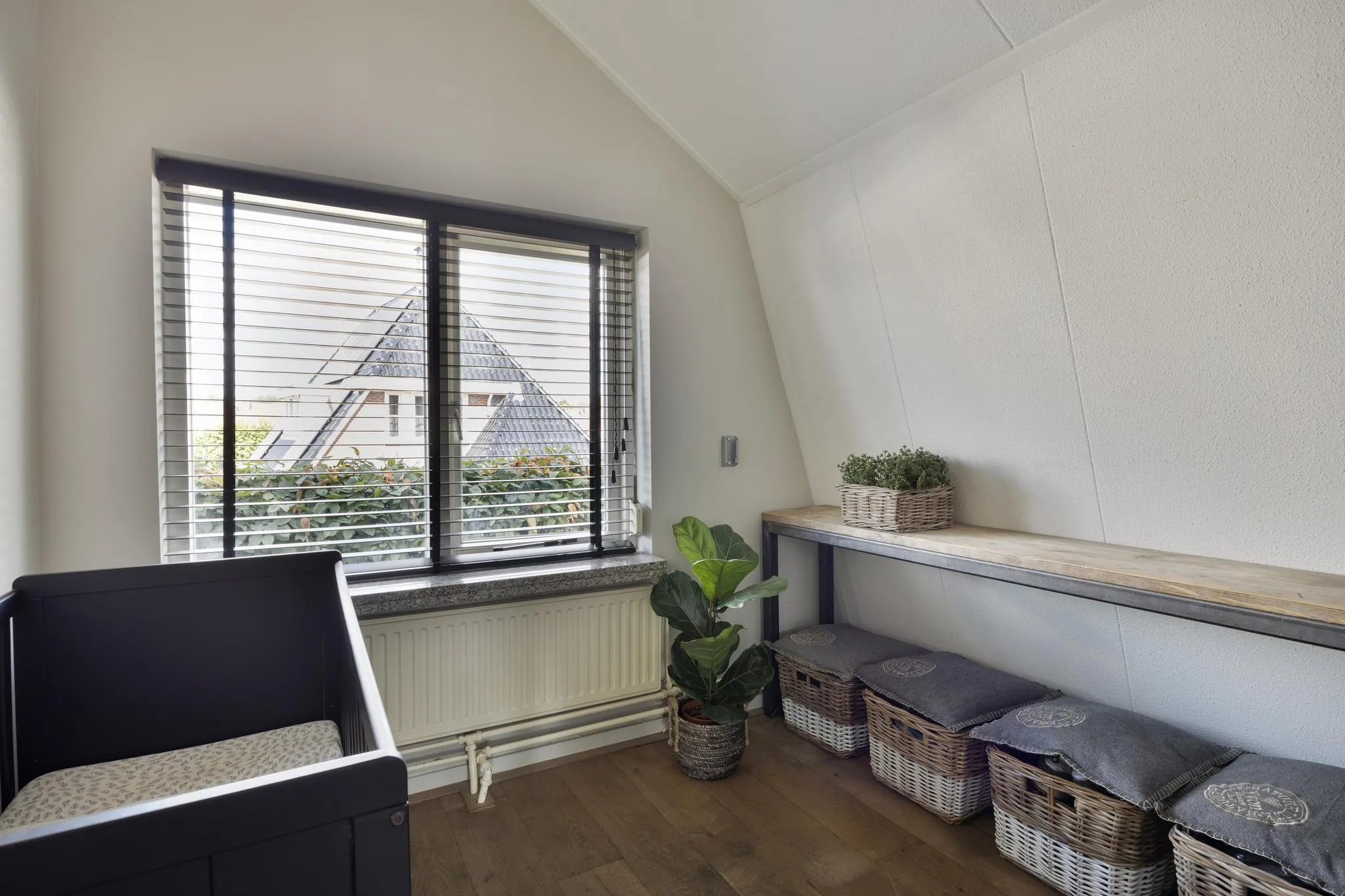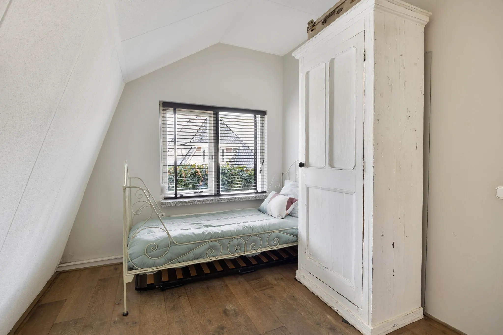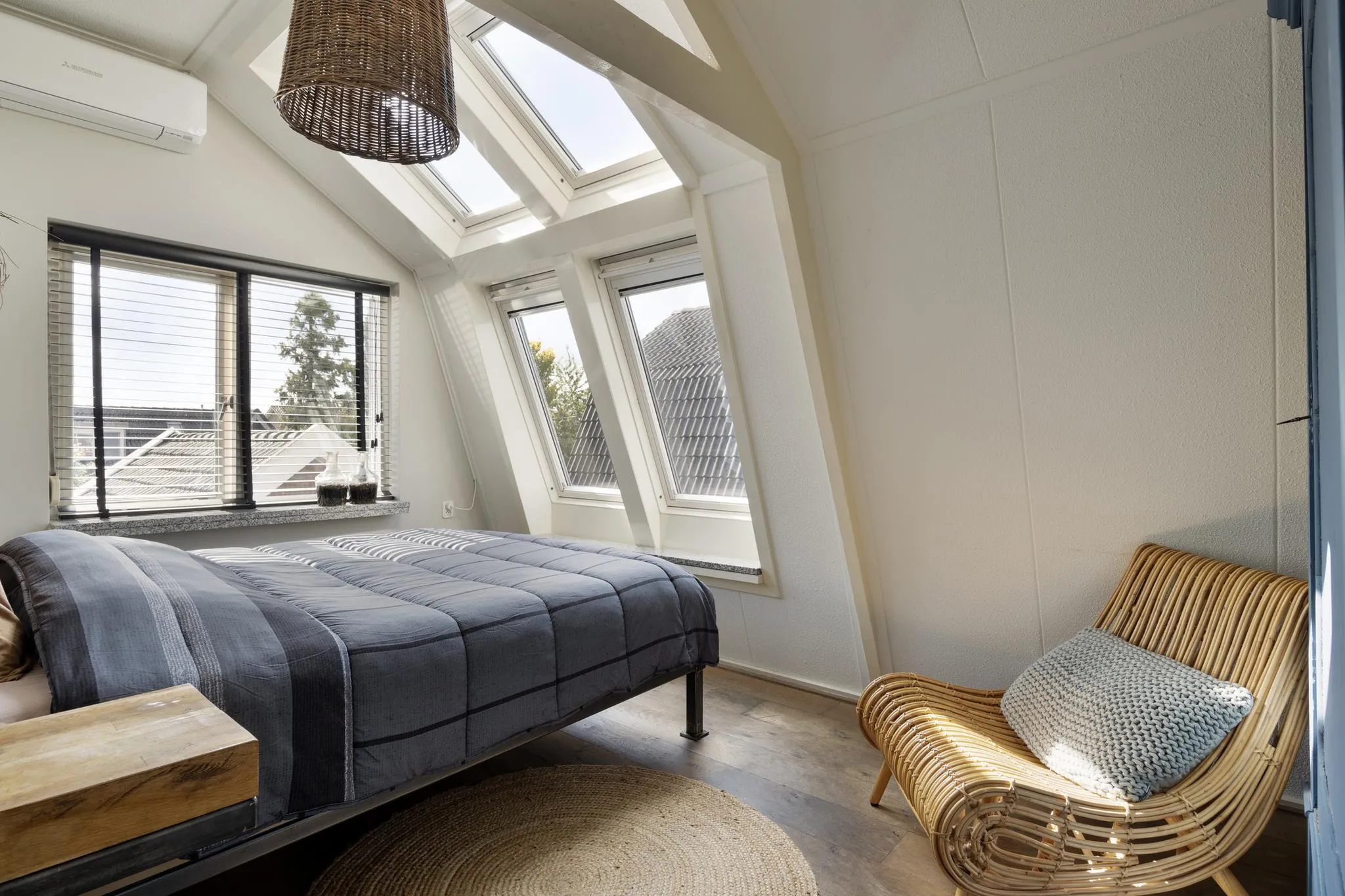 De woning beschikt over drie slaapkamers en een ruime badkamer. De dakramen in zowel badkamer als slaapkamer zorgen voor voldoende licht en zijn elektrisch bedienbaar. Door de open nok wordt de ruimte nog beter geaccentueerd. De ruime tuin is fraai aangelegd en heeft meerdere bijbouwen zoals een garage met sauna en vliering, een carport, een aluminium overkapping voorzien van jacuzzi, een ruime houten overkapping met zonnepanelen en een houten tuinberging.
