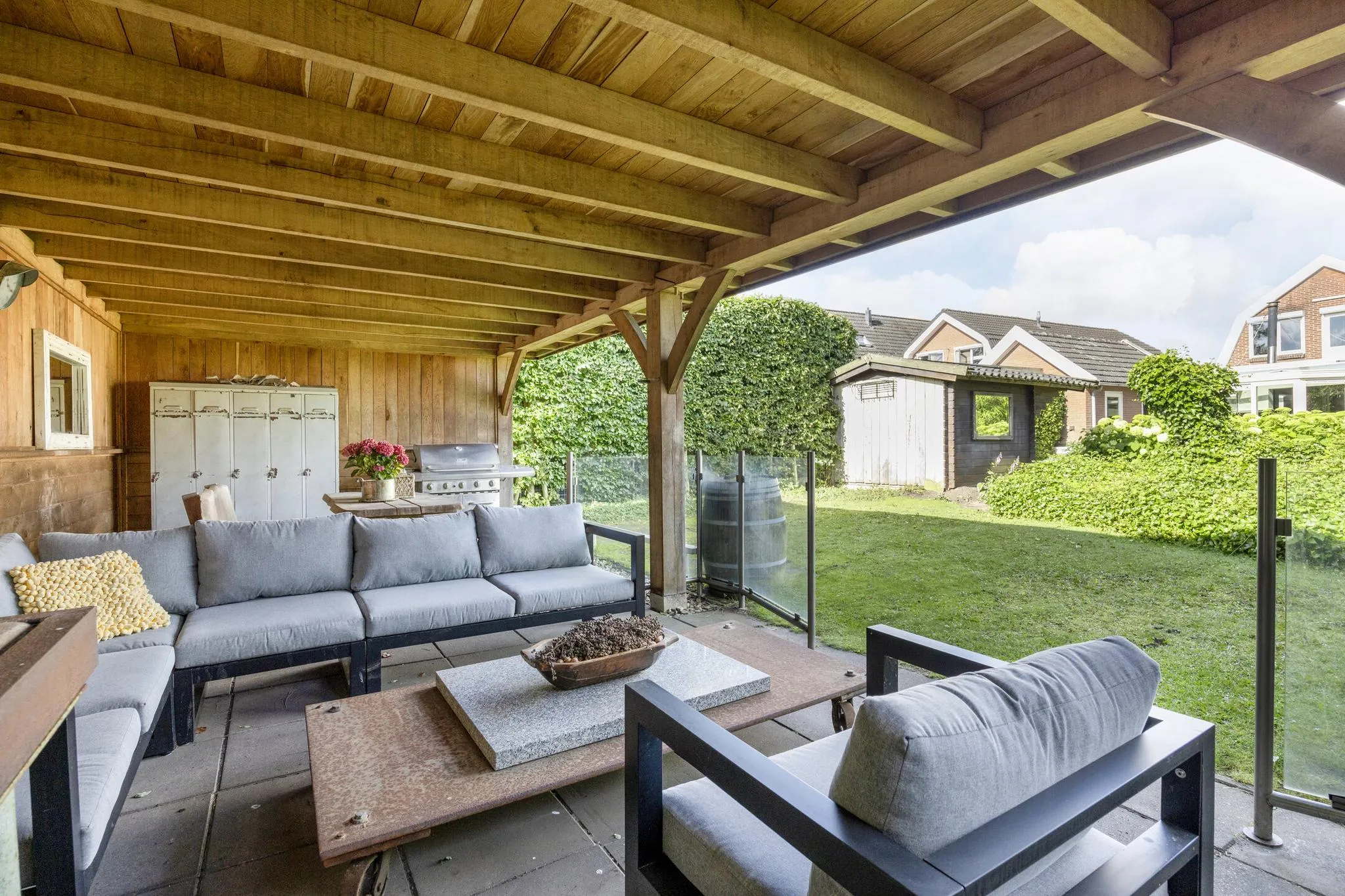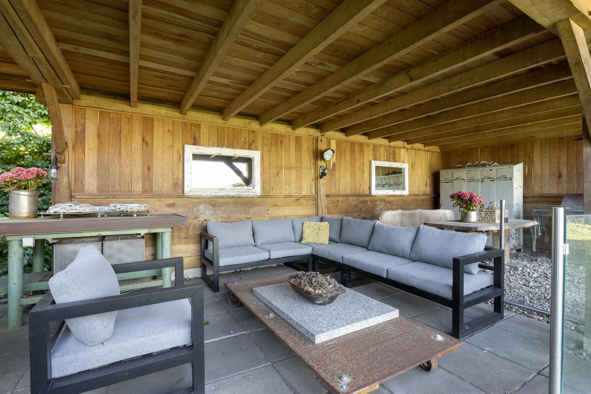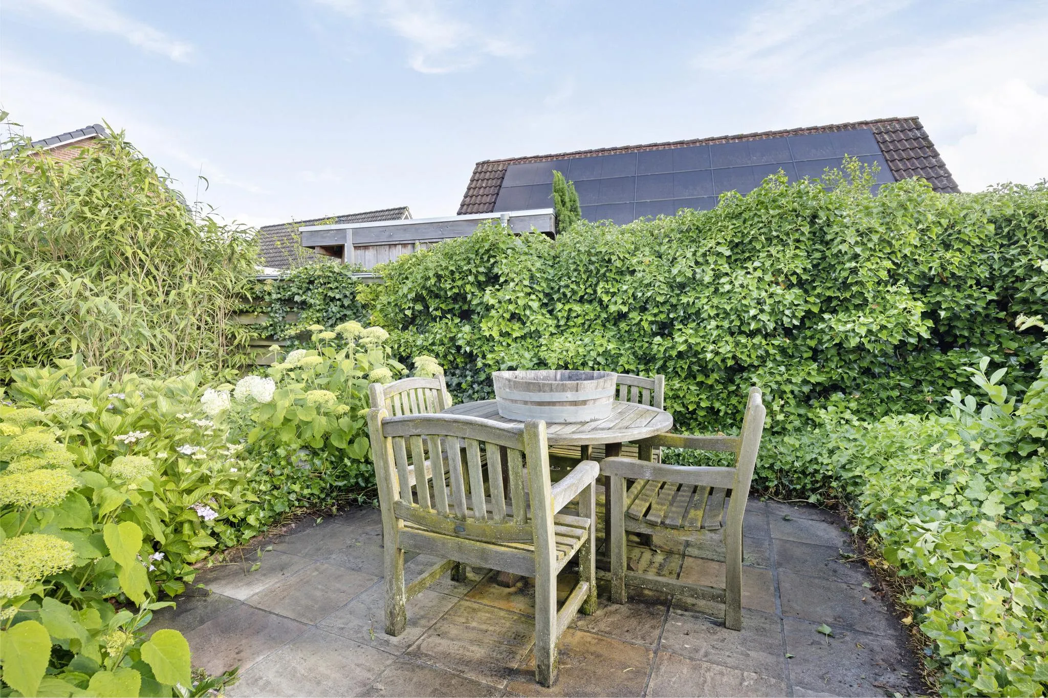 De woning beschikt over drie slaapkamers en een ruime badkamer. De dakramen in zowel badkamer als slaapkamer zorgen voor voldoende licht en zijn elektrisch bedienbaar. Door de open nok wordt de ruimte nog beter geaccentueerd. De ruime tuin is fraai aangelegd en heeft meerdere bijbouwen zoals een garage met sauna en vliering, een carport, een aluminium overkapping voorzien van jacuzzi, een ruime houten overkapping met zonnepanelen en een houten tuinberging.