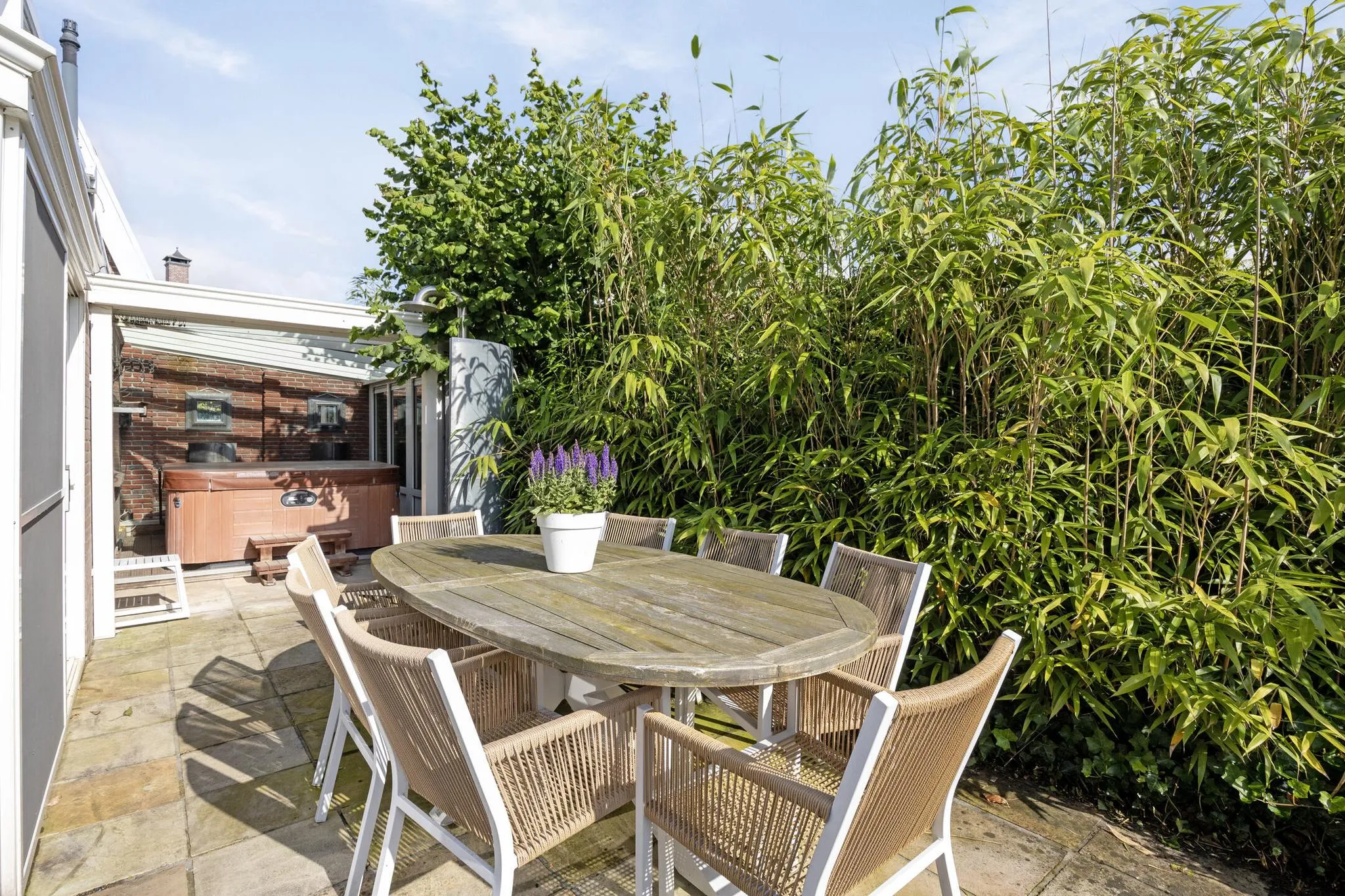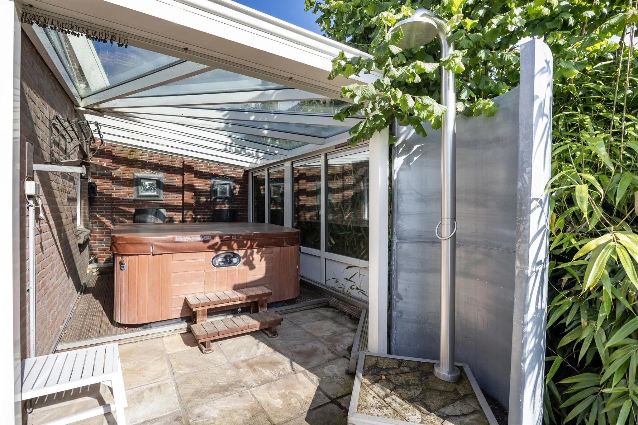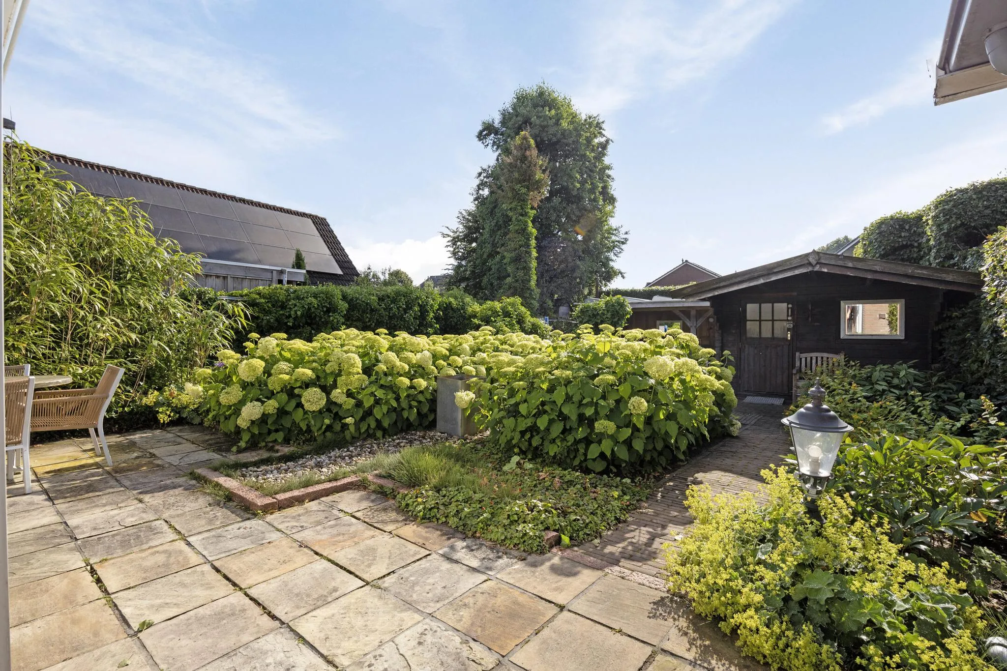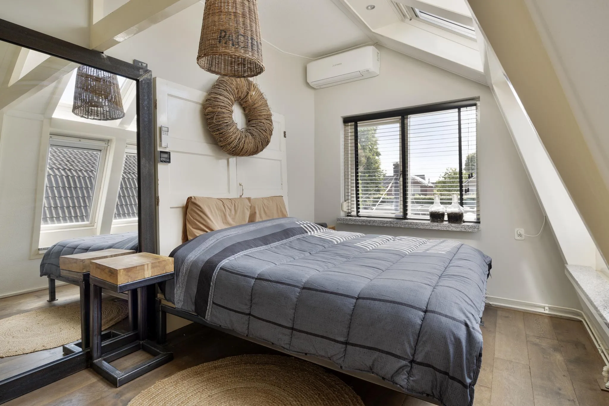 De woning beschikt over drie slaapkamers en een ruime badkamer. De dakramen in zowel badkamer als slaapkamer zorgen voor voldoende licht en zijn elektrisch bedienbaar. Door de open nok wordt de ruimte nog beter geaccentueerd. De ruime tuin is fraai aangelegd en heeft meerdere bijbouwen zoals een garage met sauna en vliering, een carport, een aluminium overkapping voorzien van jacuzzi, een ruime houten overkapping met zonnepanelen en een houten tuinberging.