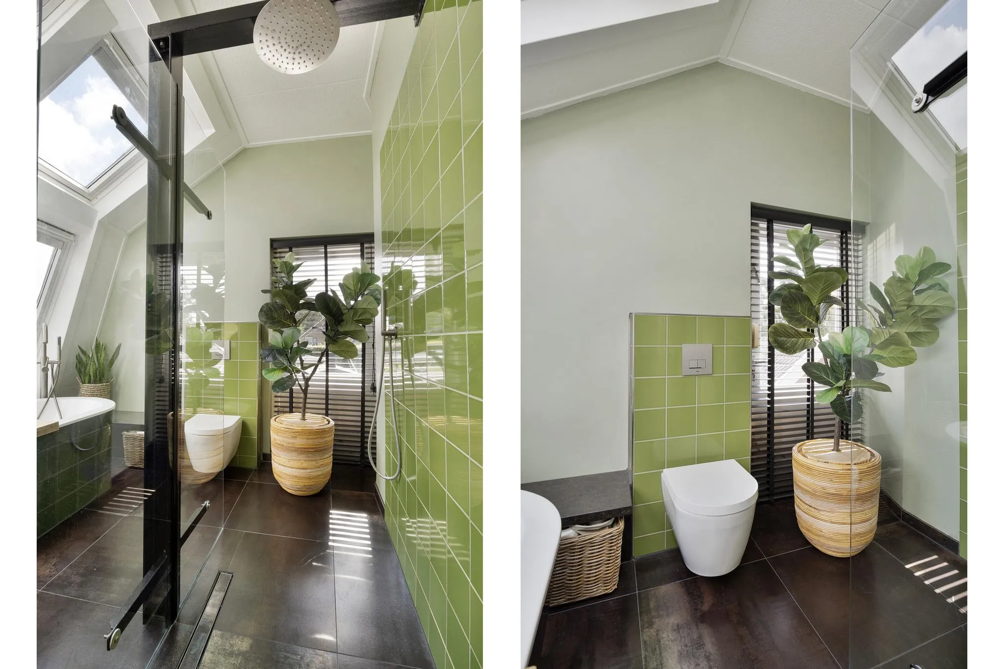 - Badkamervoorzieningen Ligbad, toilet, wastafel, inloopdouche